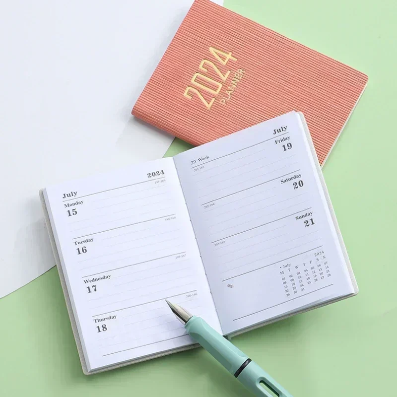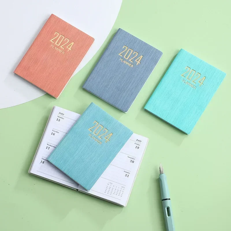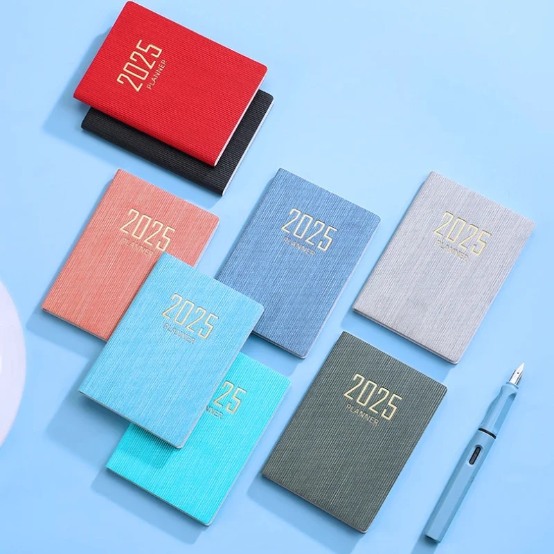 2025 A7 Mini Agenda portátil libro diario planificador semanal cuadernos para hacer lista Bloc de notas en inglés con calendario escuela suministros de oficina