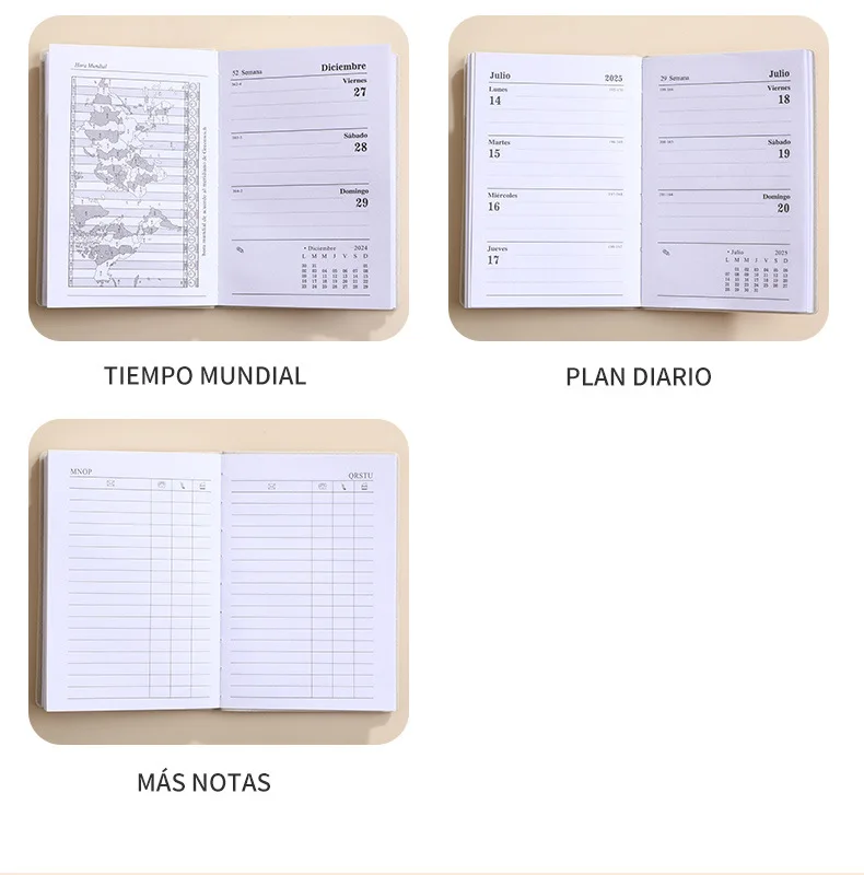 Comprar 2025 Año Anual A7 Diario Cuaderno Semanal Mensual Planificador Anual Funda de Cuero Pu Suave 52g Ba Chuan Calendario de Tiempo de Papel