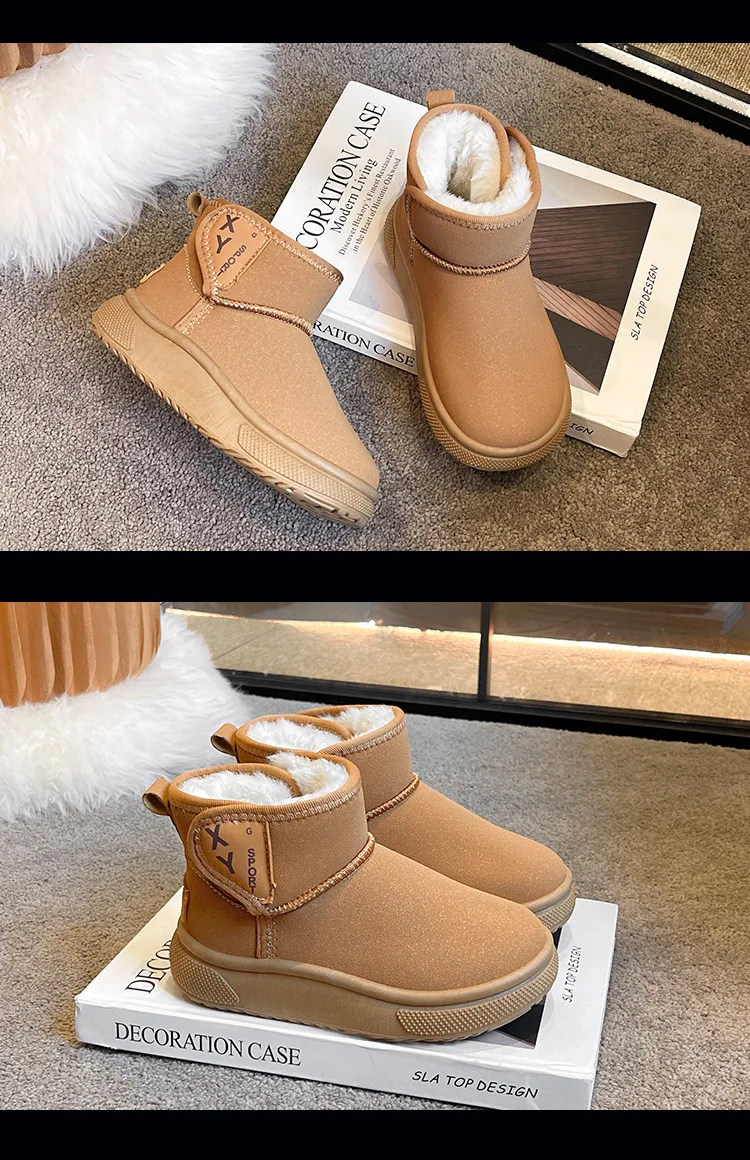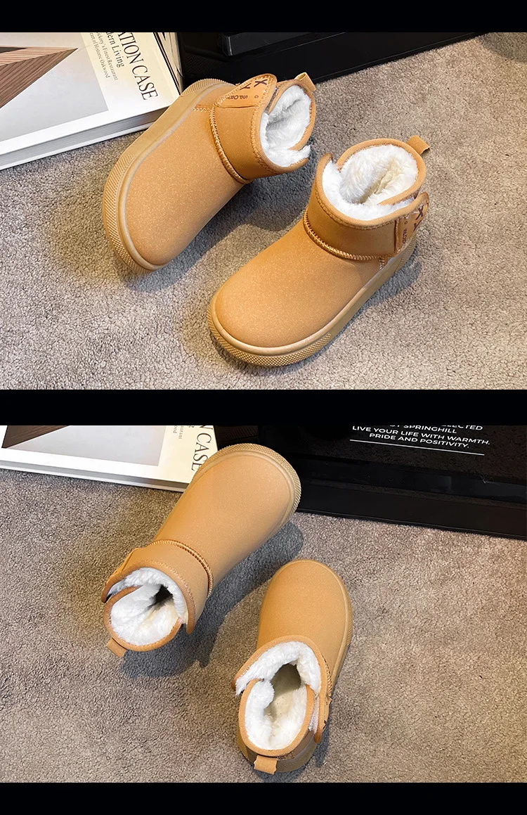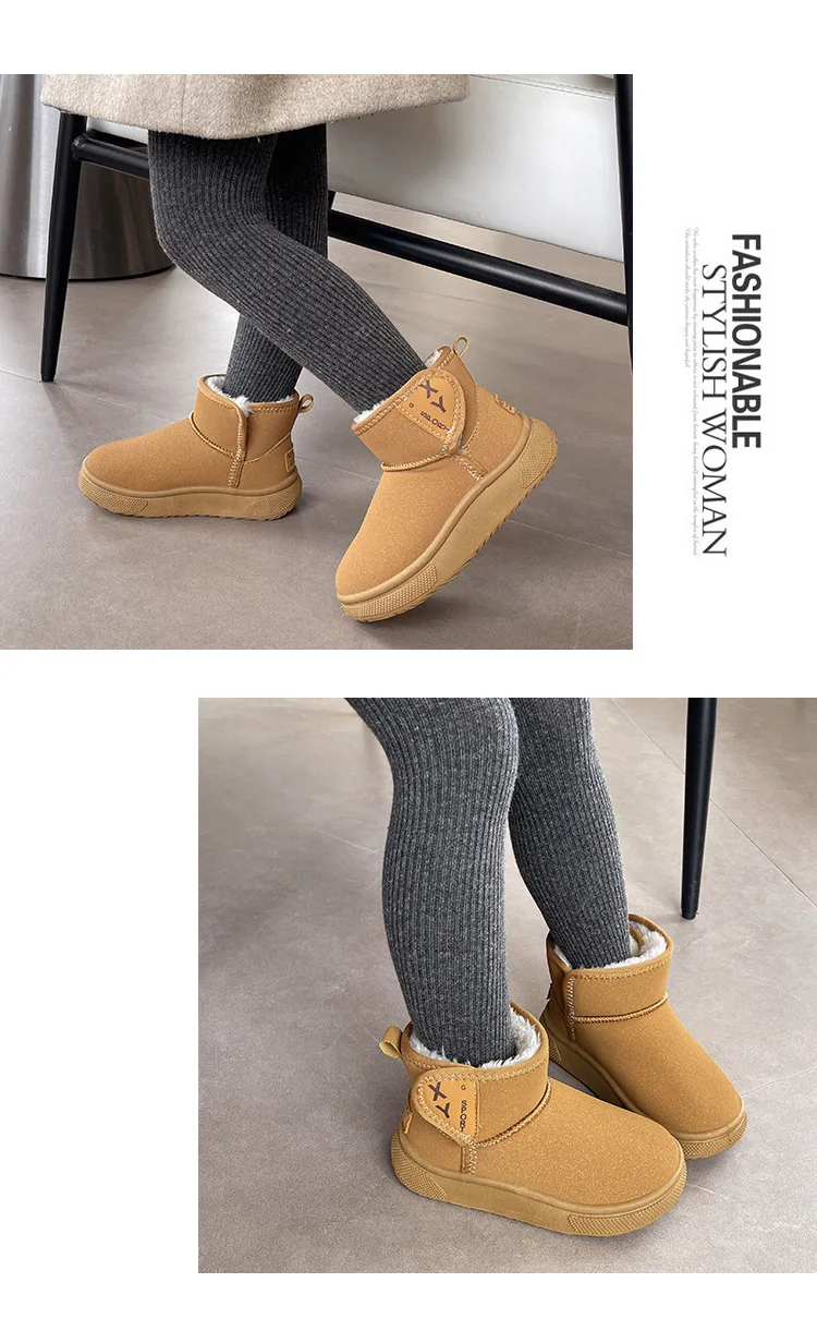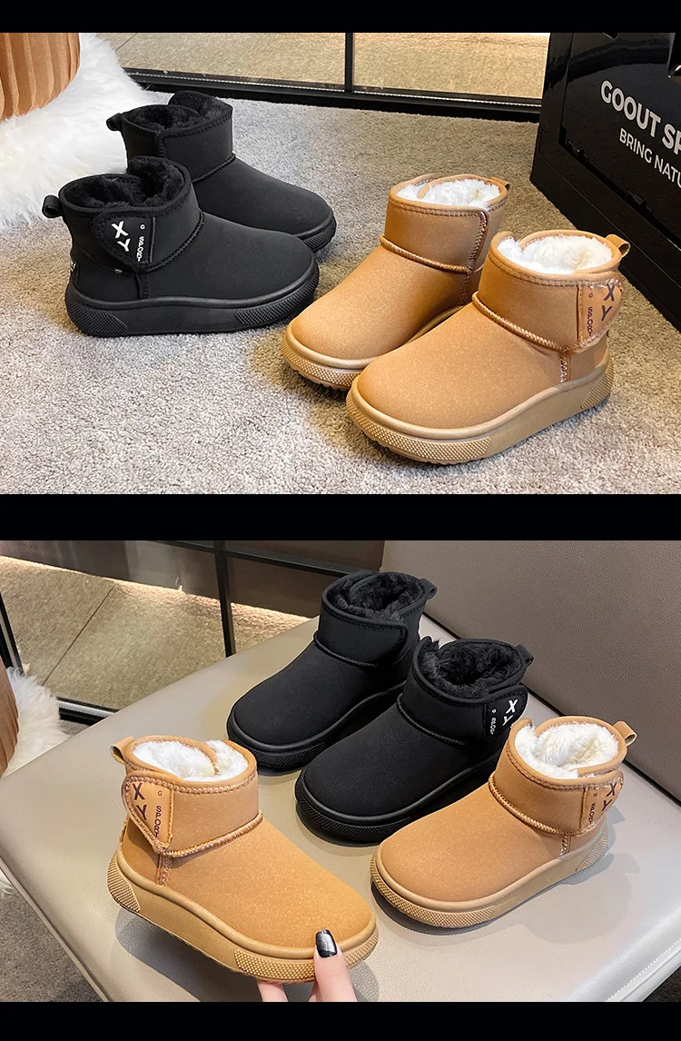 2025 botas de nieve de lana gruesa para niños, botas de algodón de fondo suave, botines cálidos de invierno para bebés y niñas, zapatos cómodos para niños pequeños