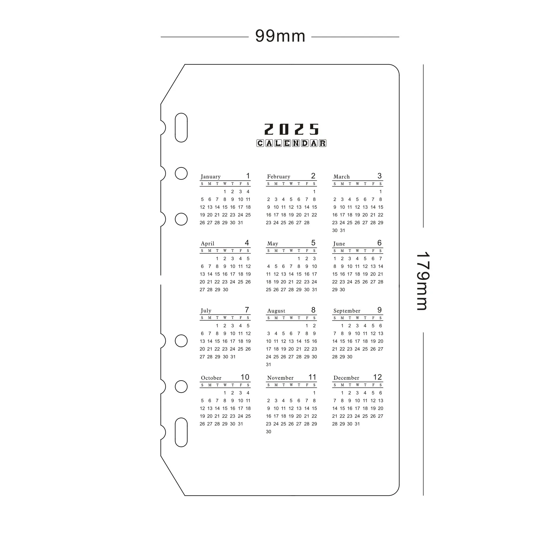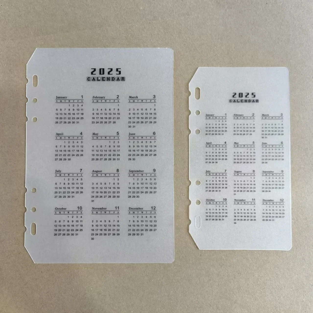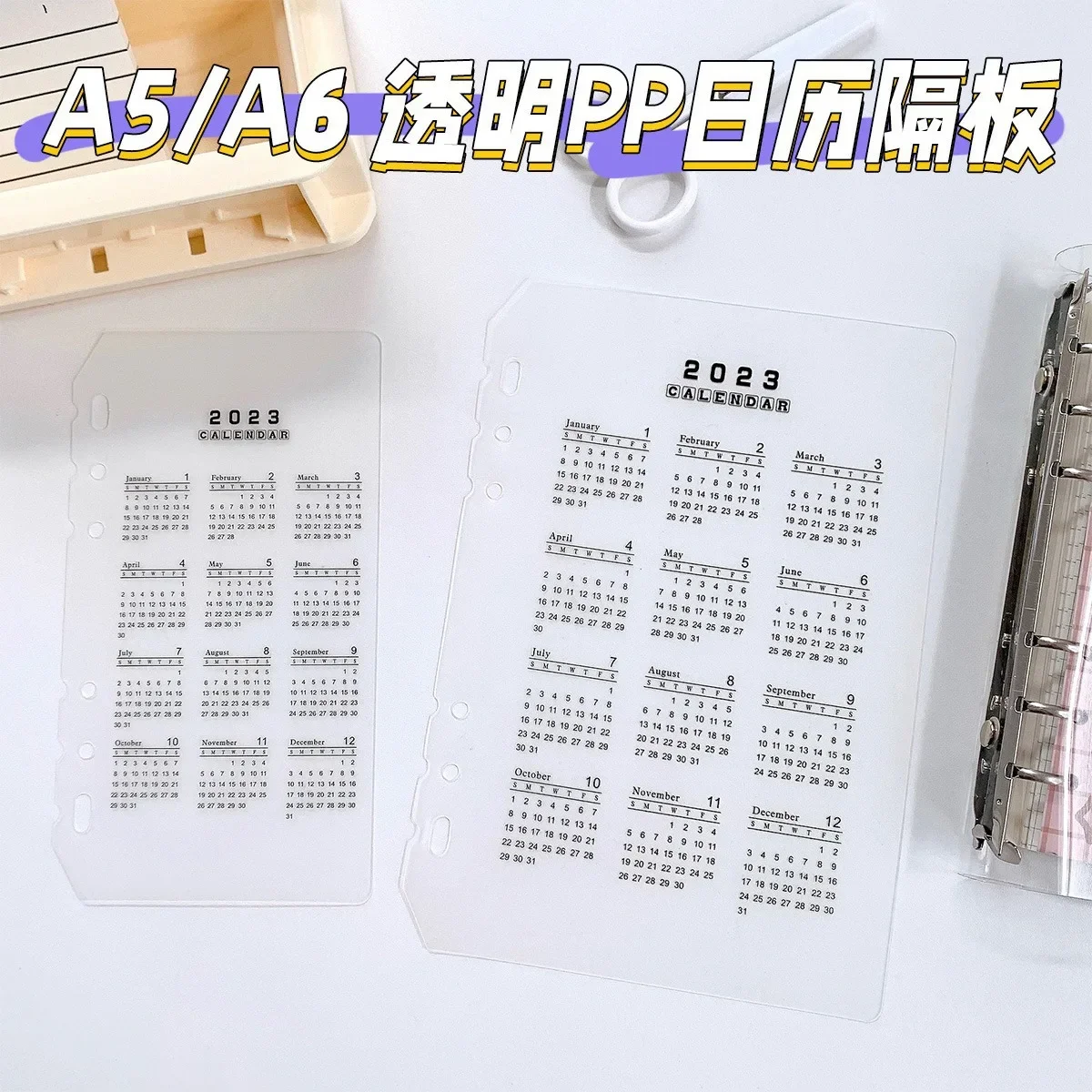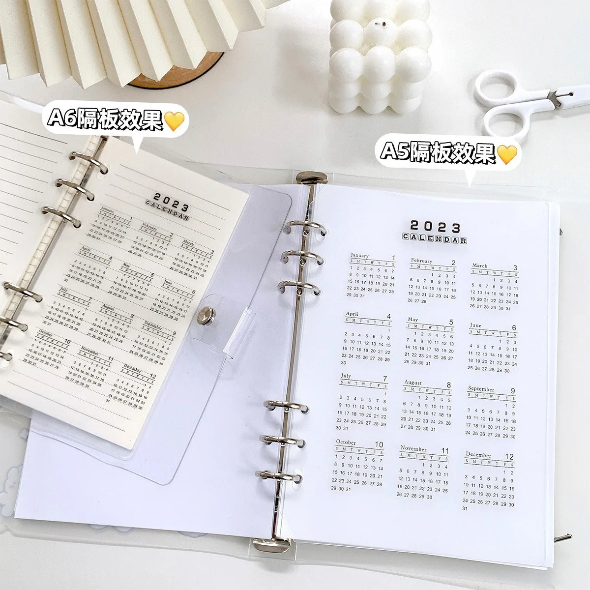 2025, calendario, carpeta de cuaderno, divisores de plástico A5 A6, Bloc de notas de hojas sueltas, divisores de índice, Agenda, planificador mensual anual, marcapáginas