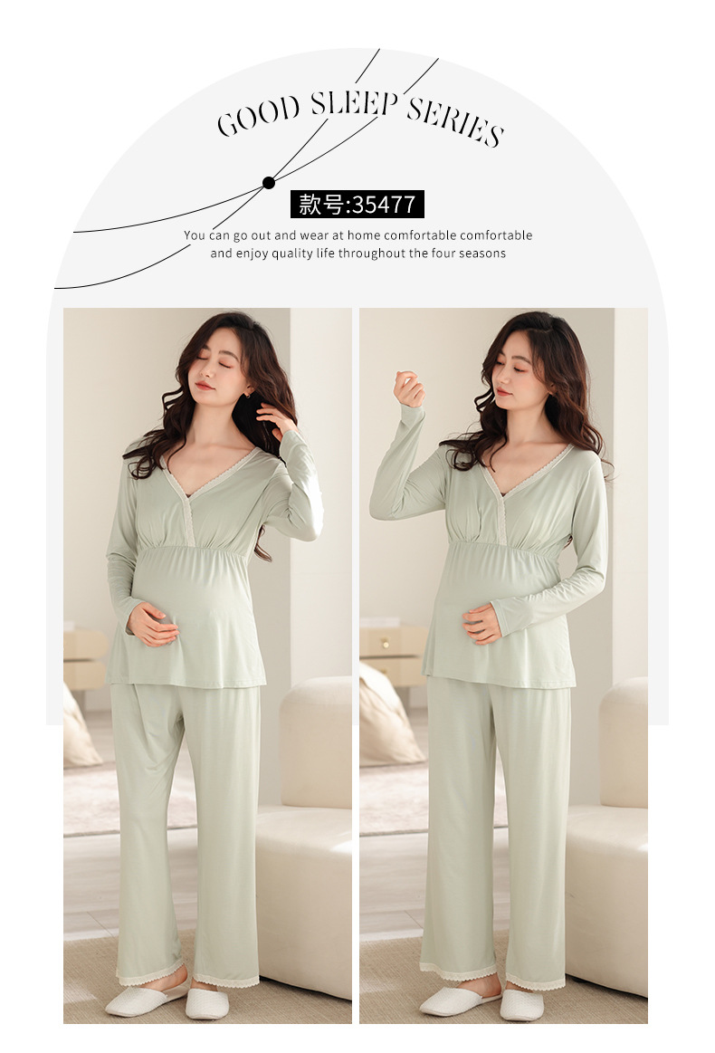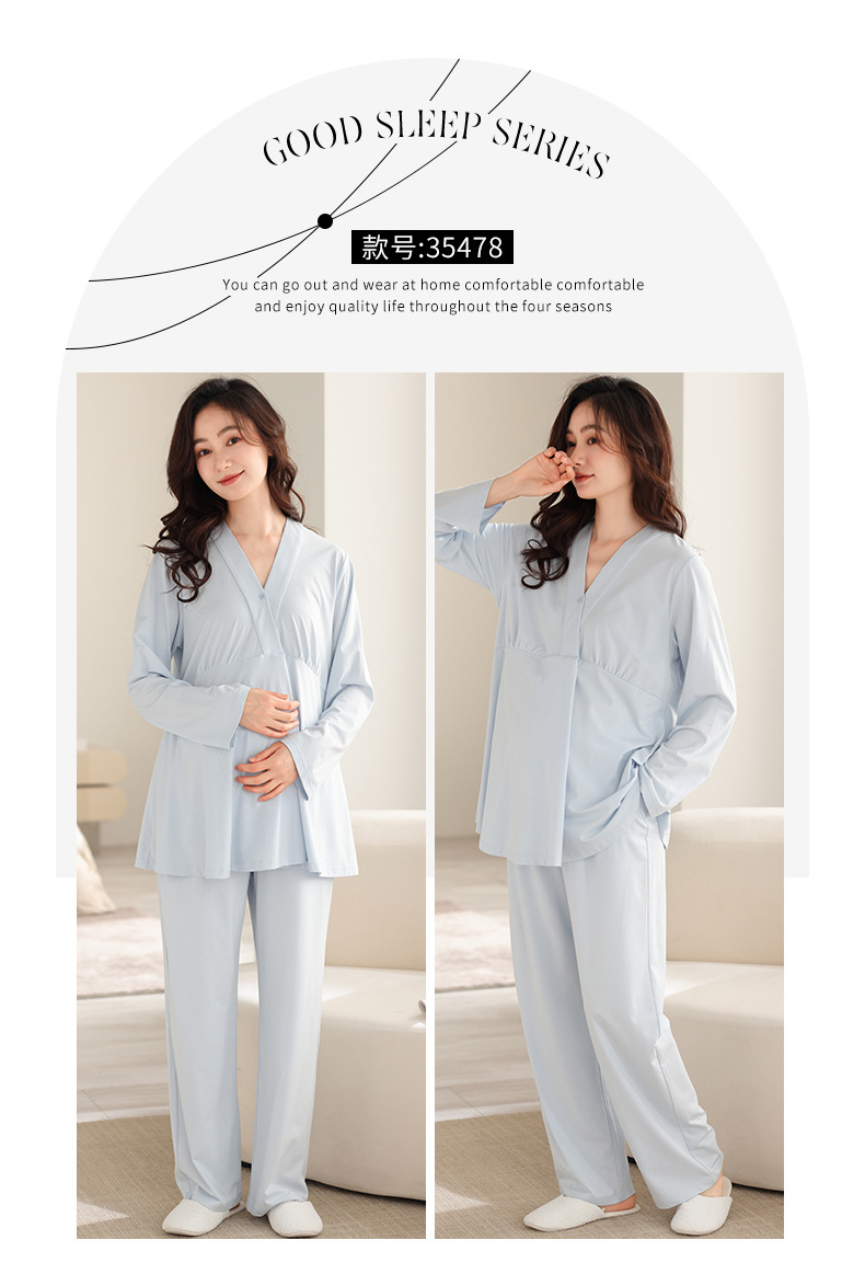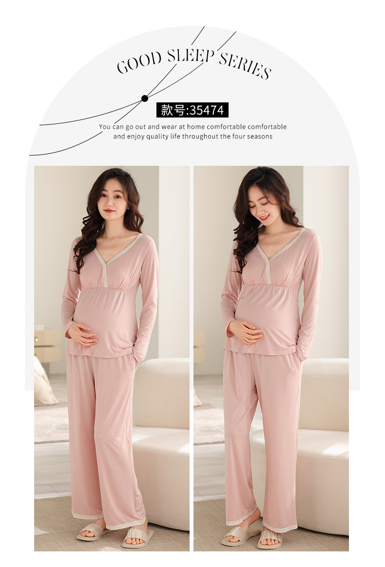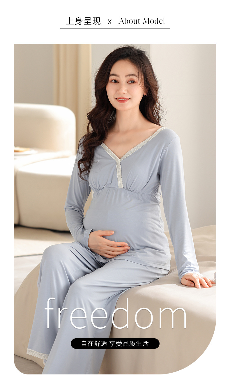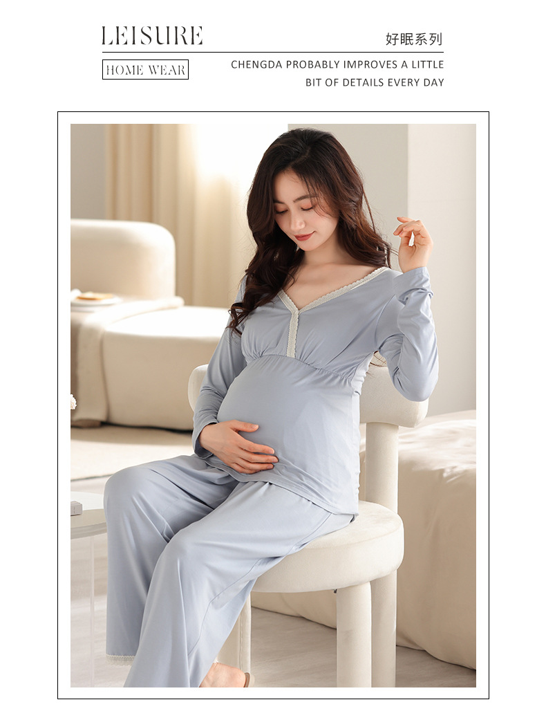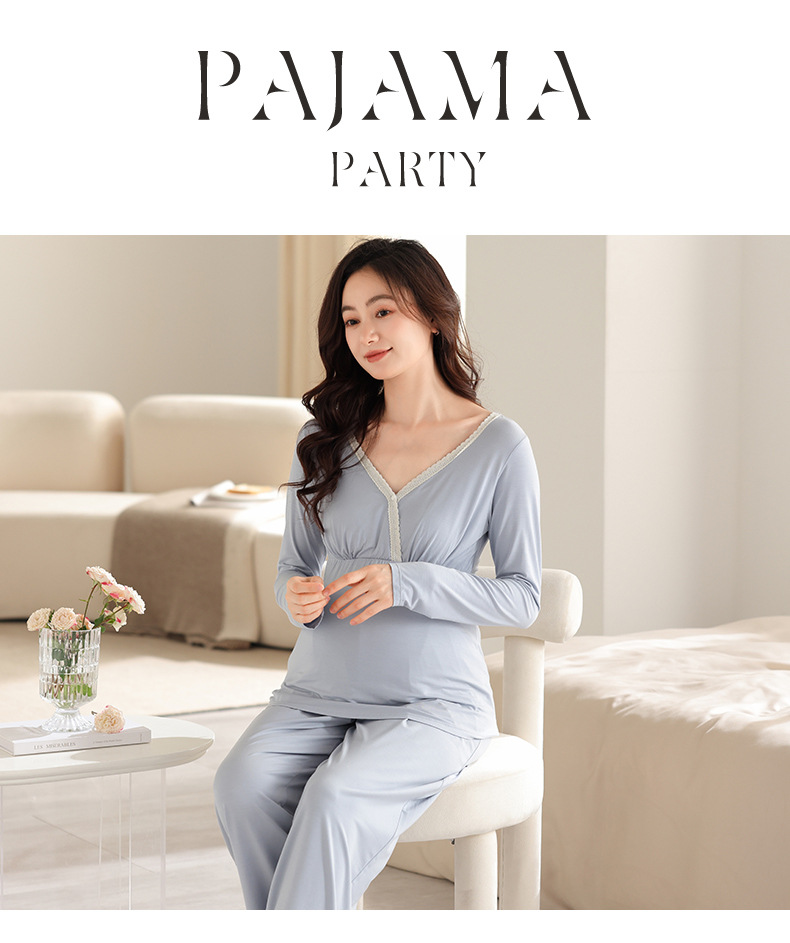 2025 Conjunto de ropa de dormir de maternidad con cuello en V, Top de lactancia de manga larga + Pantalones, pijamas sueltos para lactancia, Twinset, ropa de maternidad cómoda
