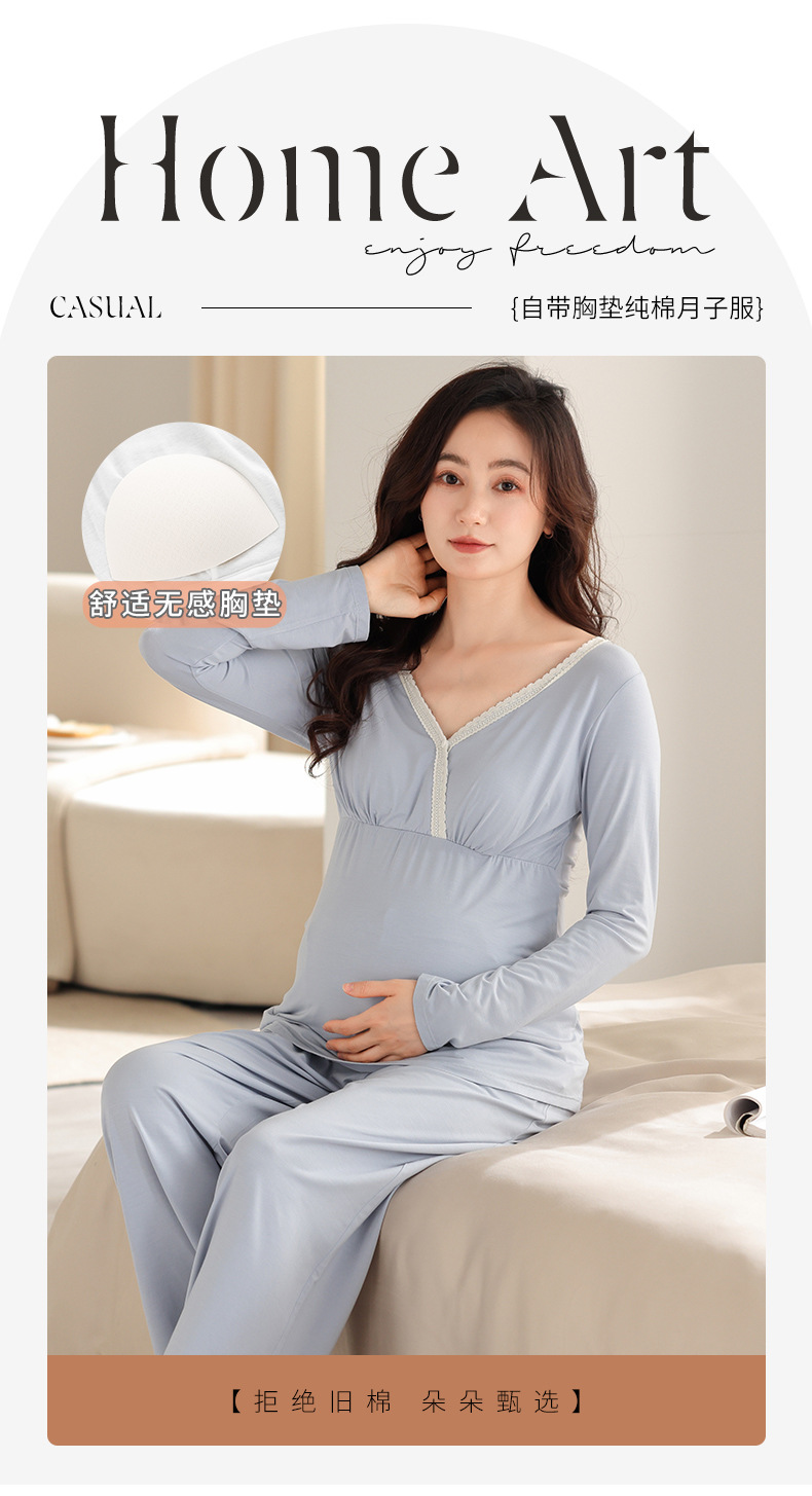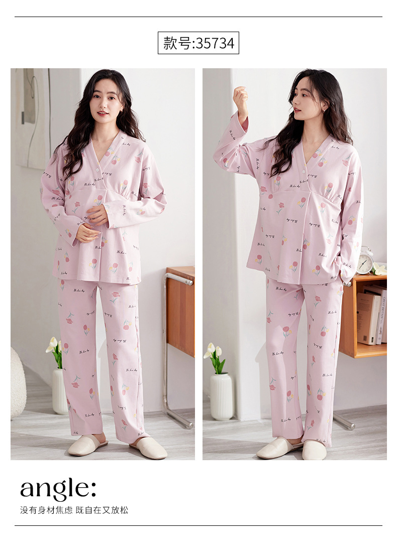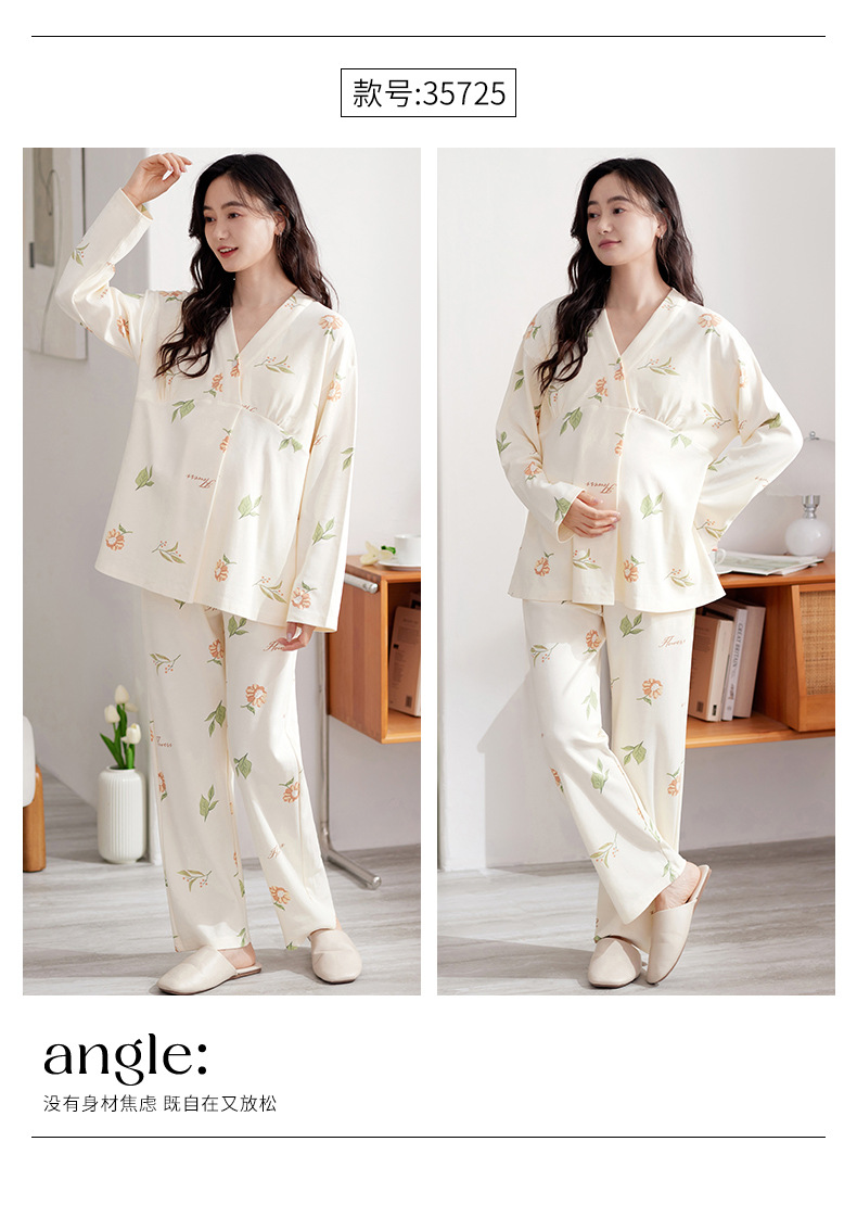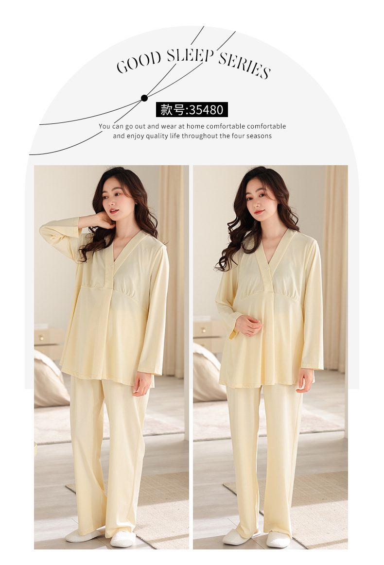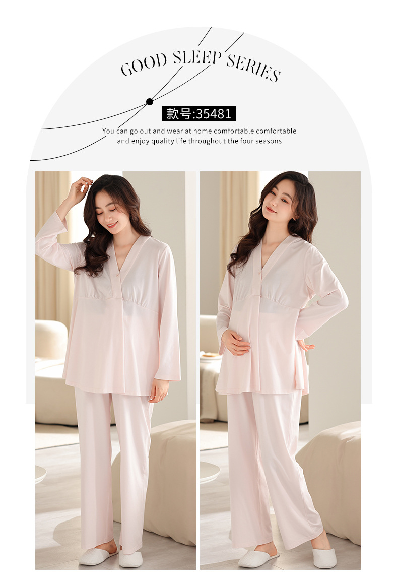 2025 Conjunto de ropa de dormir de maternidad con cuello en V, Top de lactancia de manga larga + Pantalones, pijamas sueltos para lactancia, Twinset, ropa de maternidad cómoda