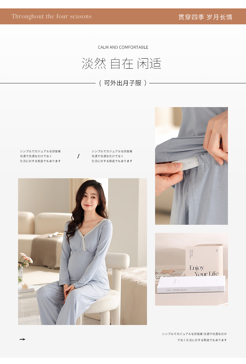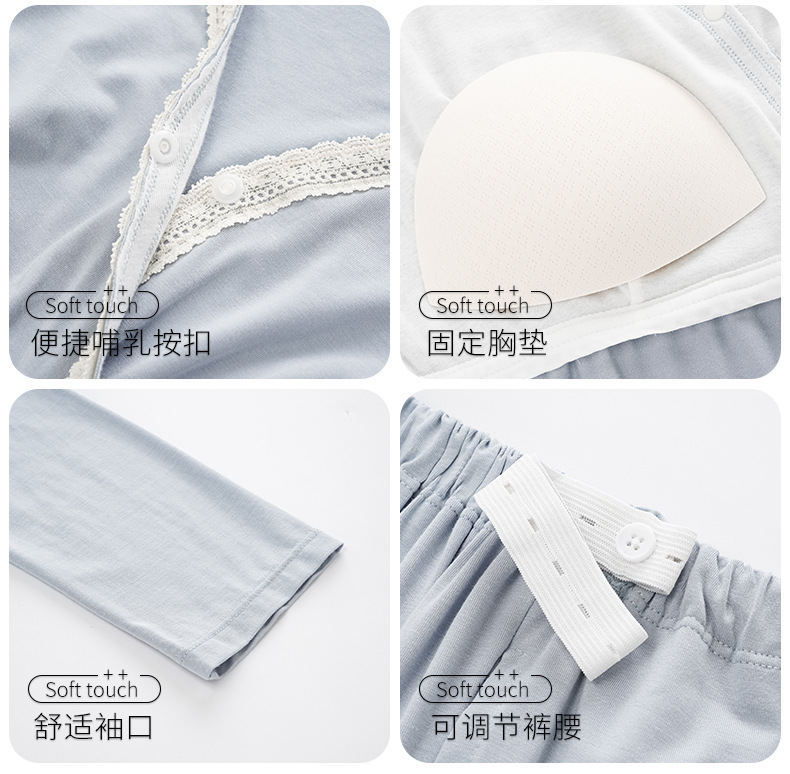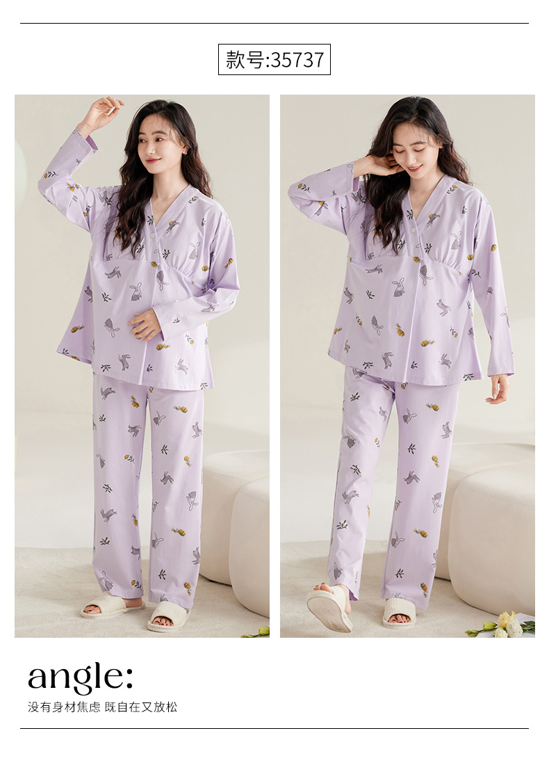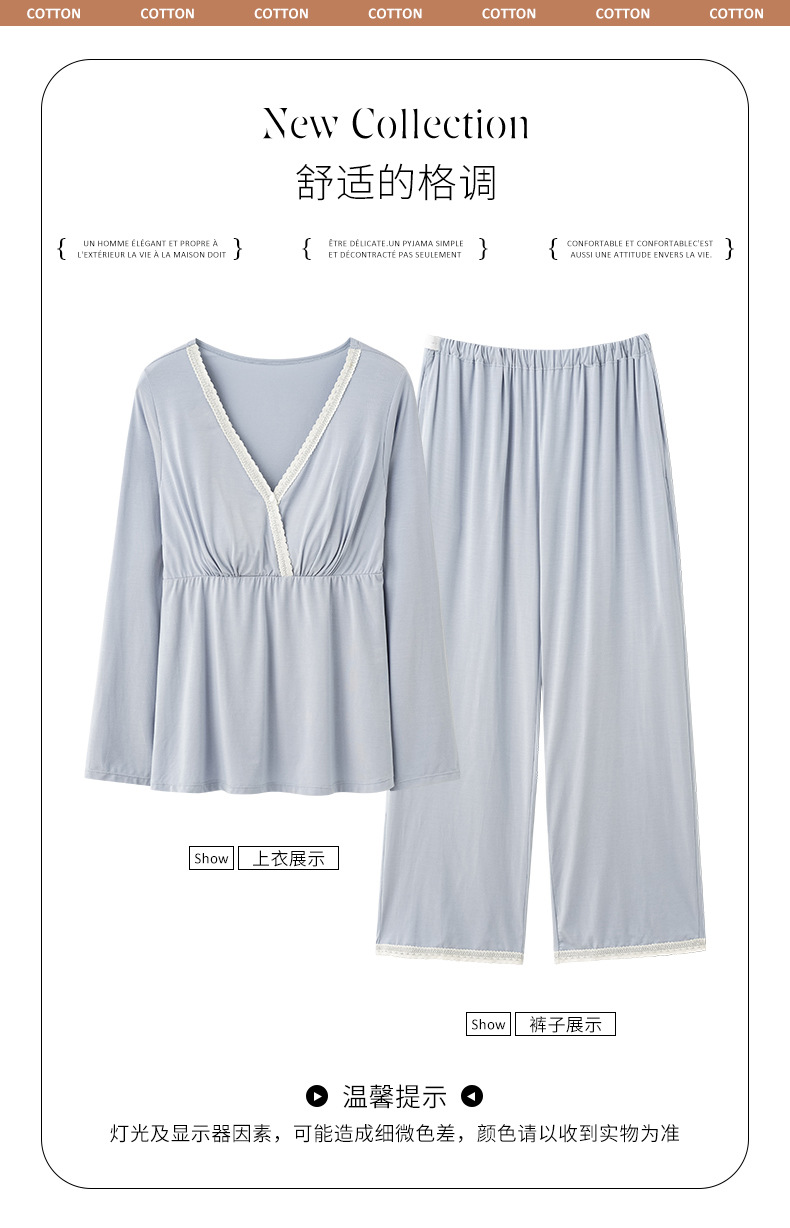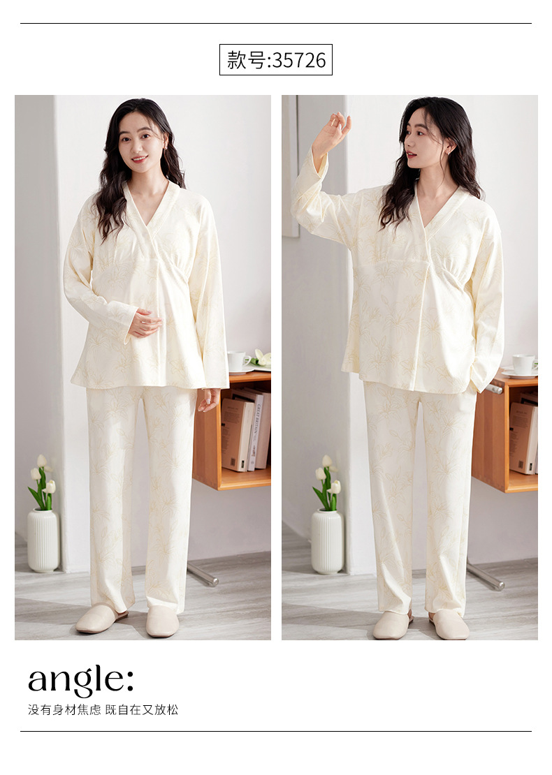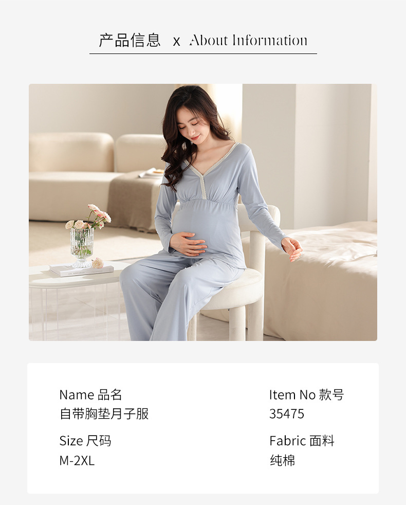 2025 Conjunto de ropa de dormir de maternidad con cuello en V, Top de lactancia de manga larga + Pantalones, pijamas sueltos para lactancia, Twinset, ropa de maternidad cómoda