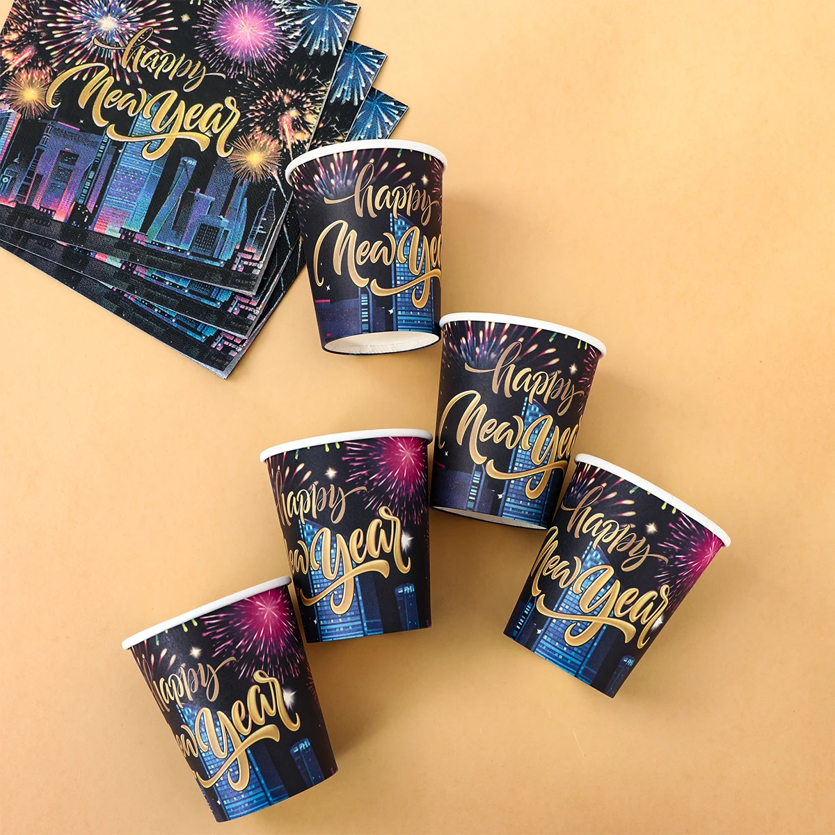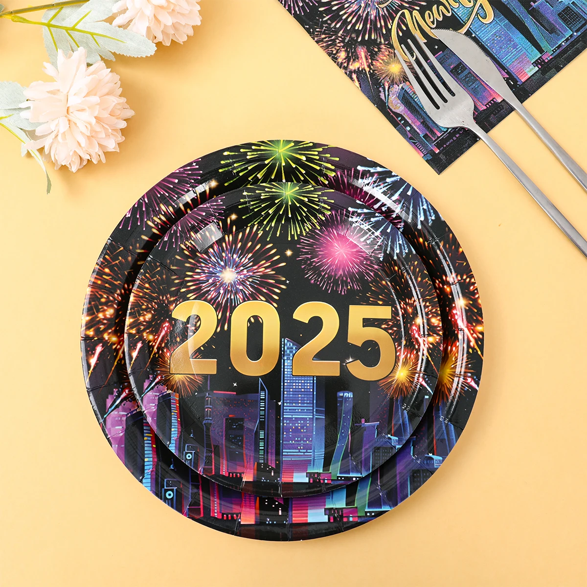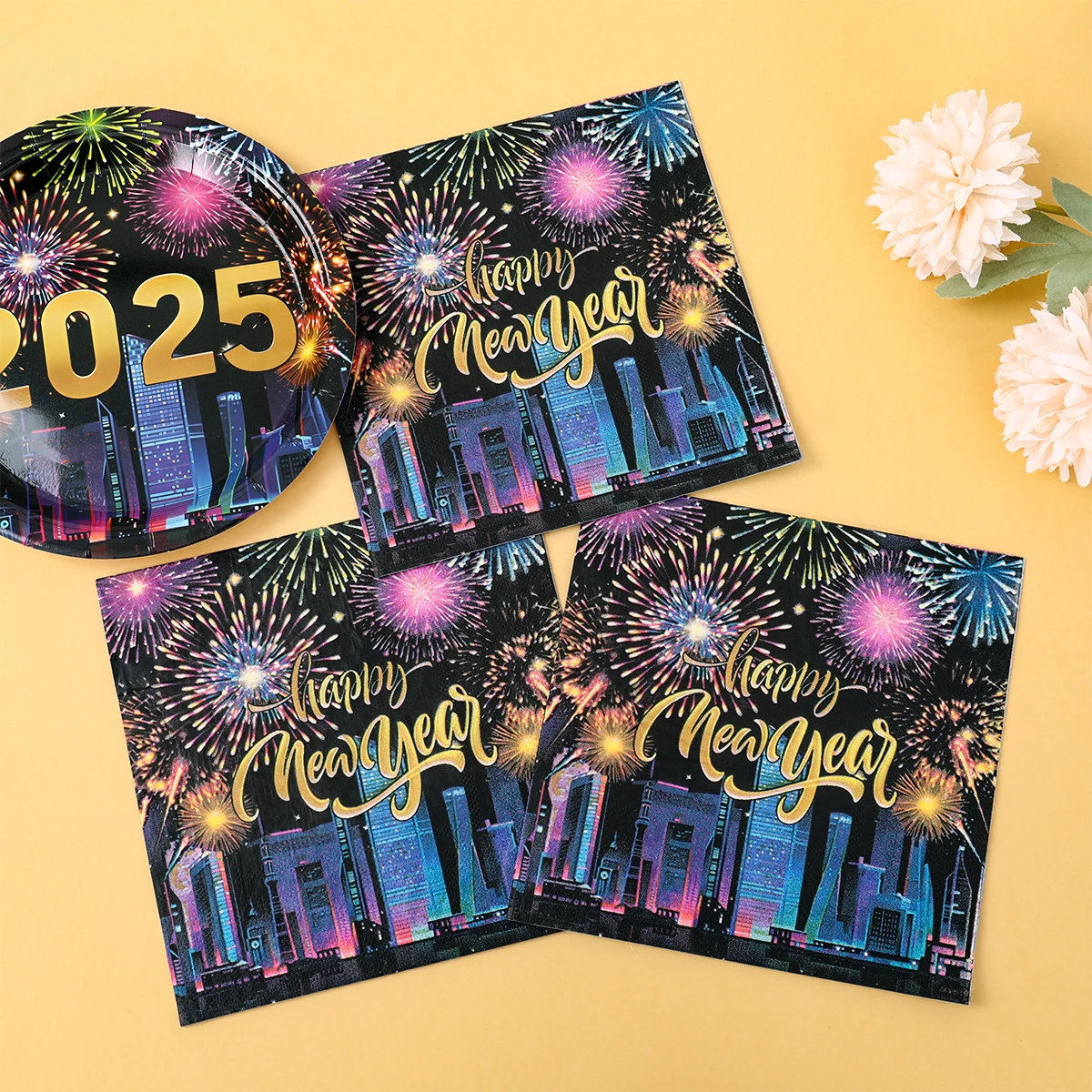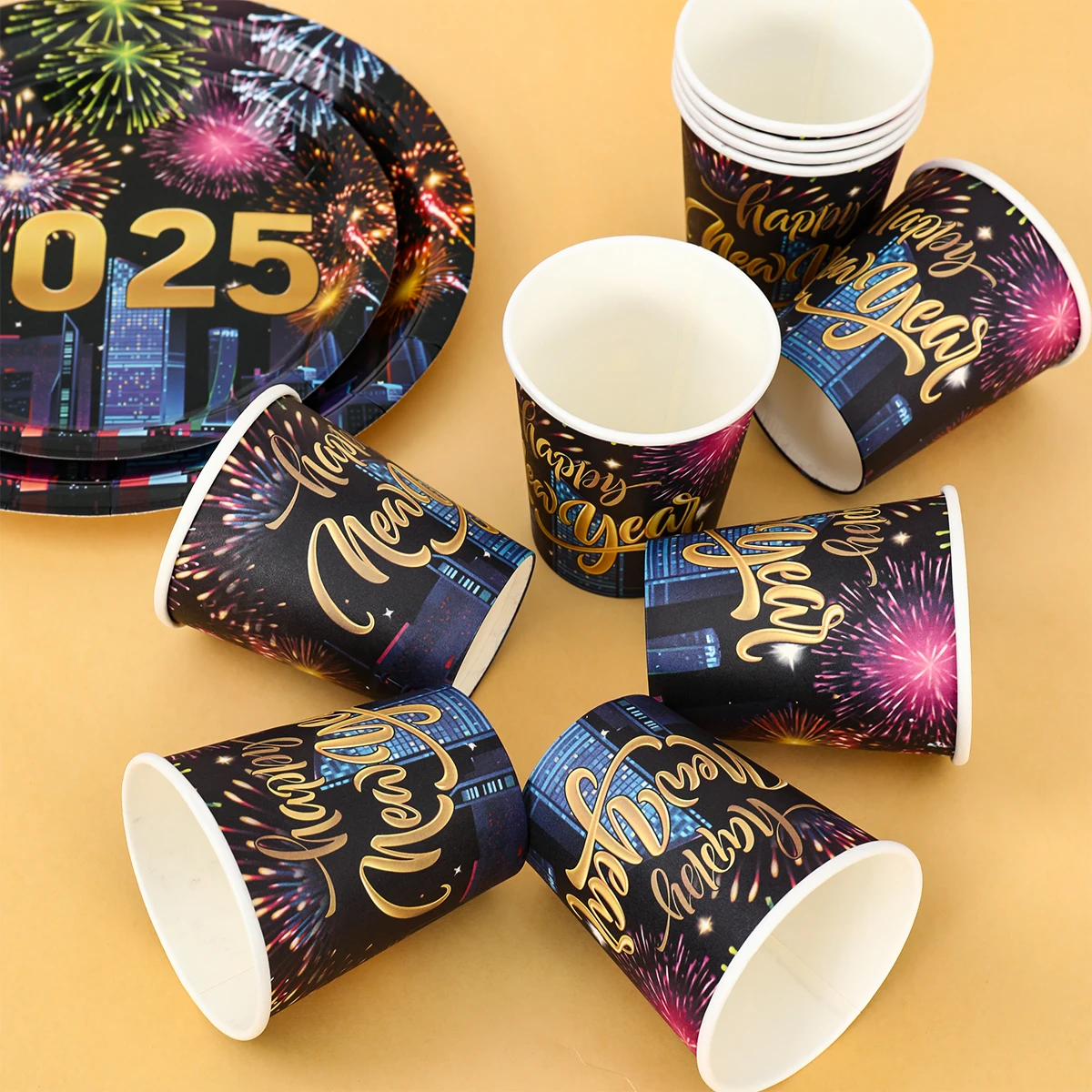 2025, decoración de fiesta de Feliz Año Nuevo, platos, servilletas, tazas de fuegos artificiales, coloridos, artículos para 2024, fiesta de Feliz Año Nuevo