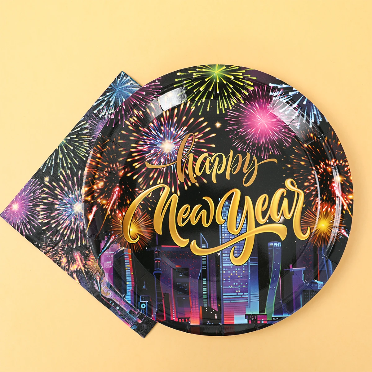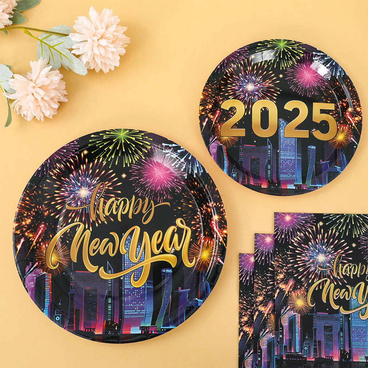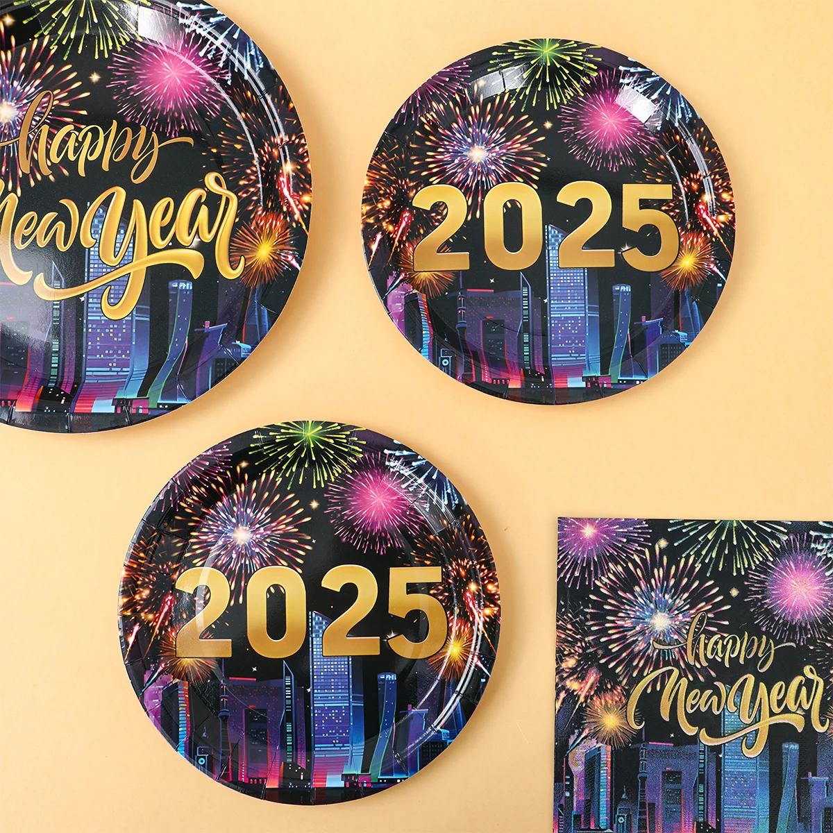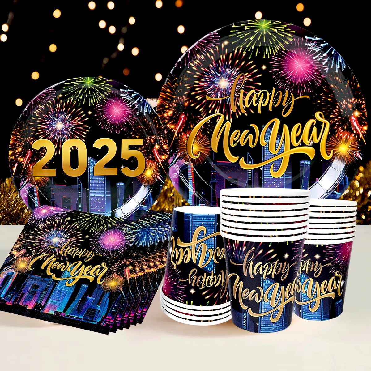 Comprar 2025, decoración de fiesta de Feliz Año Nuevo, platos, servilletas, tazas de fuegos artificiales, coloridos, artículos para 2024, fiesta de Feliz Año Nuevo