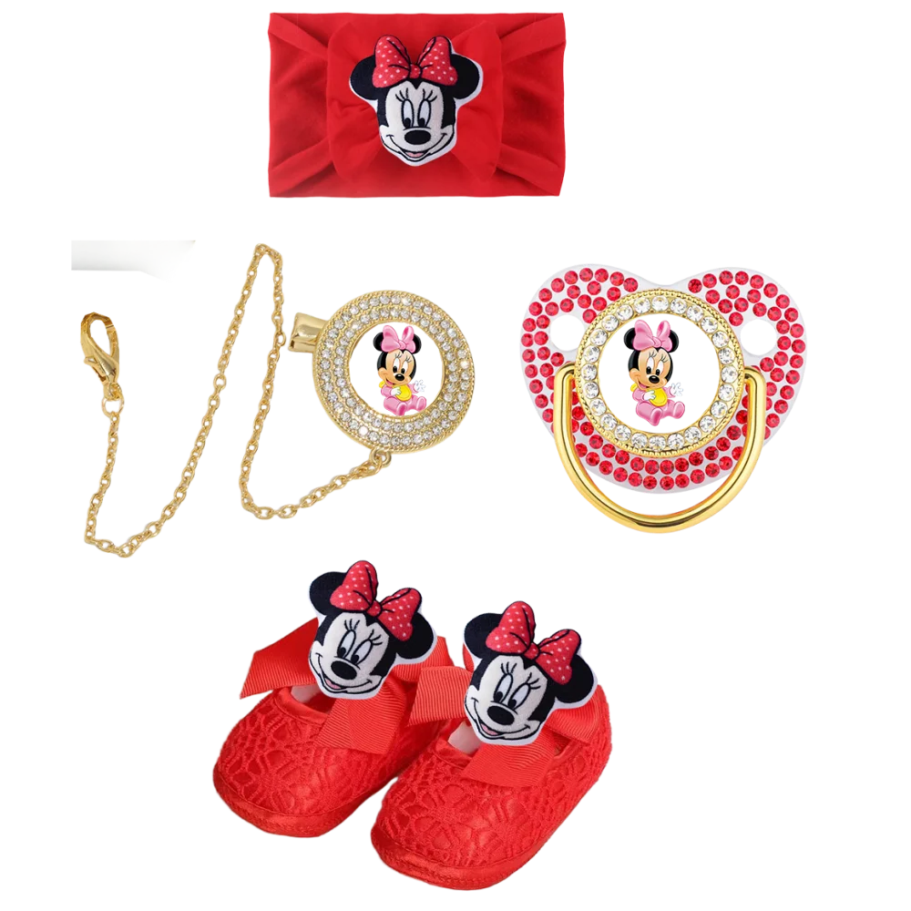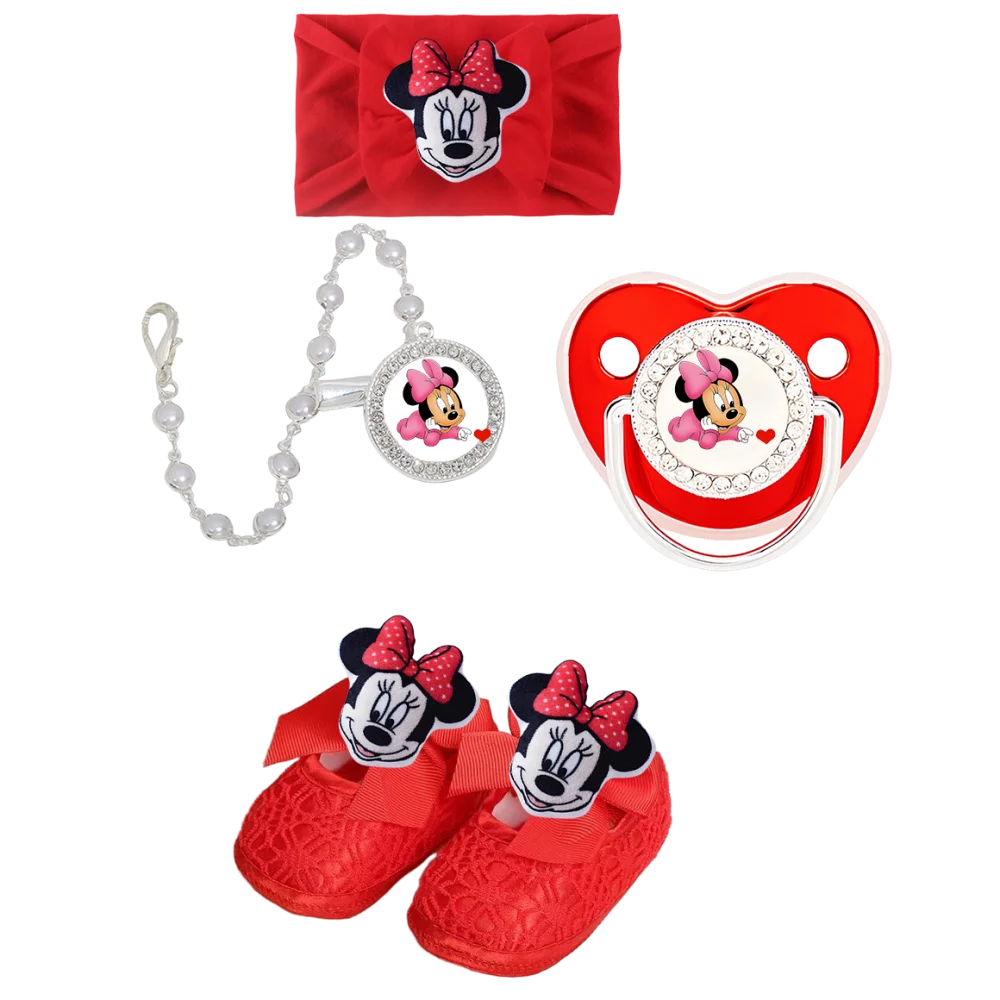 Diadema roja para bebé y chupete rojo ostentoso para bebé con cadena de cuentas de piedras preciosas, clip de piedras preciosas/juego de zapatos de bebé de juguete para dientes