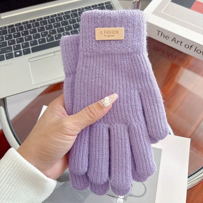 2025 Guantes de punto para niña Otoño-Invierno: color sólido dulce y lindo, estilo coreano, pantalla táctil, cálidos para protección contra heladas.