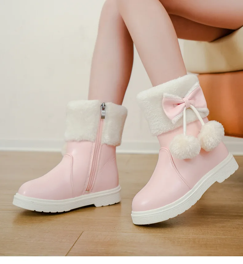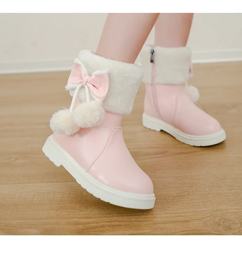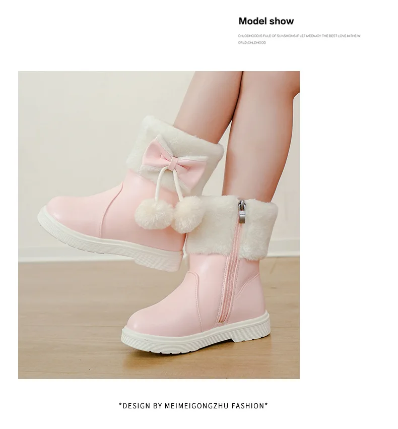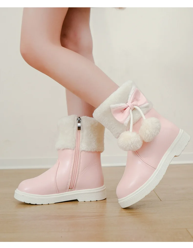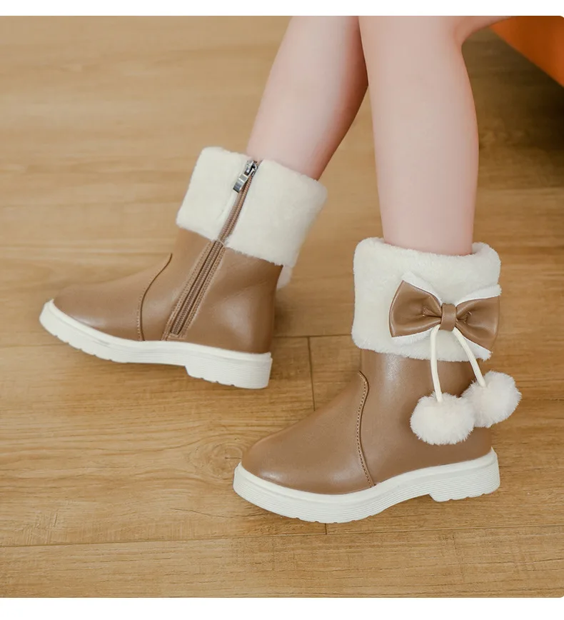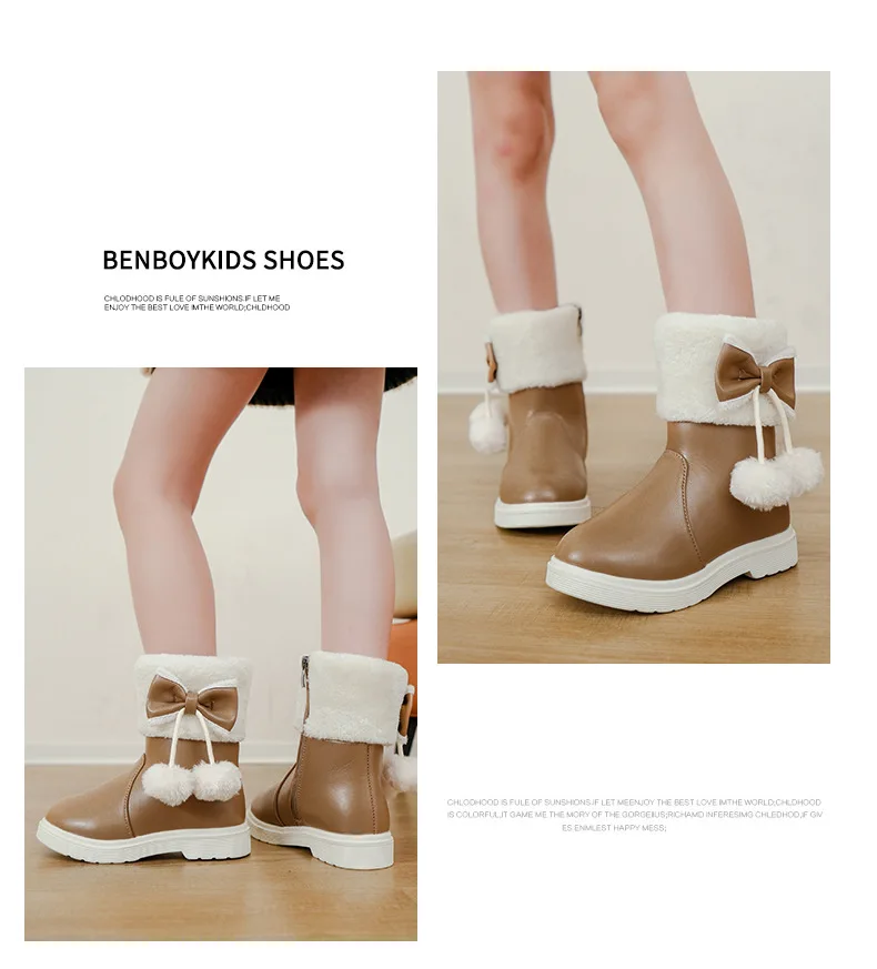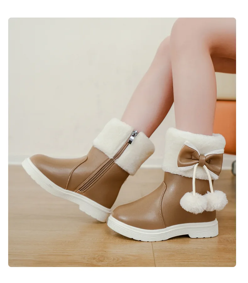 2025 Invierno nueva bota de cuero para niña Botas de nieve versátiles a la moda para niños Botas de tobillo simples para niñas Botas de algodón cálidas de terciopelo para niños