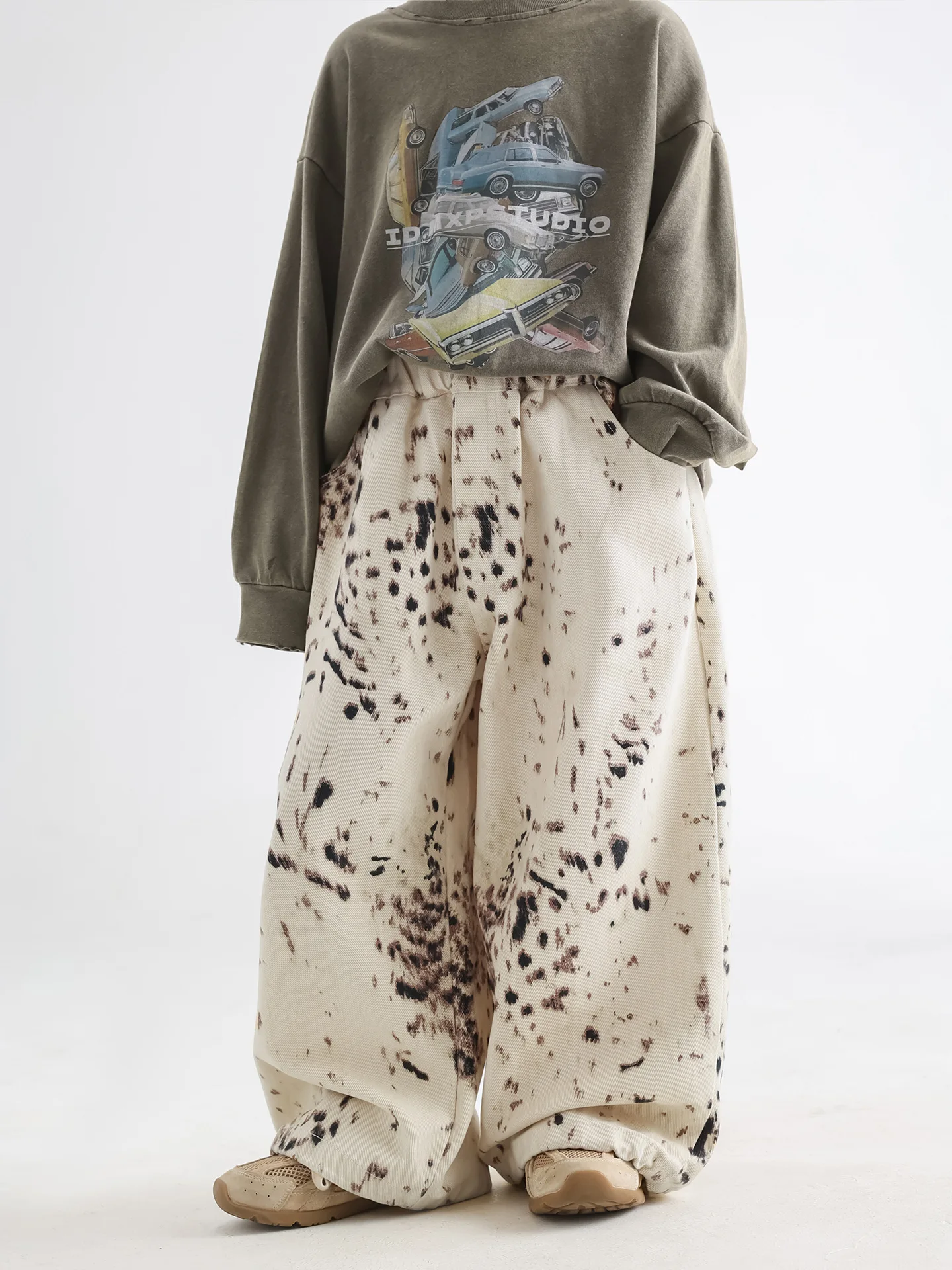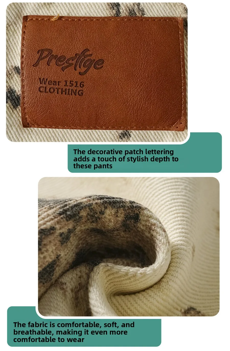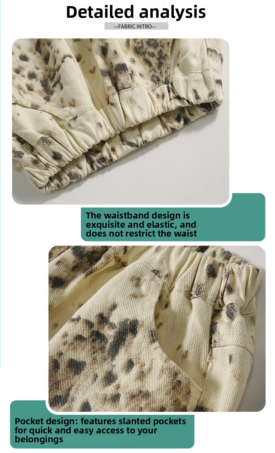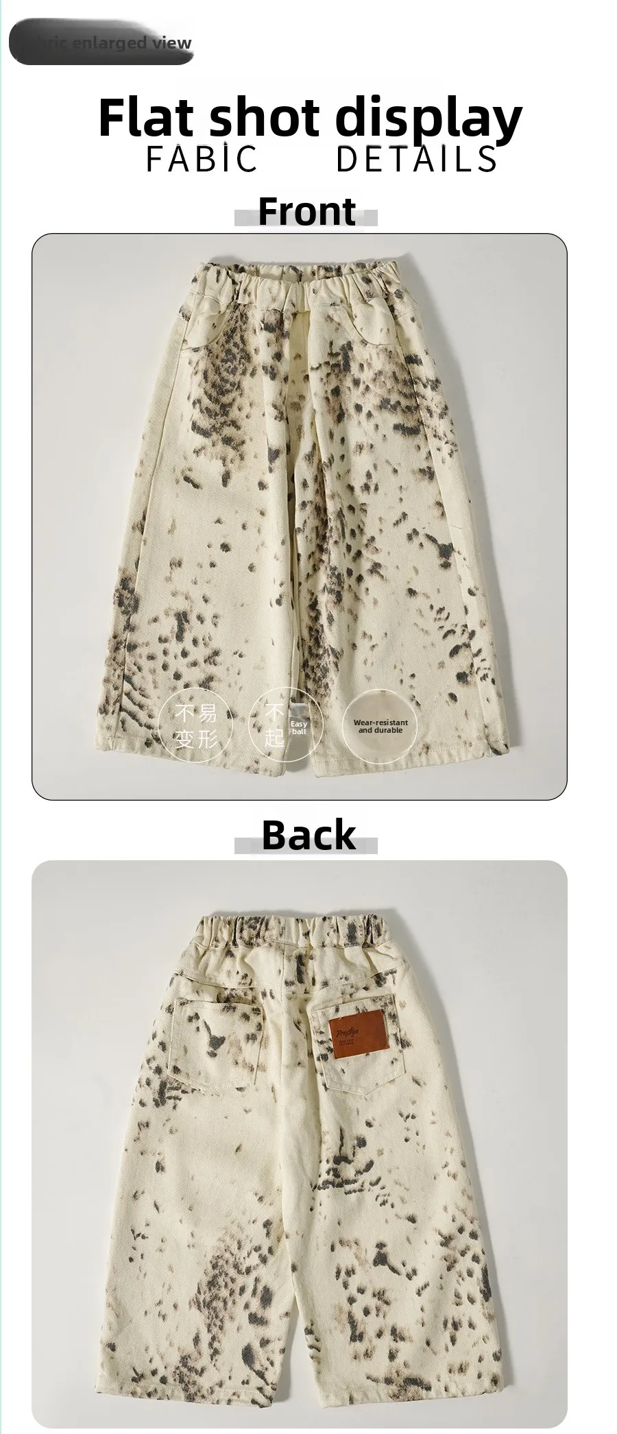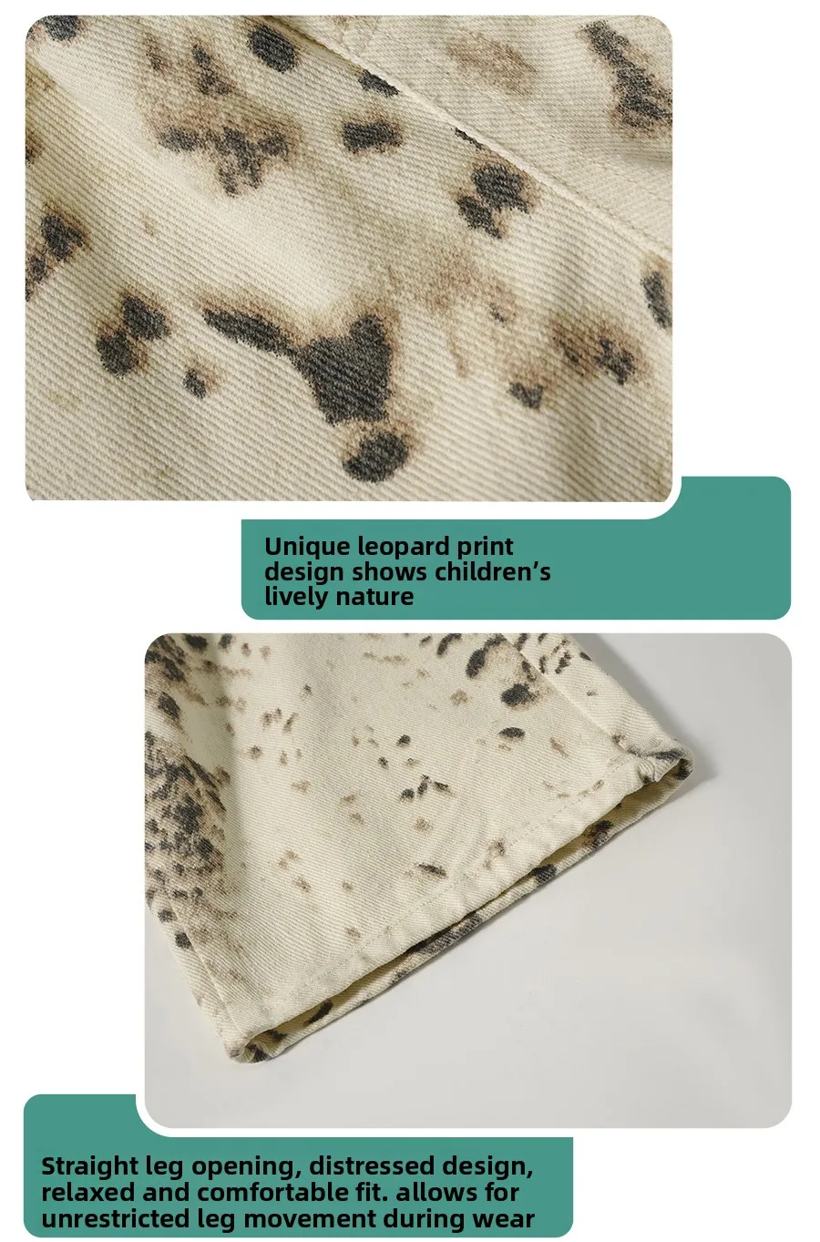 2025 Jeans con estampado de leopardo de estilo coreano para niños: pantalones casuales sueltos de pierna ancha de otoño, pantalones para niños de moda suaves y agradables para la piel
