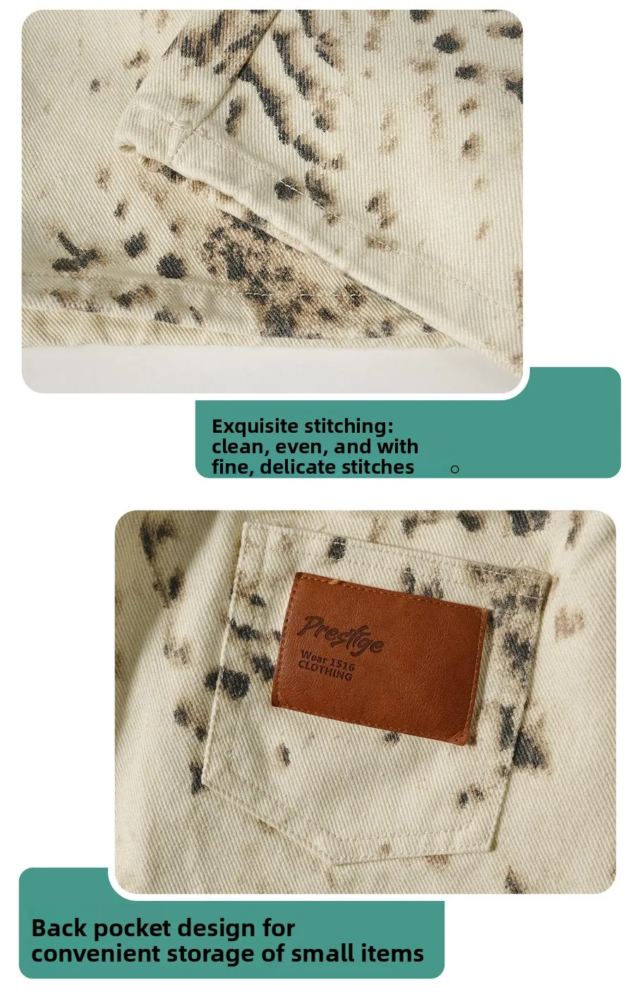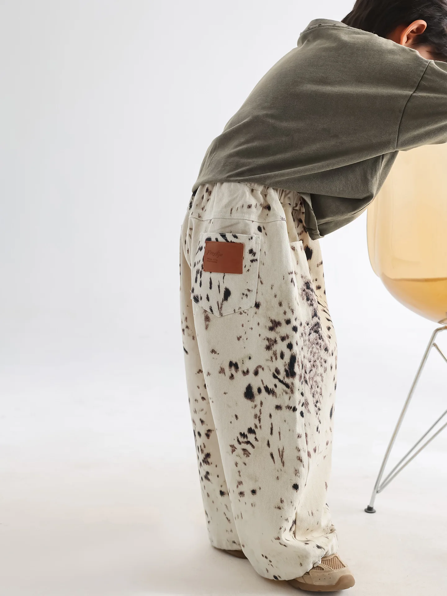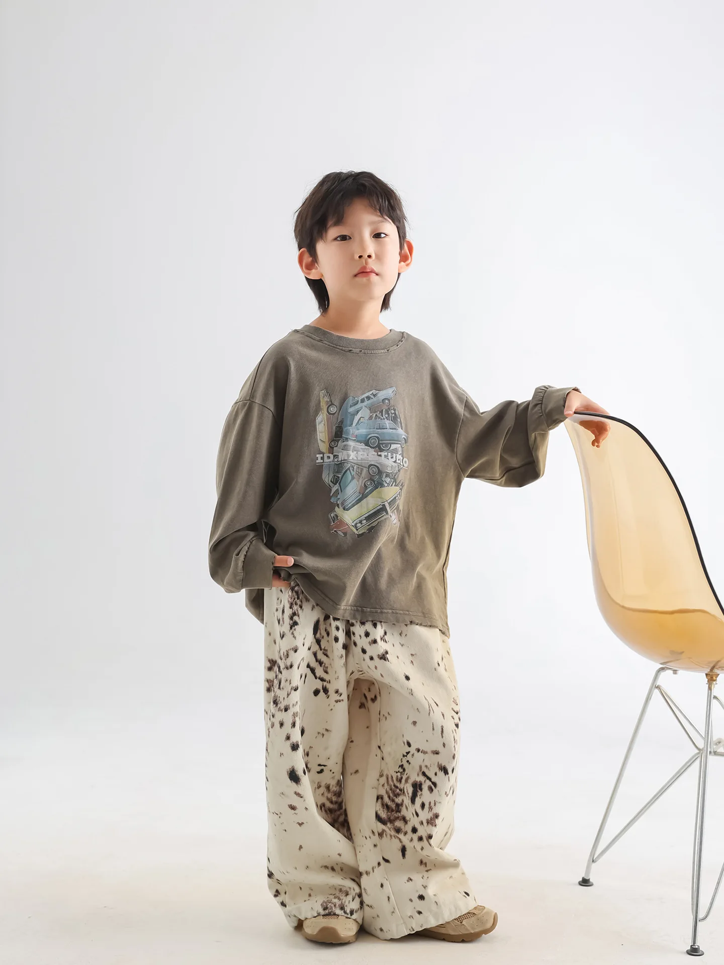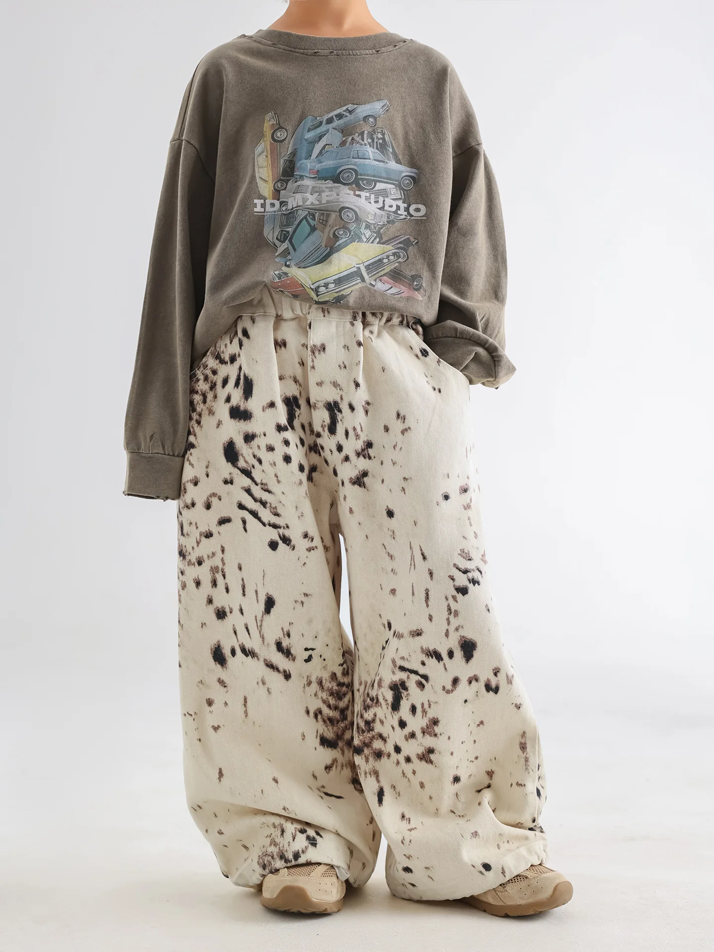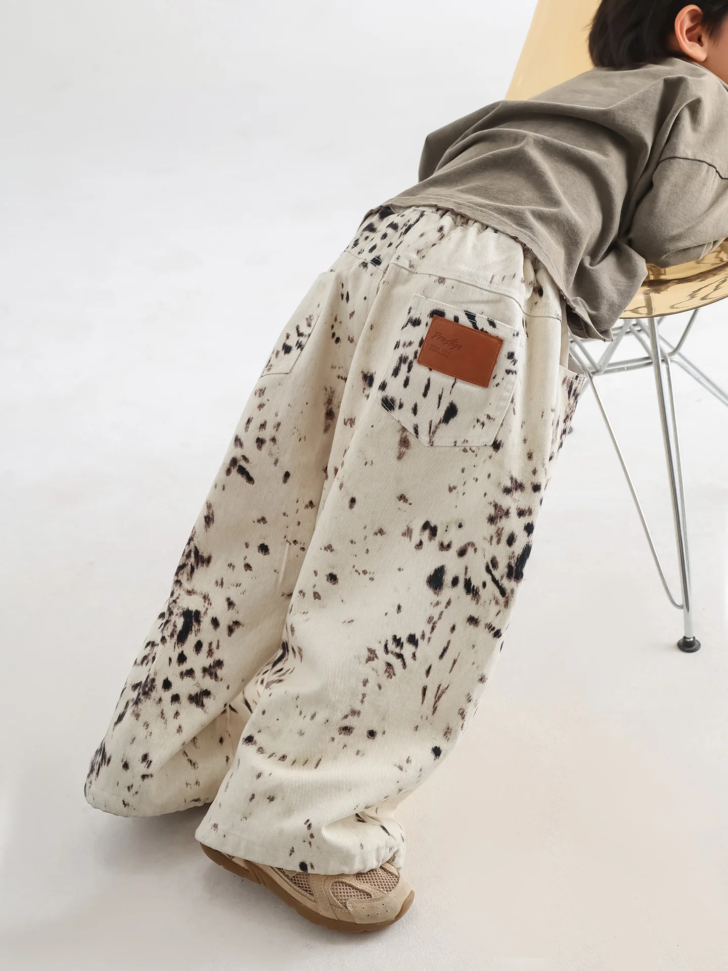 2025 Jeans con estampado de leopardo de estilo coreano para niños: pantalones casuales sueltos de pierna ancha de otoño, pantalones para niños de moda suaves y agradables para la piel