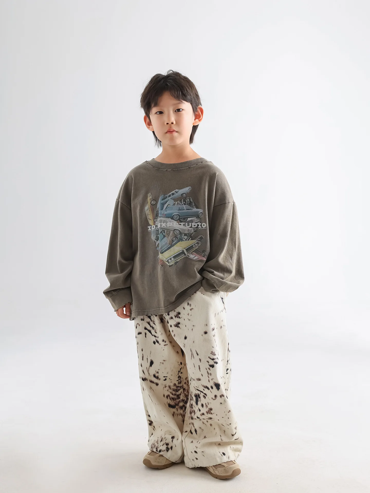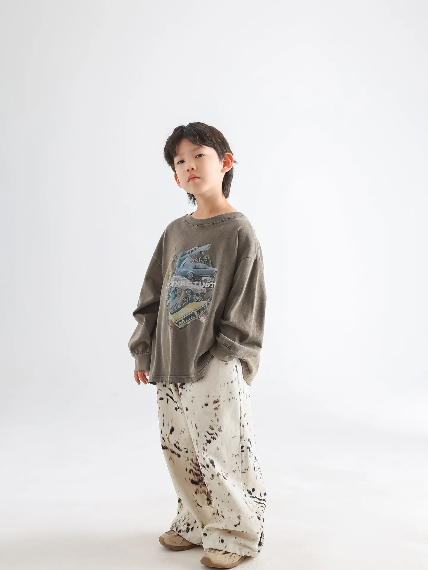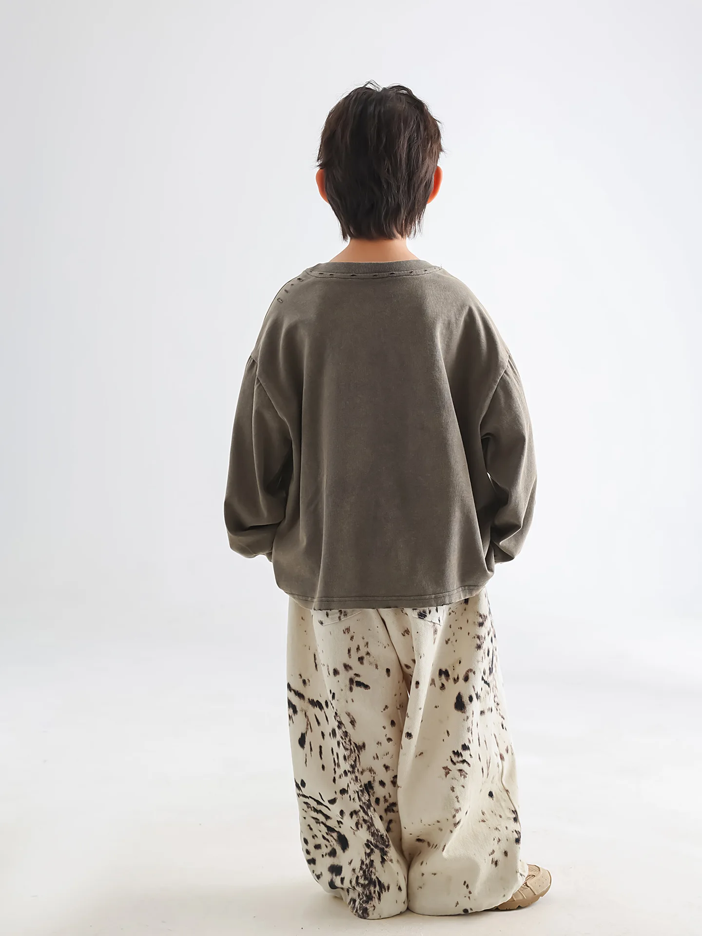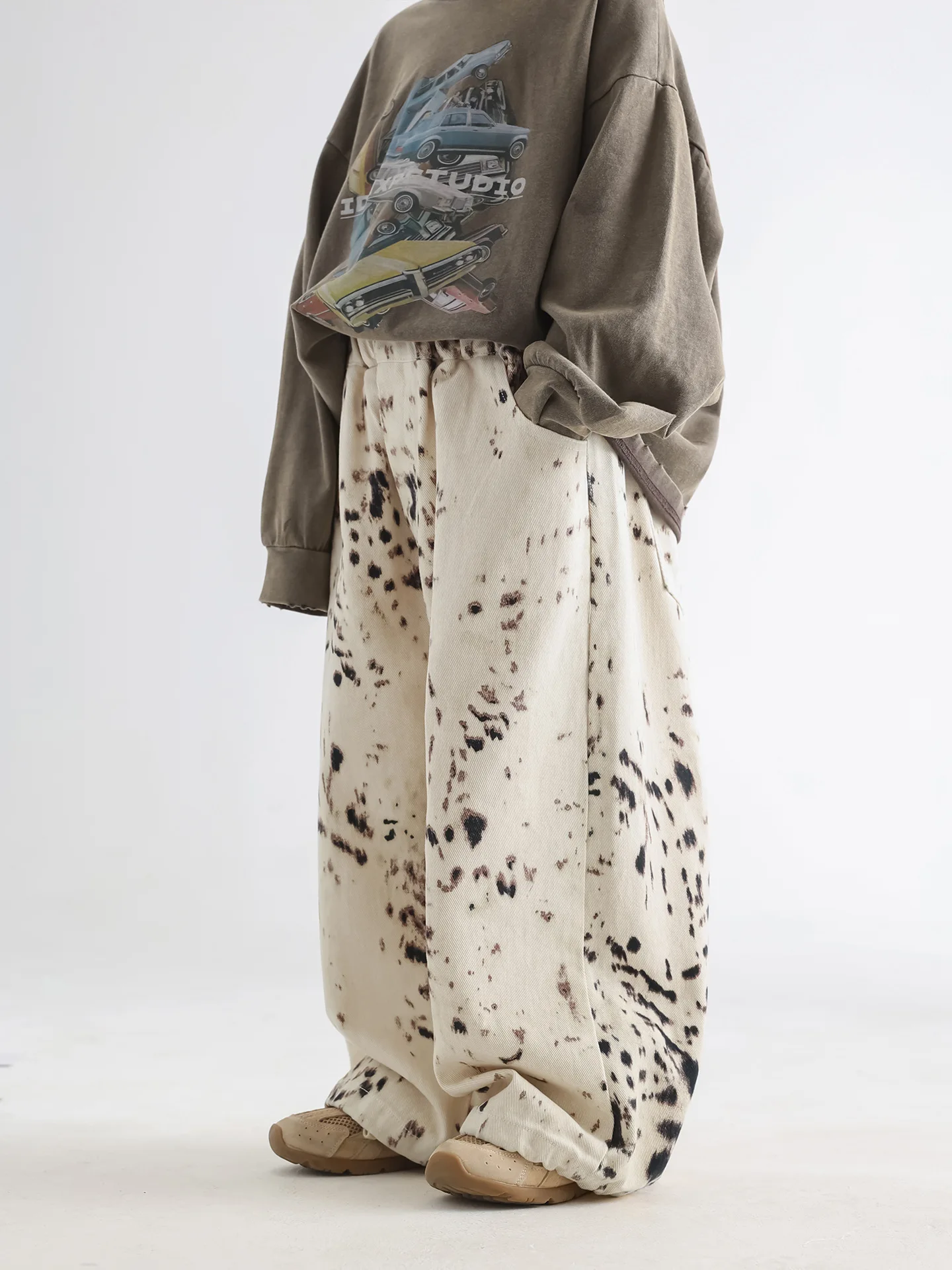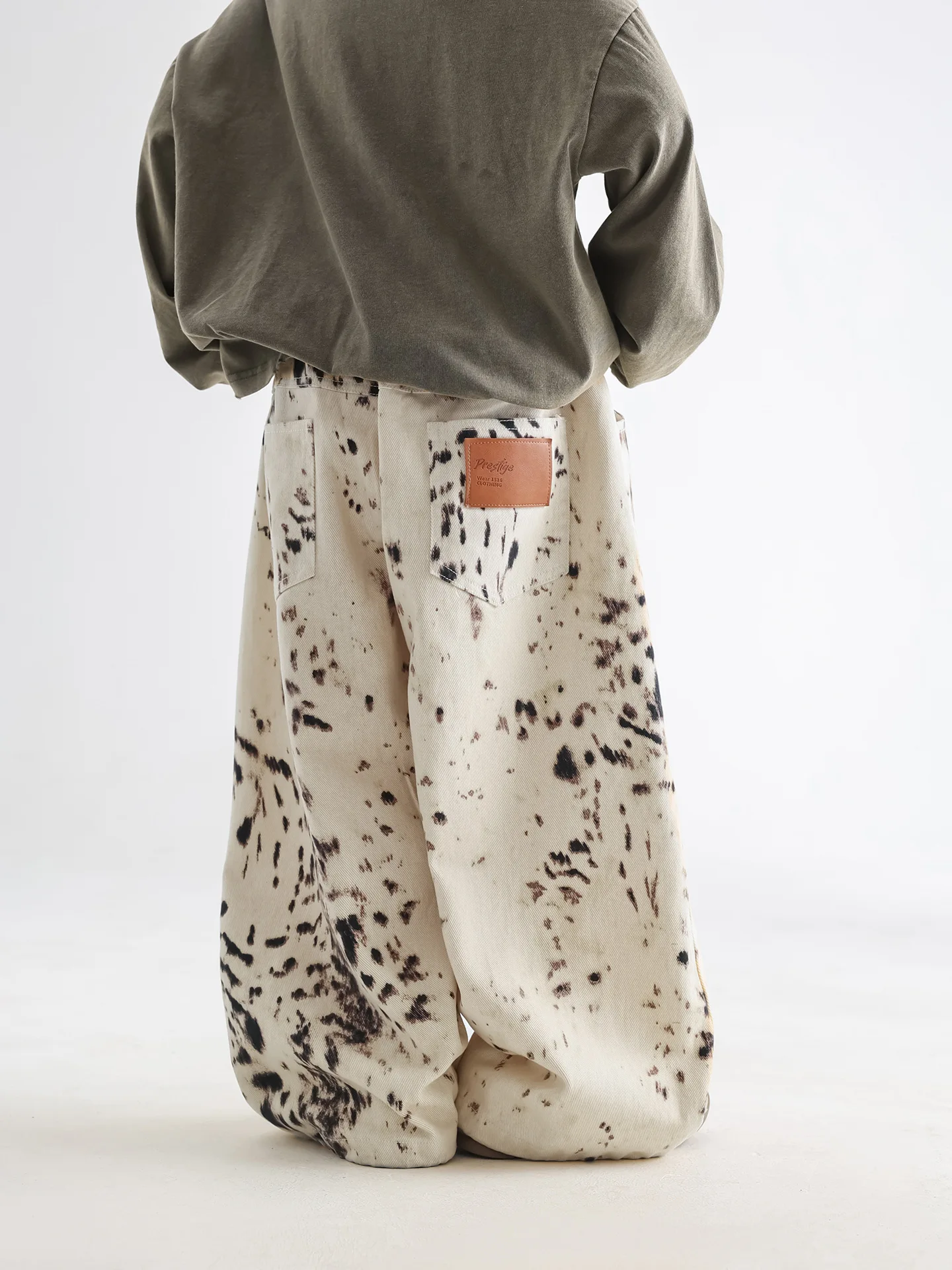 2025 Jeans con estampado de leopardo de estilo coreano para niños: pantalones casuales sueltos de pierna ancha de otoño, pantalones para niños de moda suaves y agradables para la piel