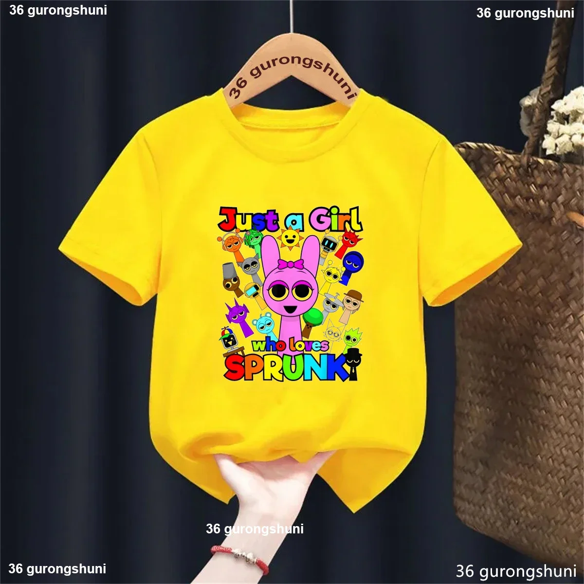 2025 Just A Girls Who Loves Sprunki Camiseta con estampado gráfico niñas/niños divertida camiseta de fiesta de cumpleaños verano camiseta sólida Top