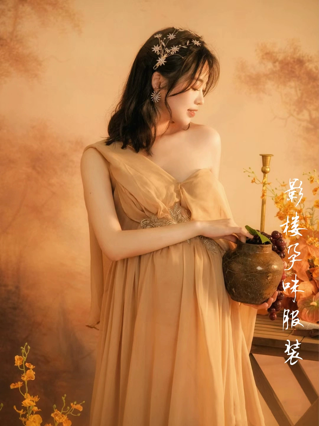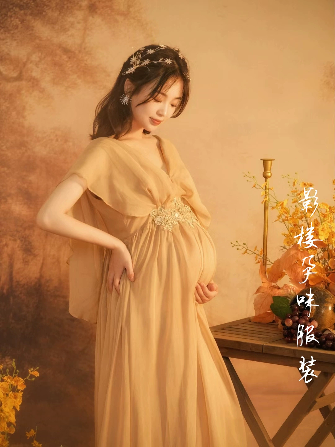 Falda elegante color champán para mujer, accesorios de fotografía de maternidad, vestidos de maternidad con cuello en V para sesión de fotos de embarazada, 2025, 2025