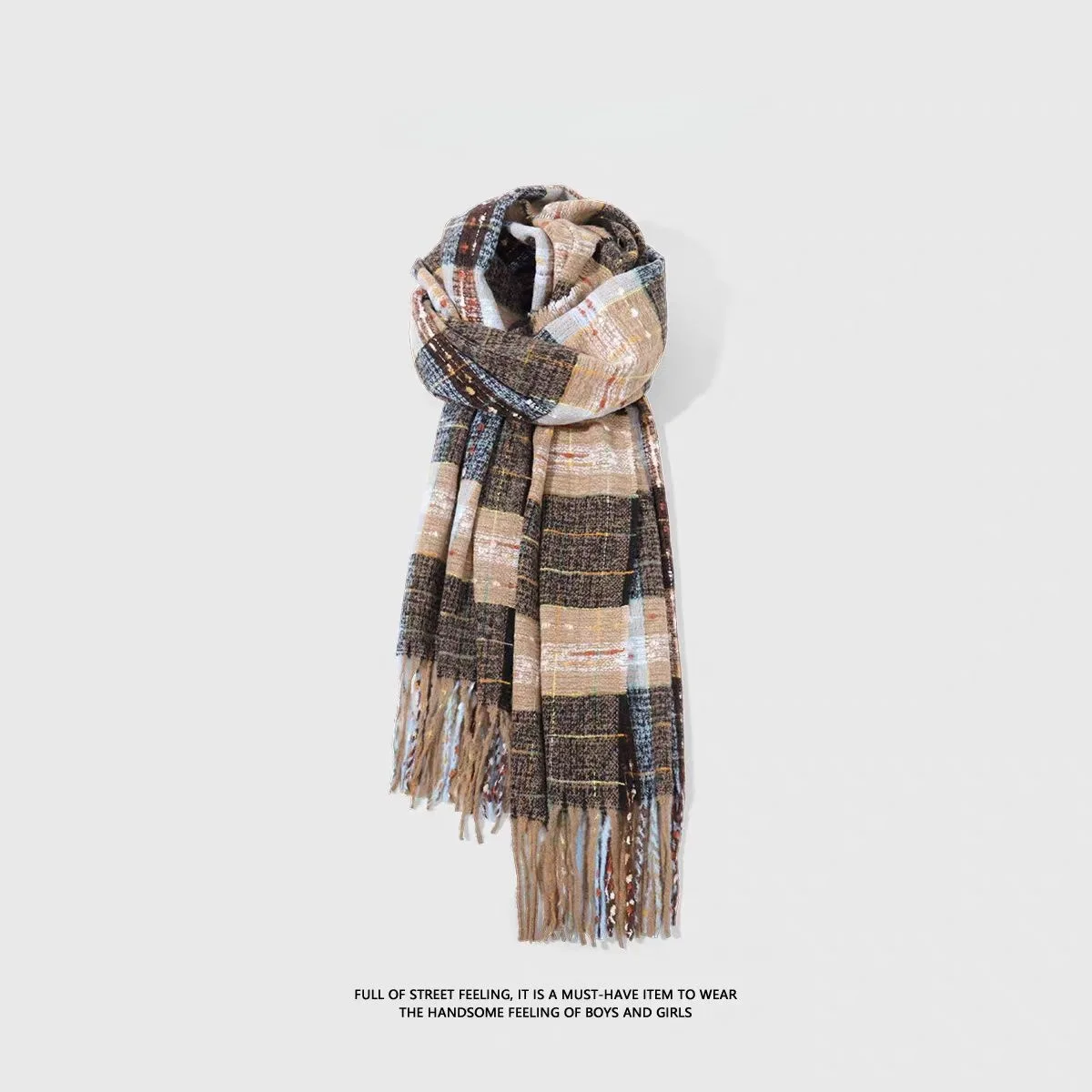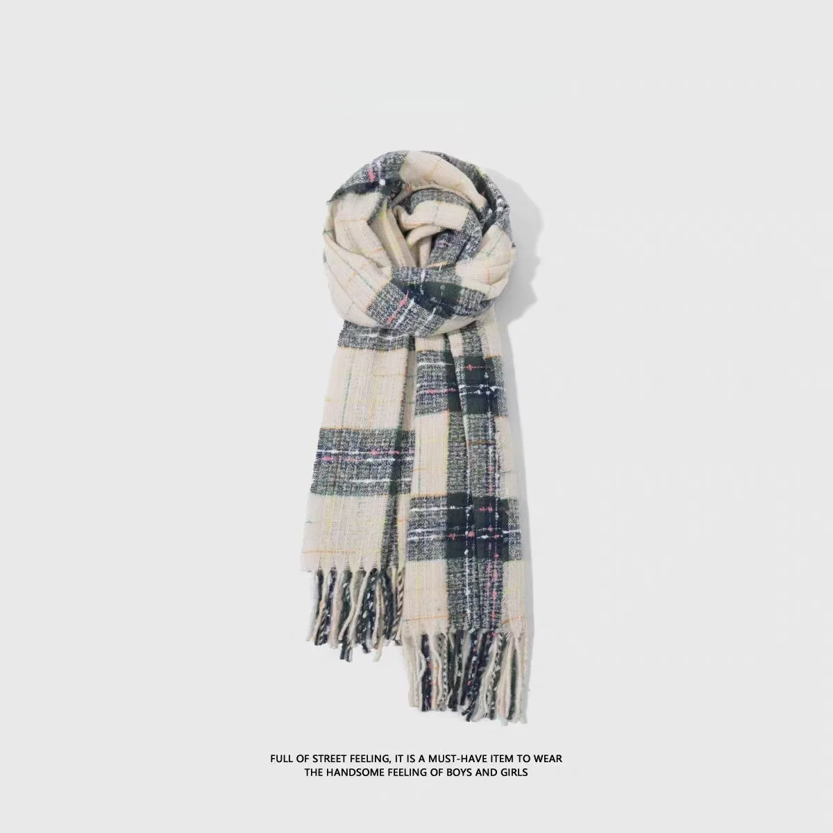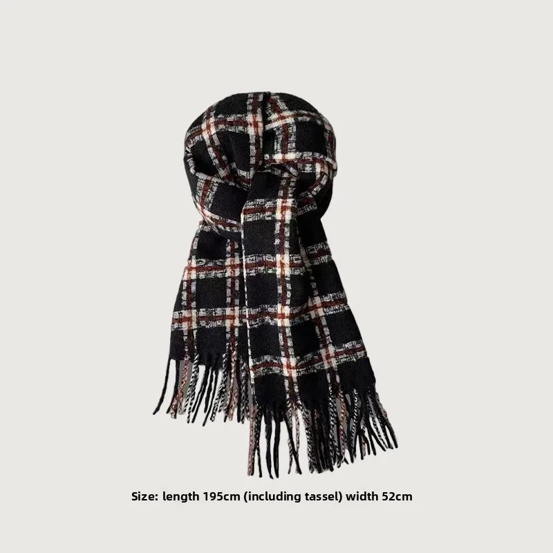 2025 Nueva bufanda a cuadros para niñas: ambiente coreano, cálida para otoño e invierno, lindo y versátil calentador de cuello suave de estilo pijo.