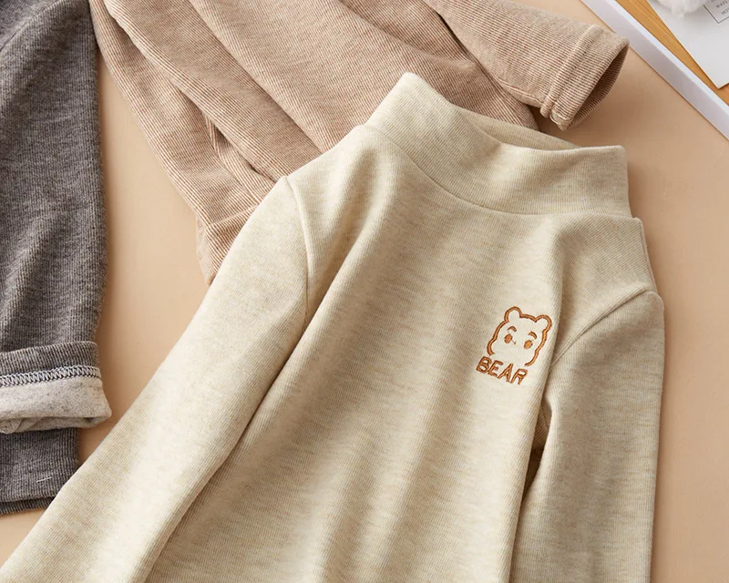 2025 nuevas camisetas interiores con forro polar para niños, camisetas cálidas con cuello simulado para niños y niñas, camisetas térmicas suaves de manga larga para niños pequeños