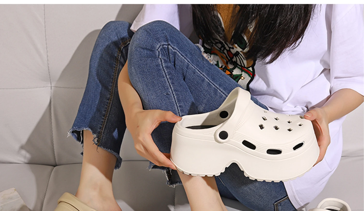 2025 nuevas lindas zapatillas de plataforma con lazo DIY para mujer, zapatos de jardín de verano, sandalias de calle de interior de suela gruesa para niñas, zuecos de moda