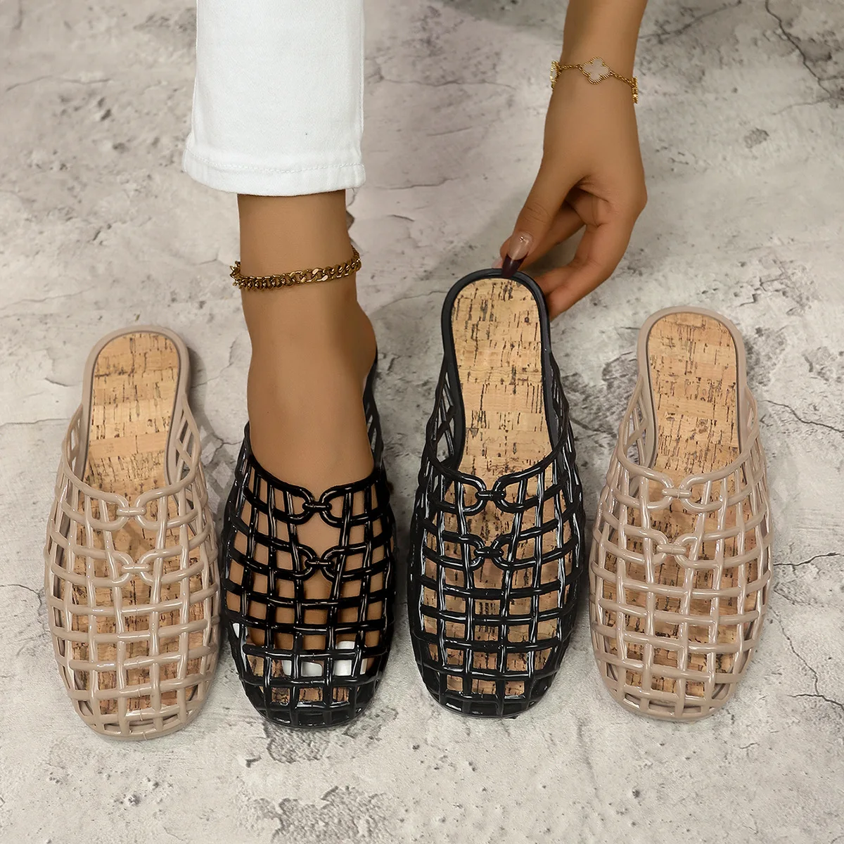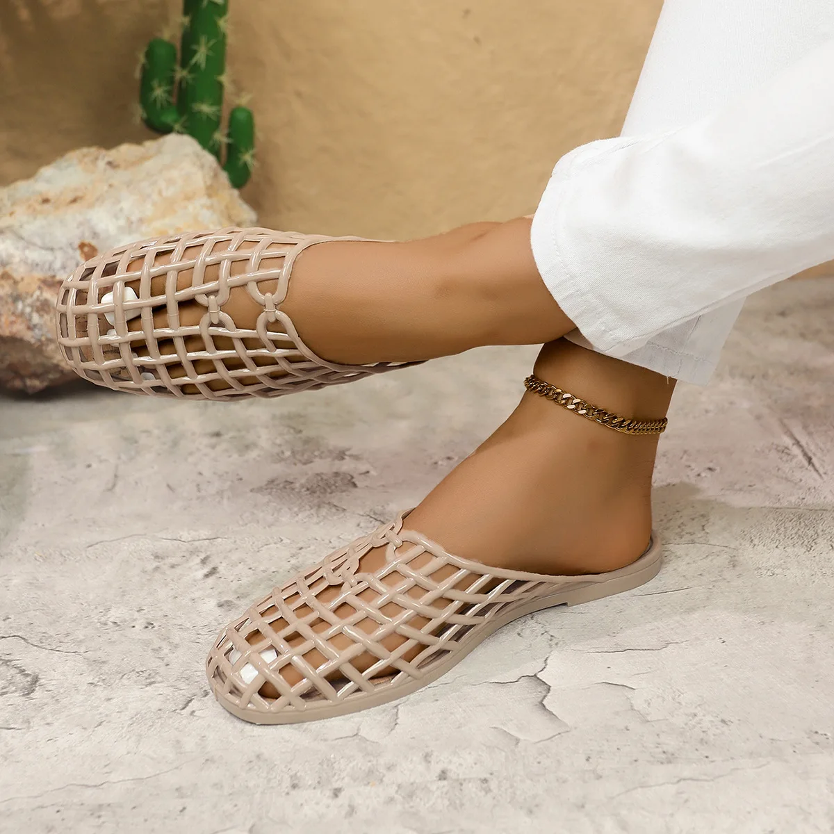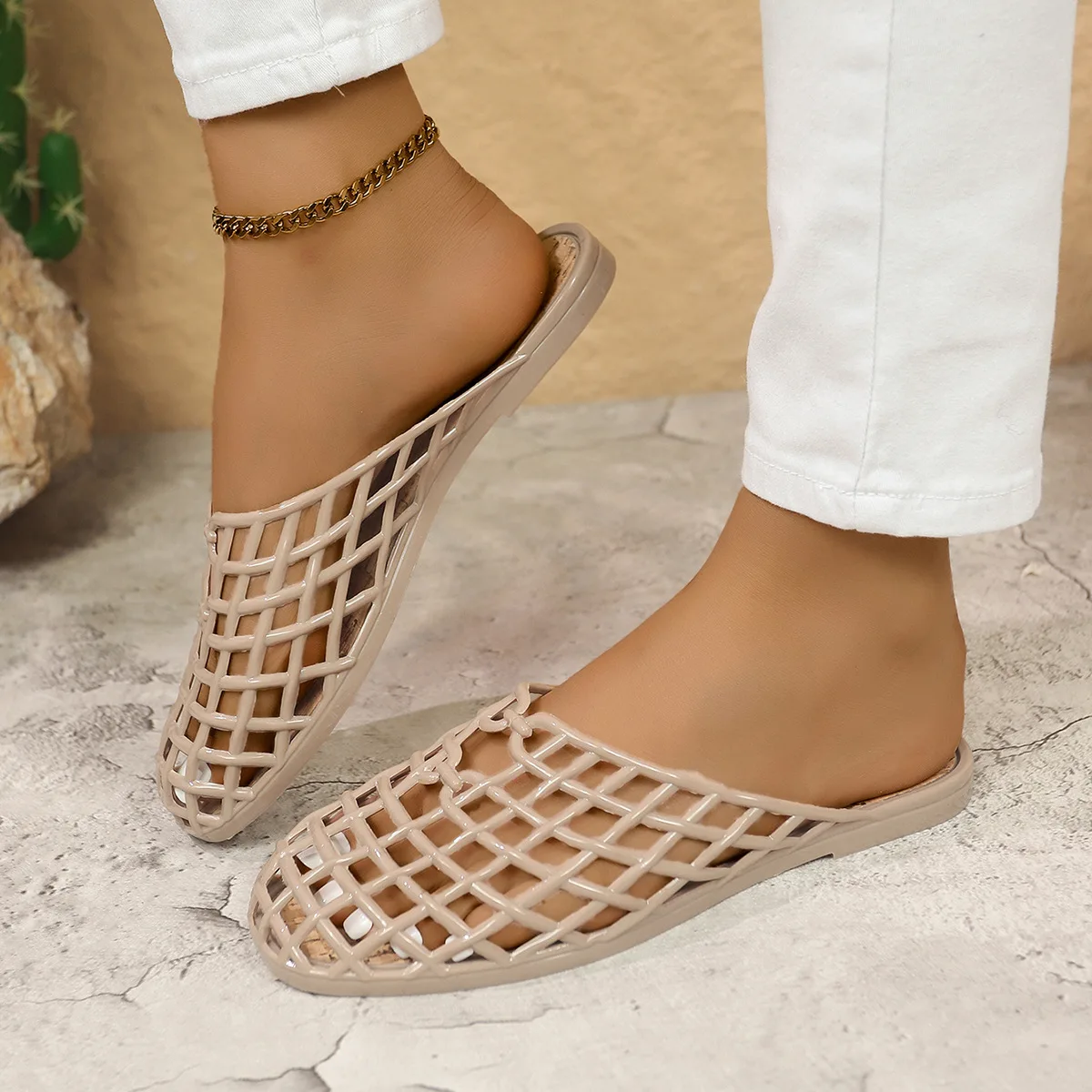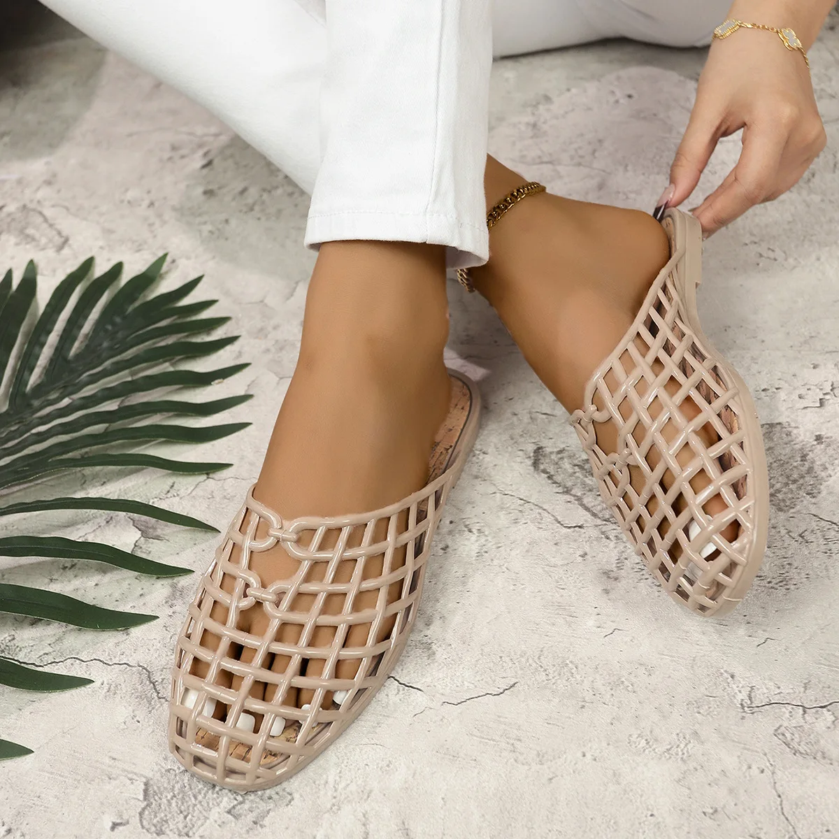 2025 nuevas zapatillas de moda para mujer, zapatos de plataforma de verano, sandalias sin cordones de PVC suave, chanclas transpirables recortadas para playa y calle para mujer