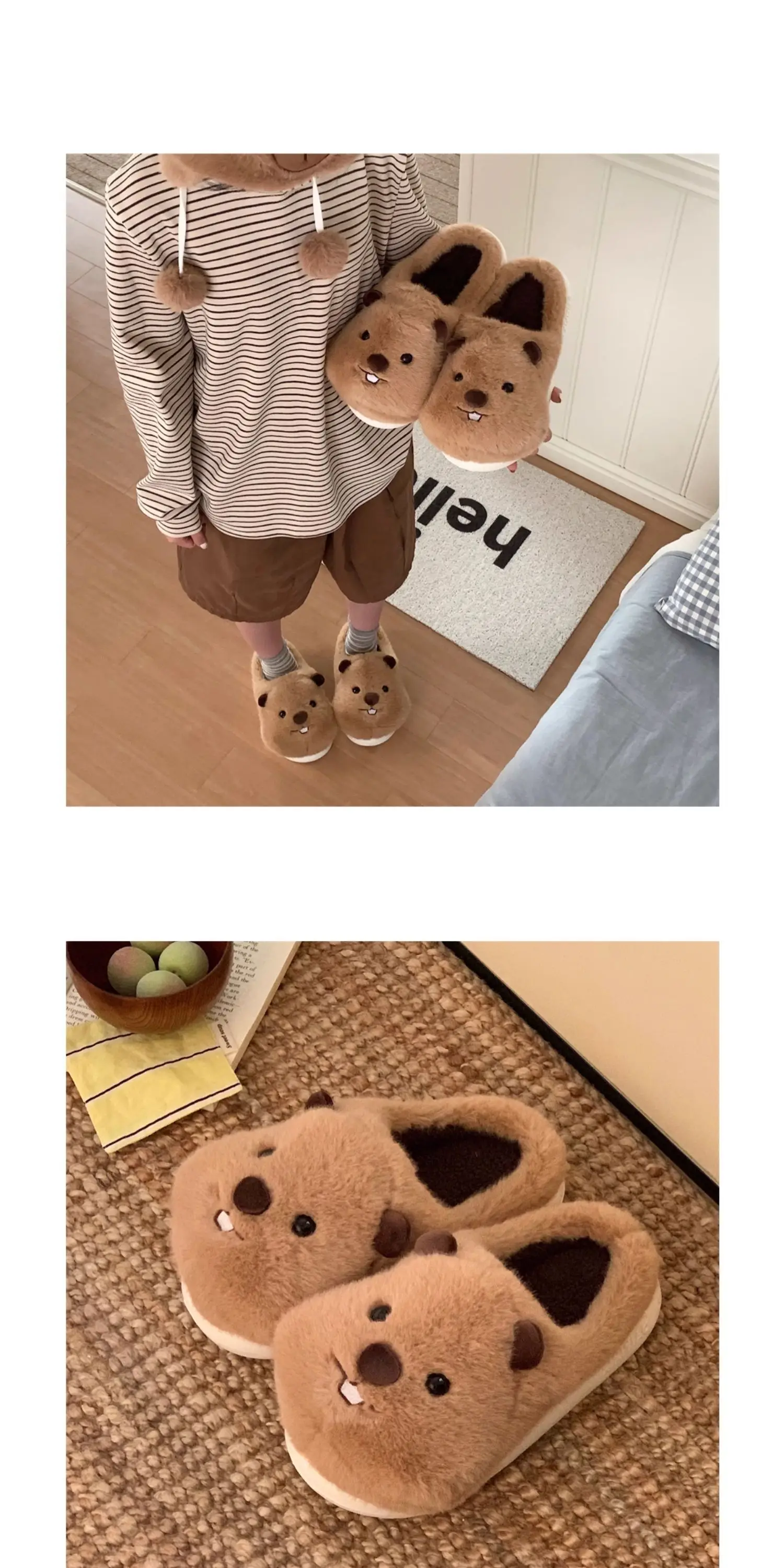 Comprar 2025 nuevas zapatillas mullidas de interior para mujeres y hombres, zapatos cálidos de invierno, zapatillas de algodón de estilo de dibujos animados bonitos de felpa suave para parejas, zapatillas de algodón para el suelo del hogar