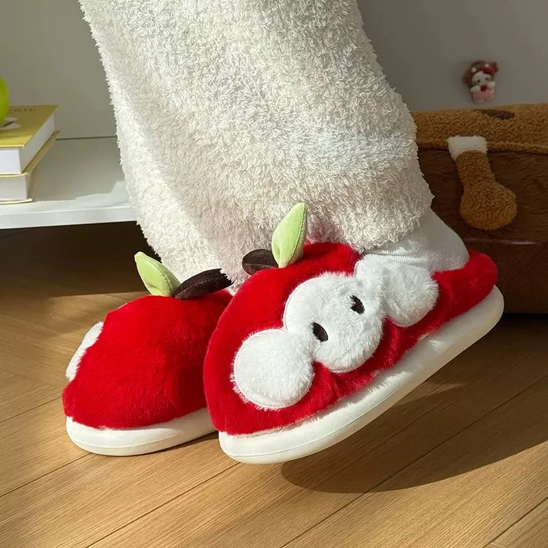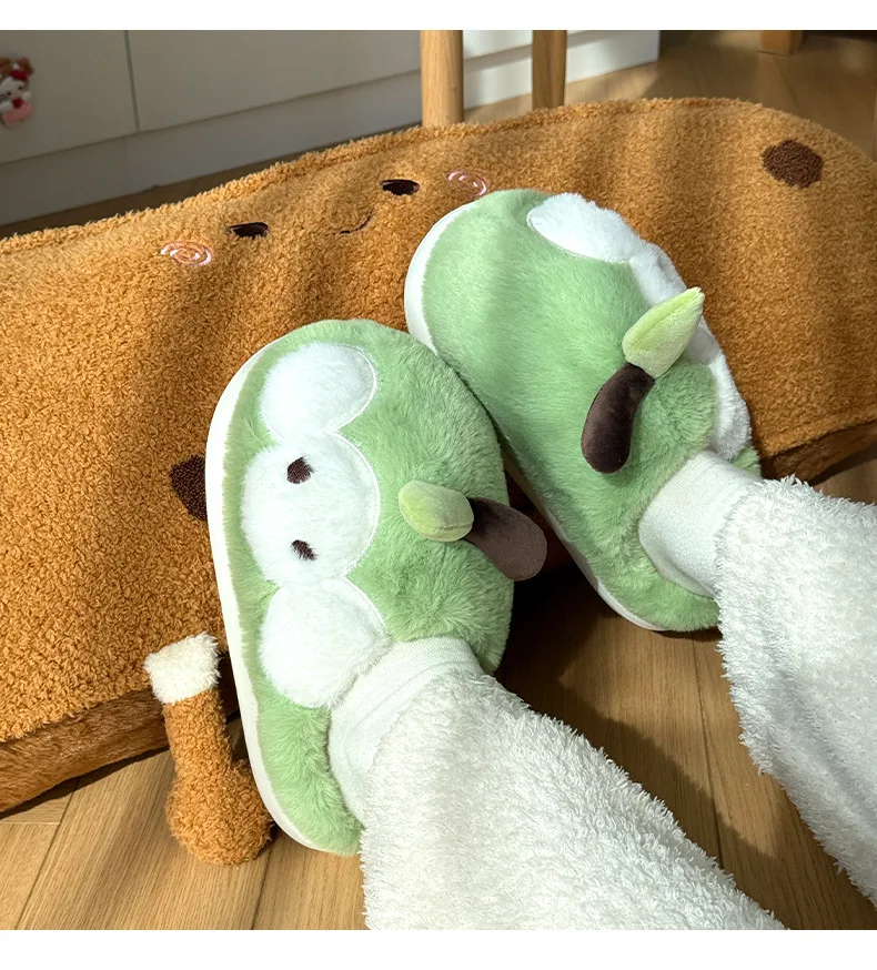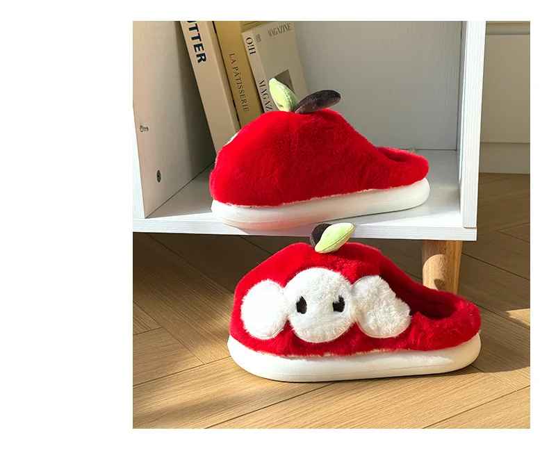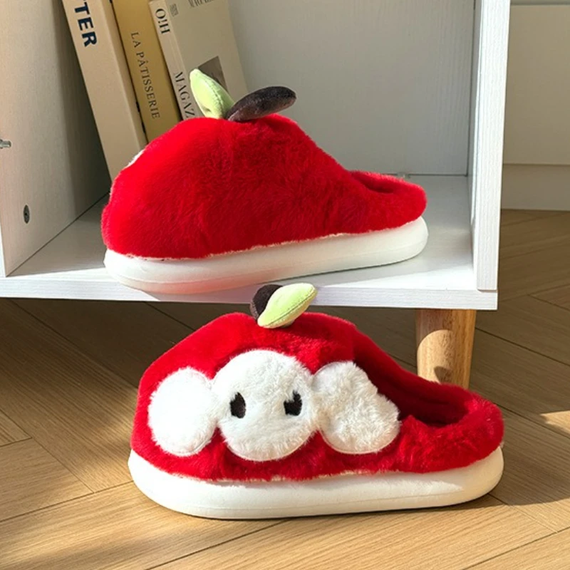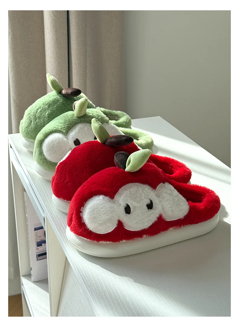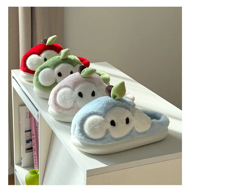 2025 nuevas zapatillas peludas de frutas de dibujos animados para mujer Otoño e Invierno uso interior del hogar zapatillas de felpa cálidas para parejas