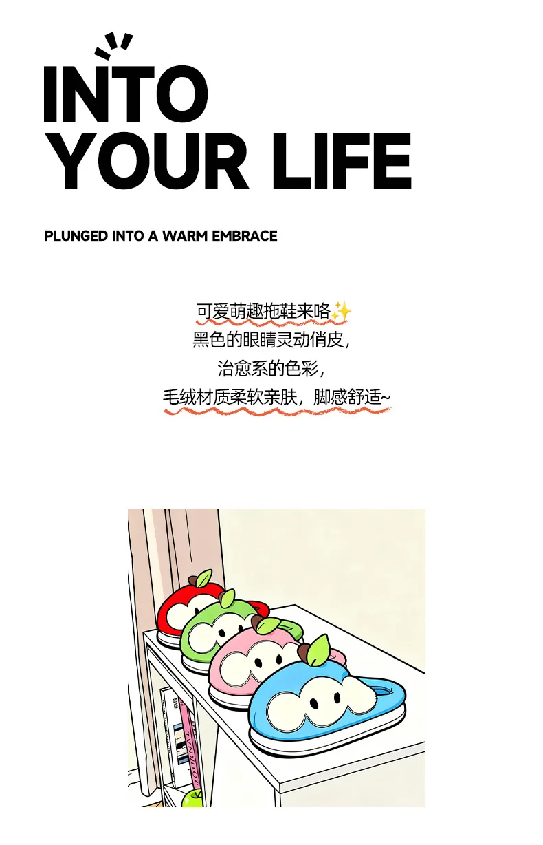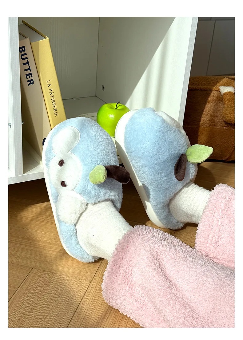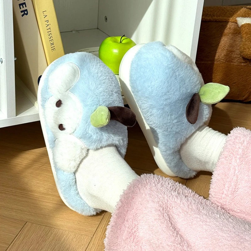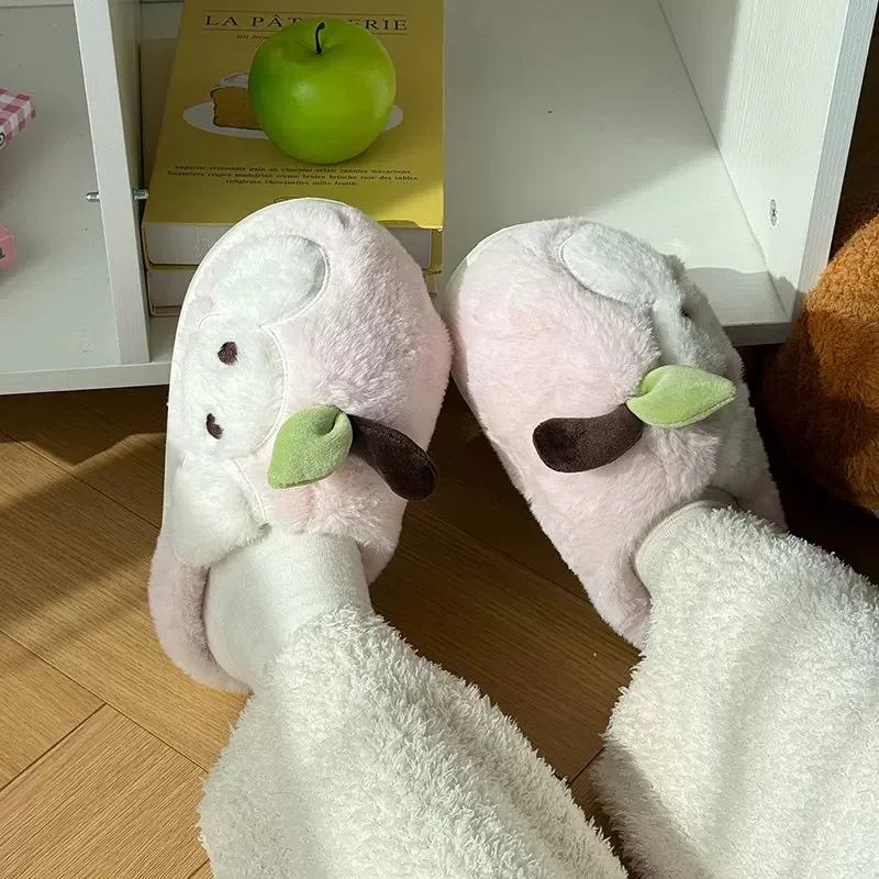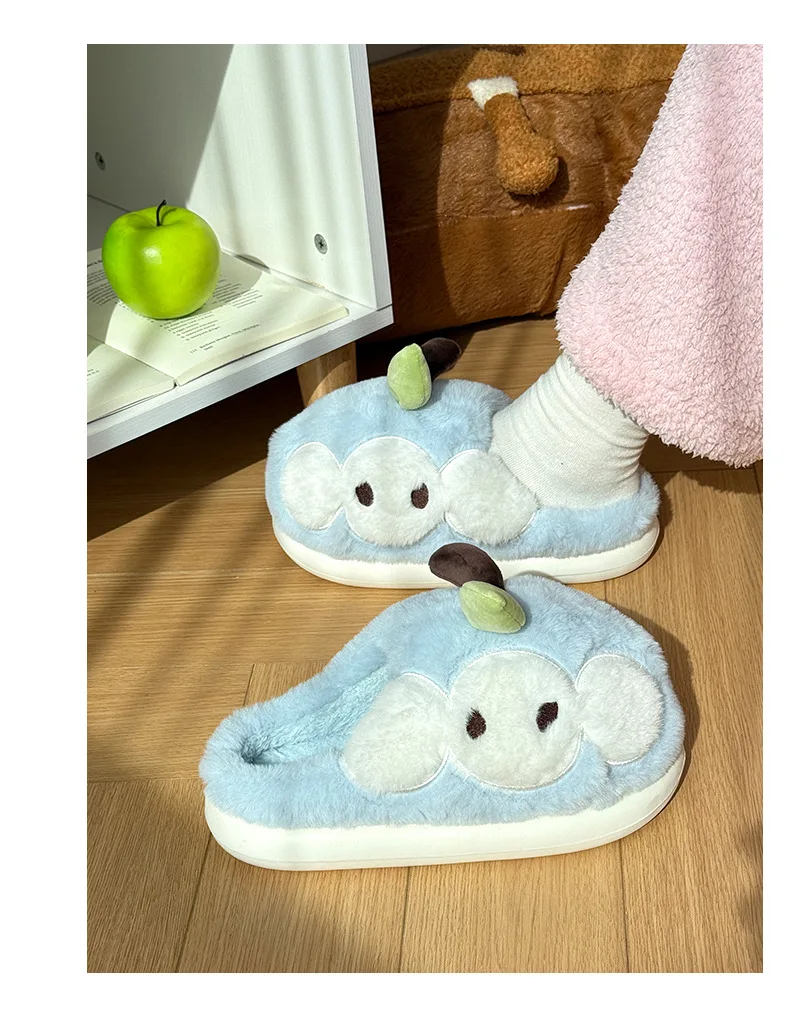 2025 nuevas zapatillas peludas de frutas de dibujos animados para mujer Otoño e Invierno uso interior del hogar zapatillas de felpa cálidas para parejas