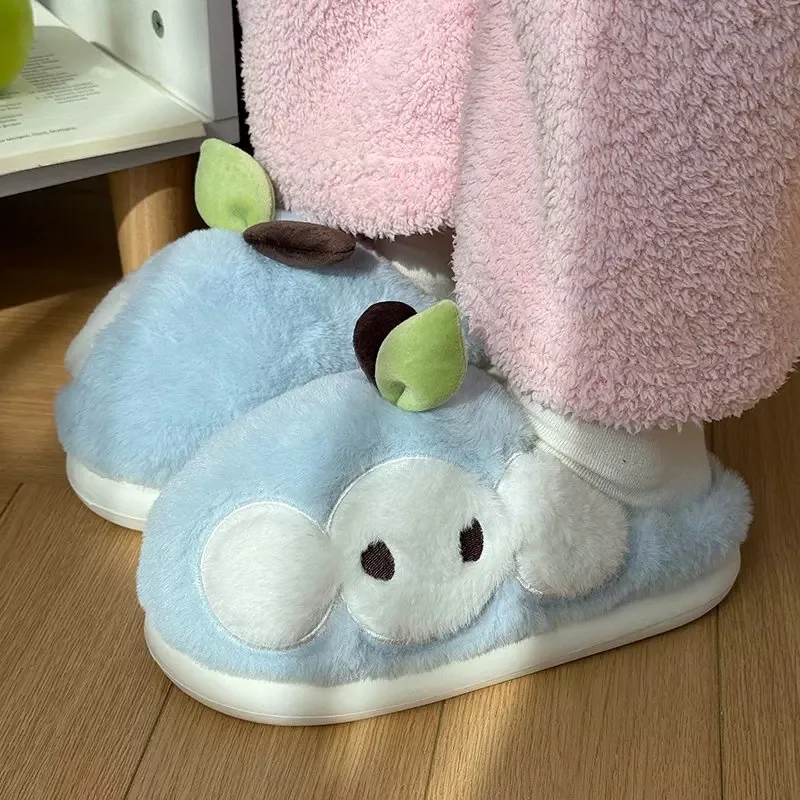 Comprar 2025 nuevas zapatillas peludas de frutas de dibujos animados para mujer Otoño e Invierno uso interior del hogar zapatillas de felpa cálidas para parejas