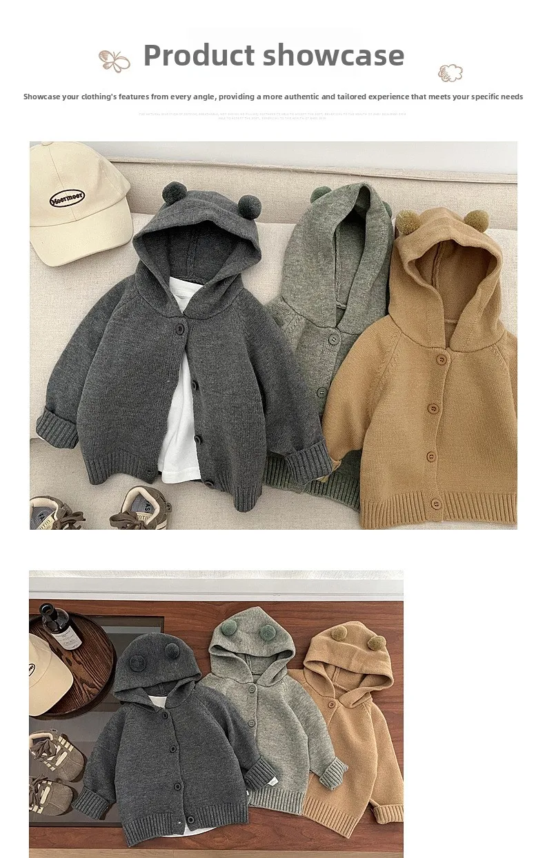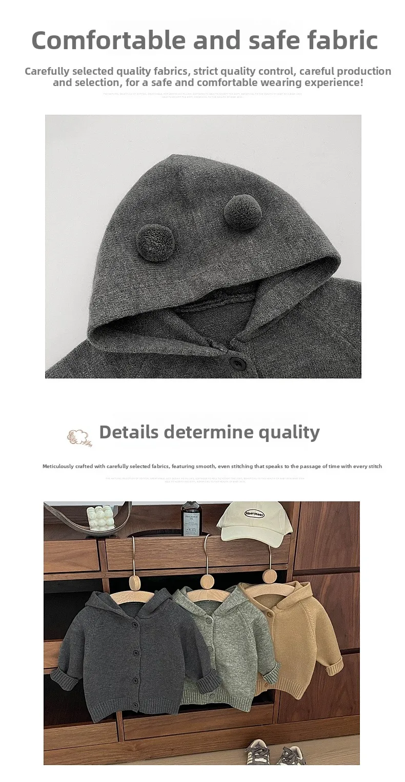 2025 ¡Nuevo cárdigan de punto coreano para niños de otoño: suéter unisex con capucha, suave, cálido y bonito con botones para niños pequeños y bebés!