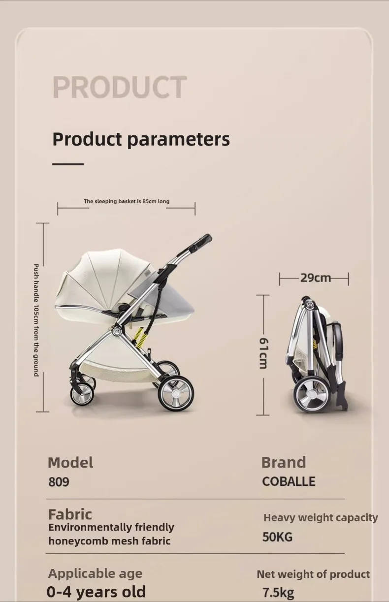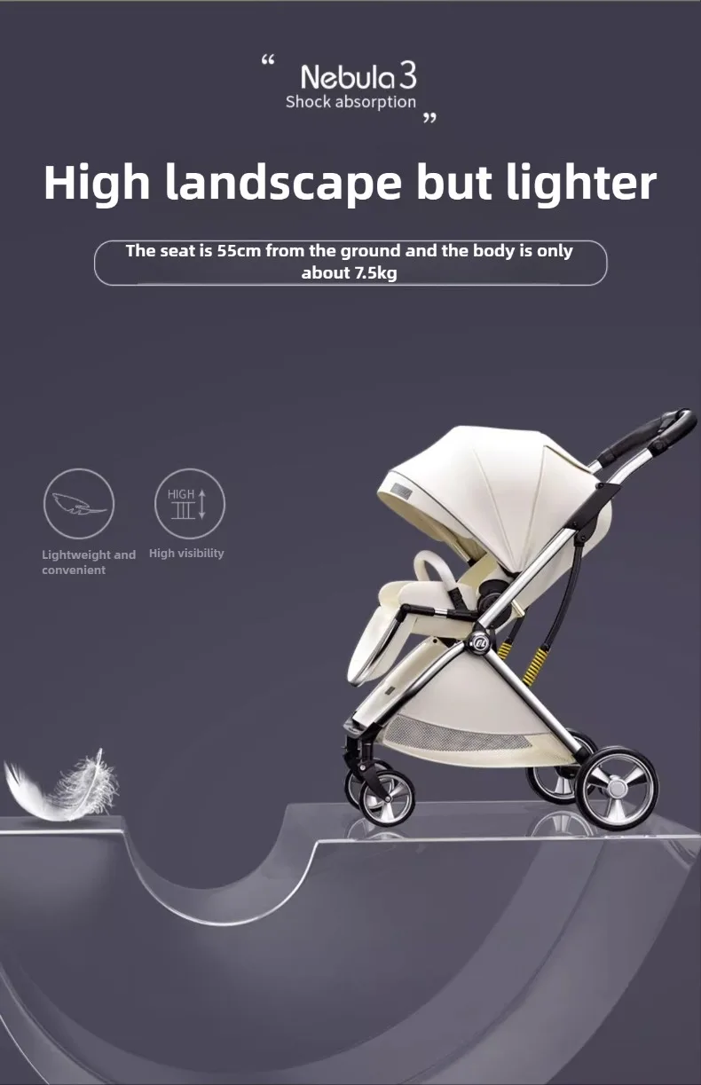 2025 nuevo cochecito de bebé ligero, cochecito de bebé de alta vista, plegable, asiento bidireccional, con mosquitera, cochecito de bebé absorbente de golpes