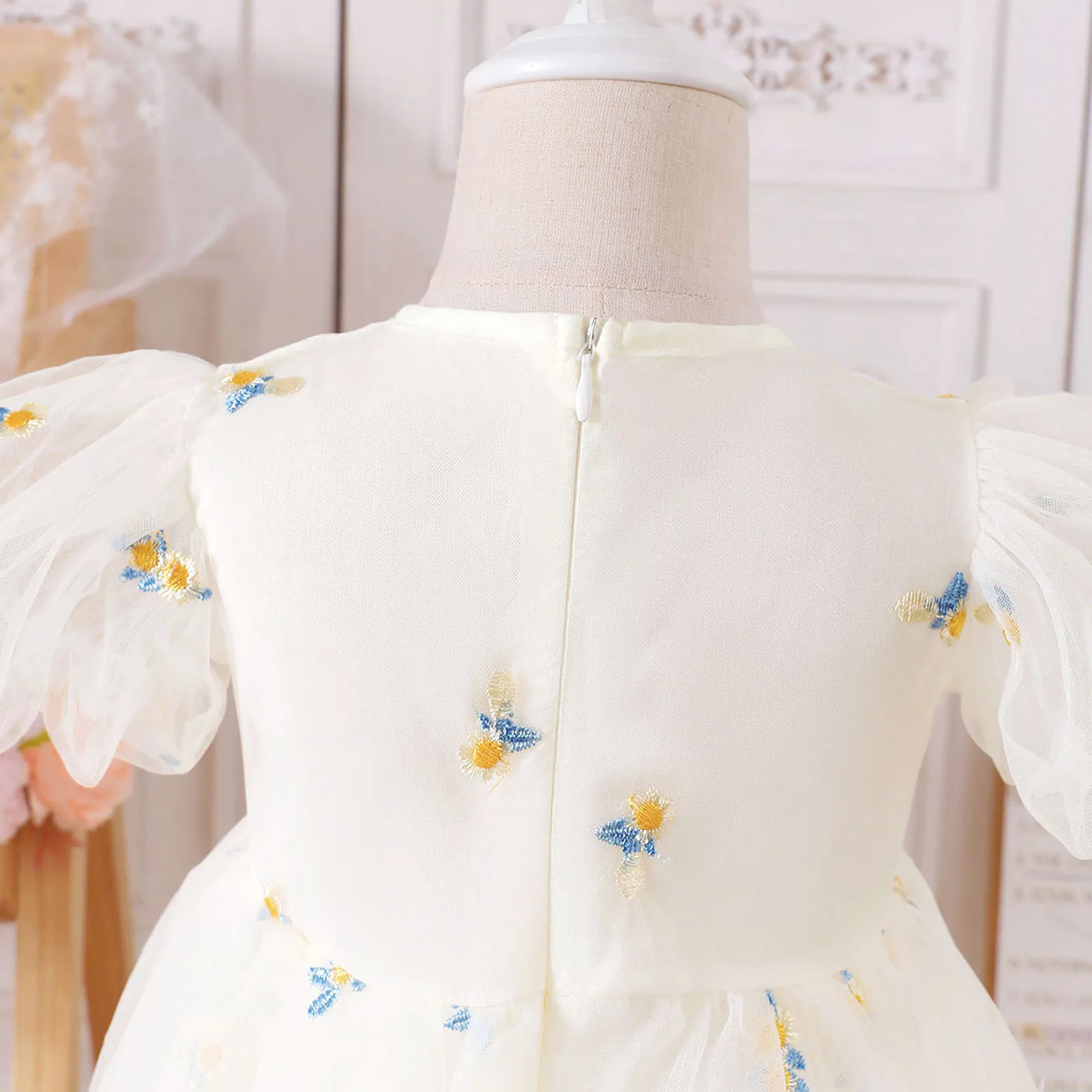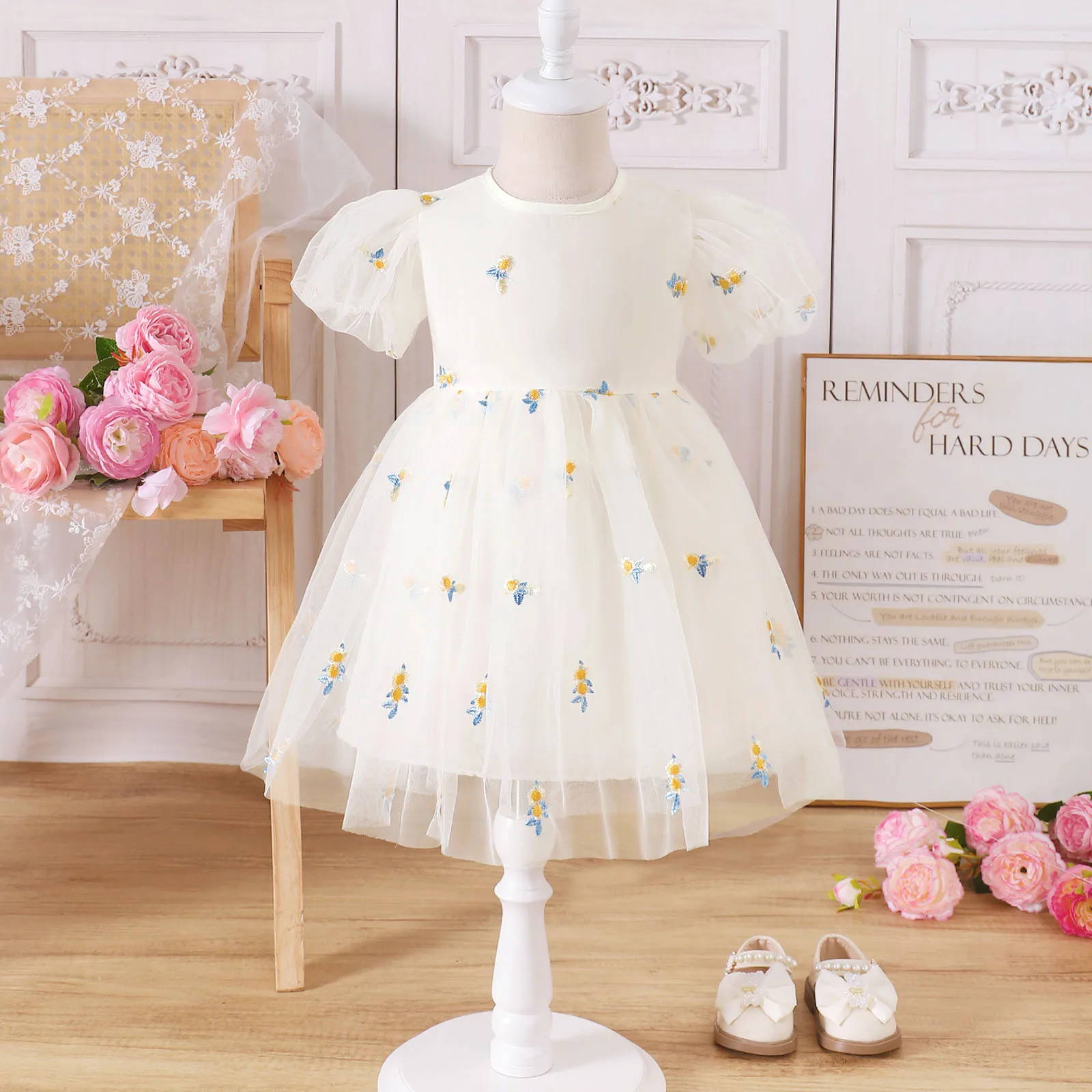 Comprar 2025 nuevo verano dulce Puff manga bordado flor vestidos de princesa niño vestido de fiesta de cumpleaños vestido de baile para niña de 1-6 años