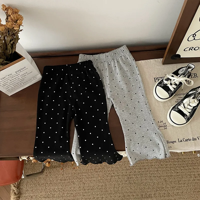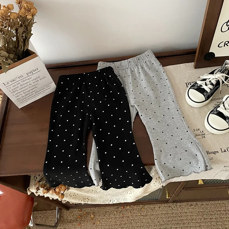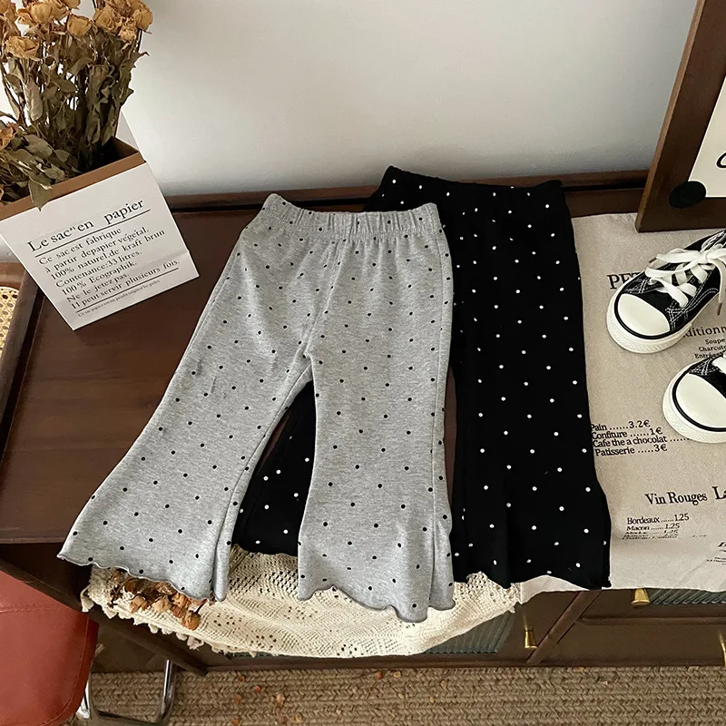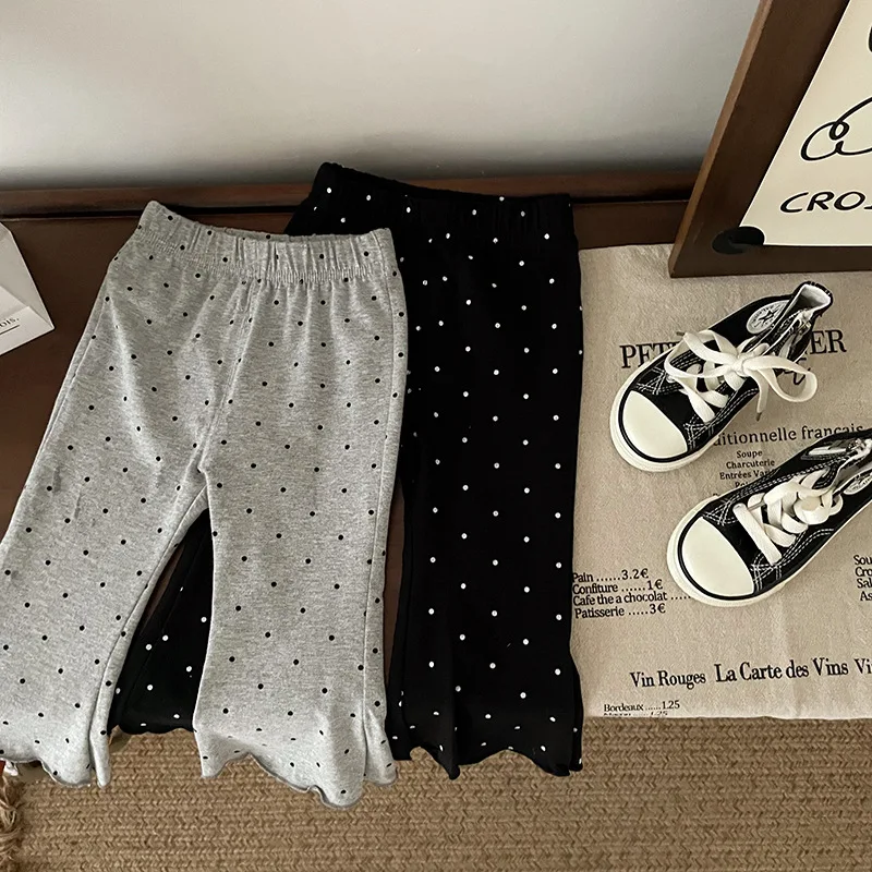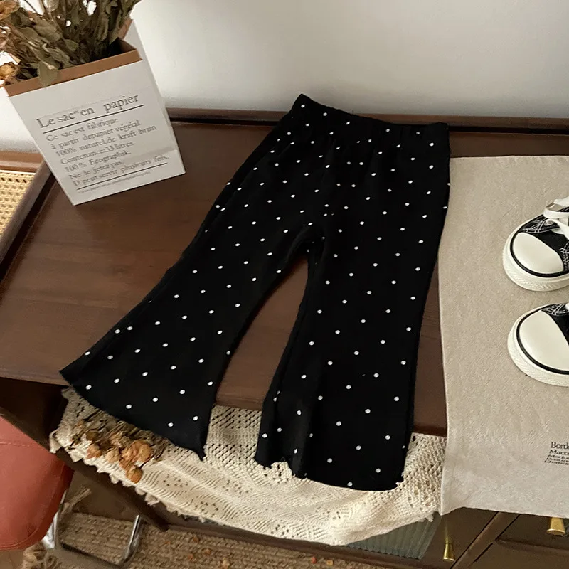¡2025 nuevos pantalones acampanados de lunares para niños de primavera-otoño: cintura elástica, mallas informales versátiles y respetuosas con la piel para niños y niñas!
