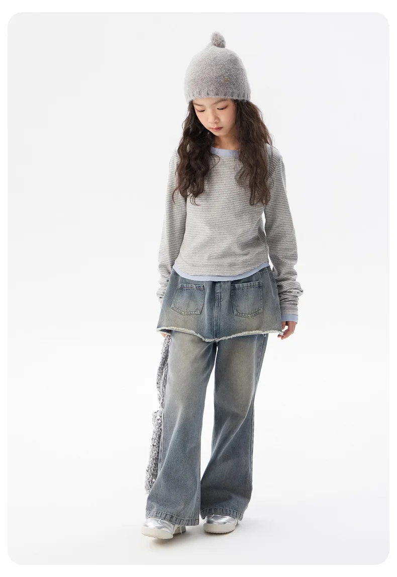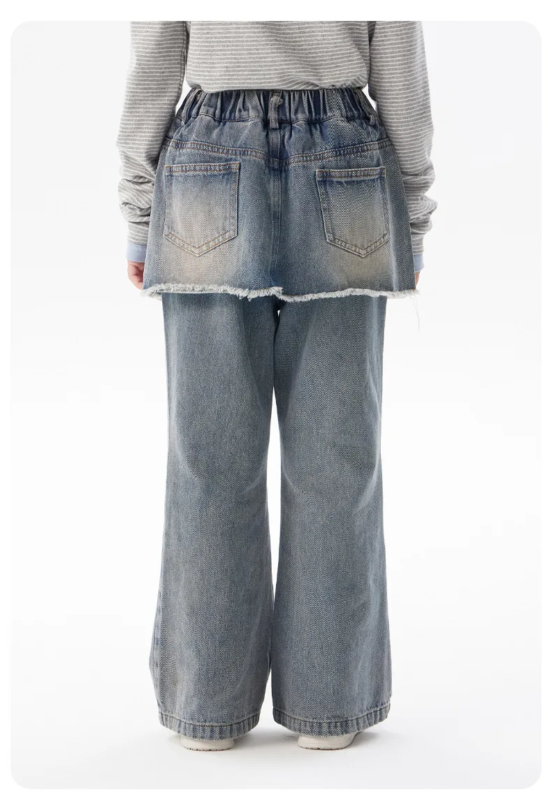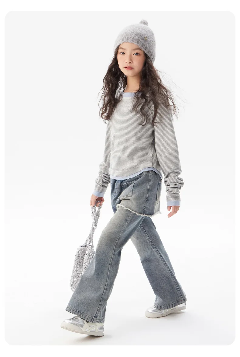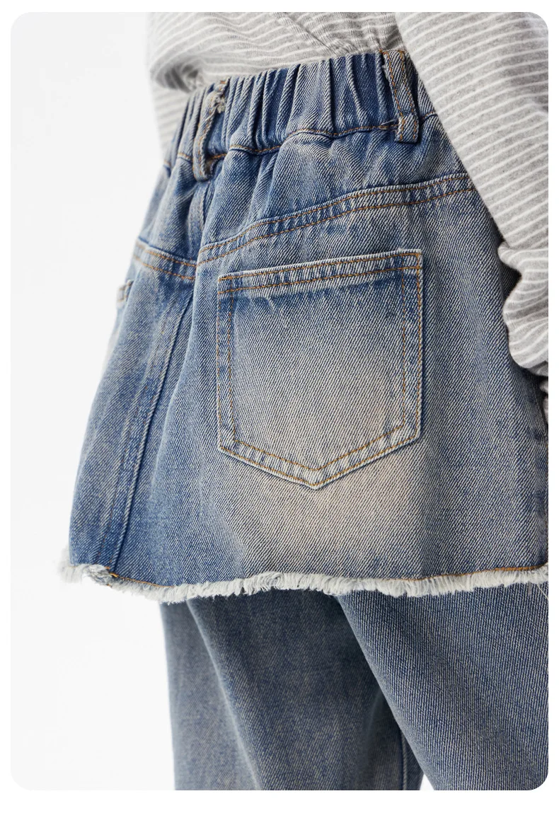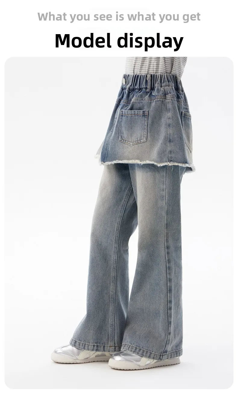 ¡2025 nuevos pantalones vaqueros coreanos falsos de dos piezas de otoño para niñas: pantalones casuales elegantes, suaves, duraderos y de moda para niñas grandes y pequeñas!