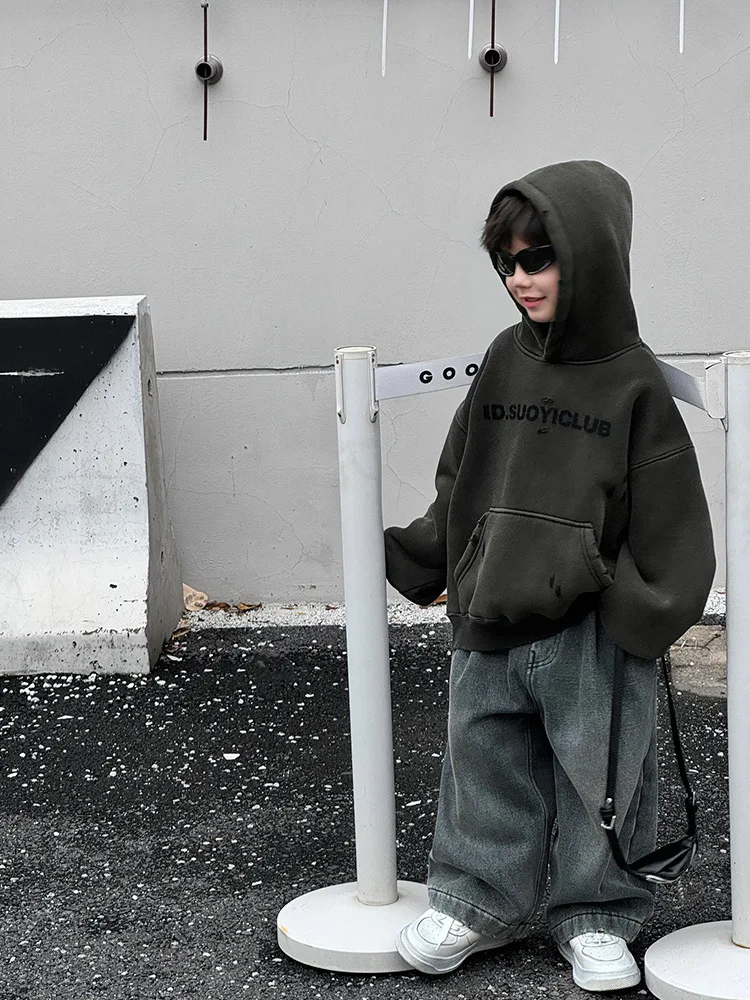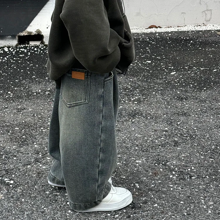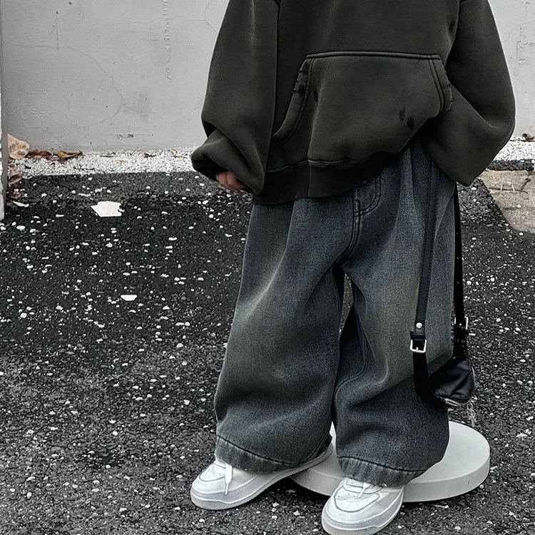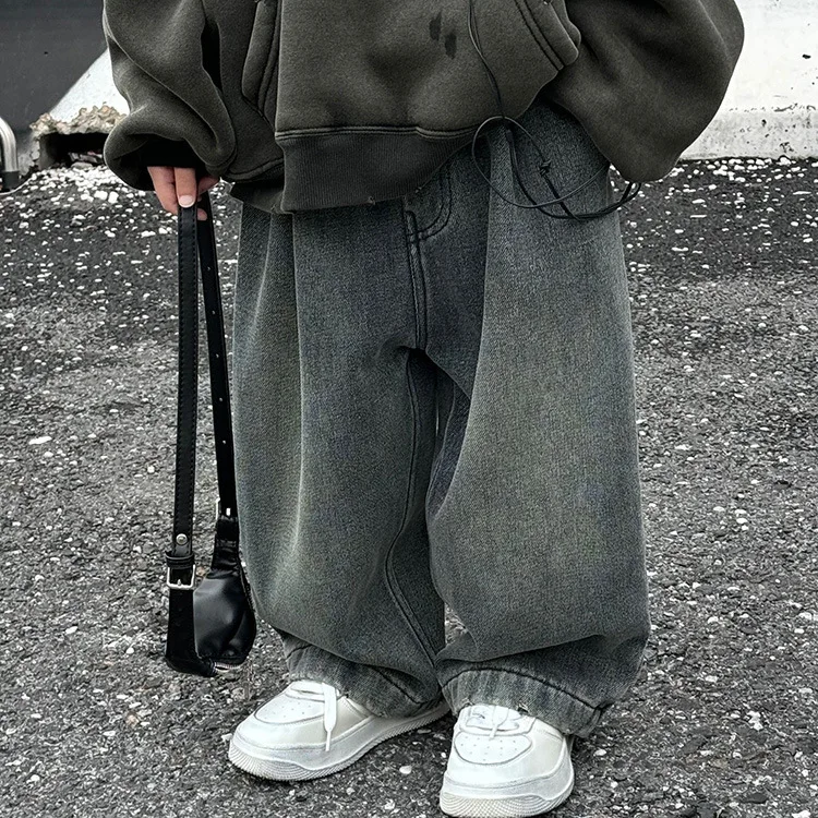 ¡2025 nuevos pantalones vaqueros coreanos de invierno con forro polar para niños: estilo retro vintage, cálidos y gruesos, suaves y agradables para la piel, de moda y versátiles!