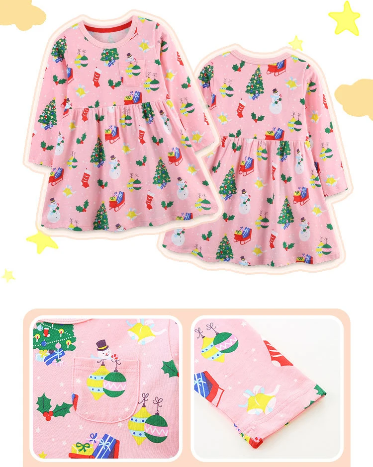 Comprar 2025 nuevos vestidos estampados de Navidad princesa niñas 100% ropa de algodón niños vestido acampanado otoño primavera