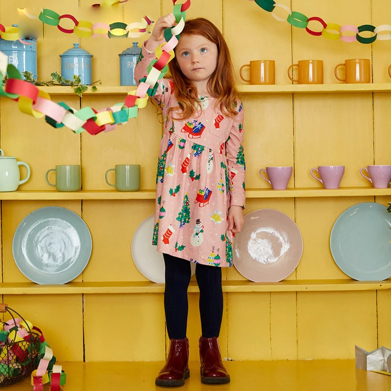Comprar 2025 nuevos vestidos estampados de Navidad princesa niñas 100% ropa de algodón niños vestido acampanado otoño primavera