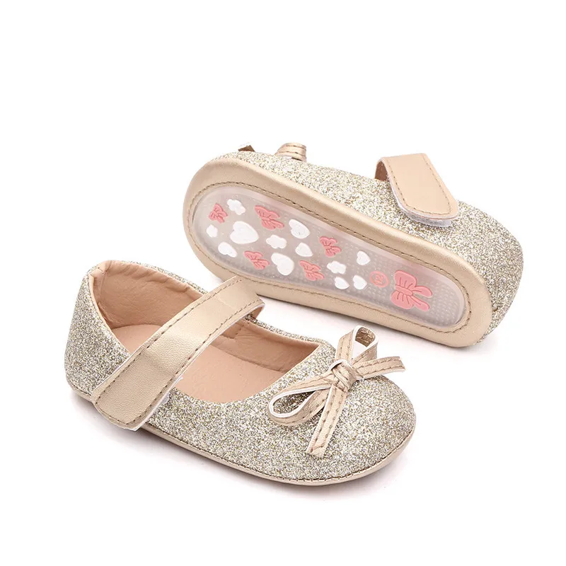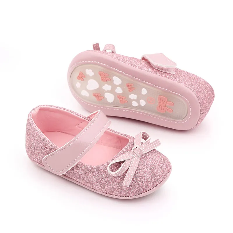 Nuevos zapatos de primavera y verano para bebés, zapatos ostentosos a la moda para primeros pasos, antideslizantes, con lazo encantador, zapatos de princesa para niñas recién nacidas