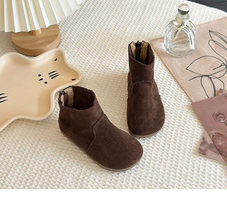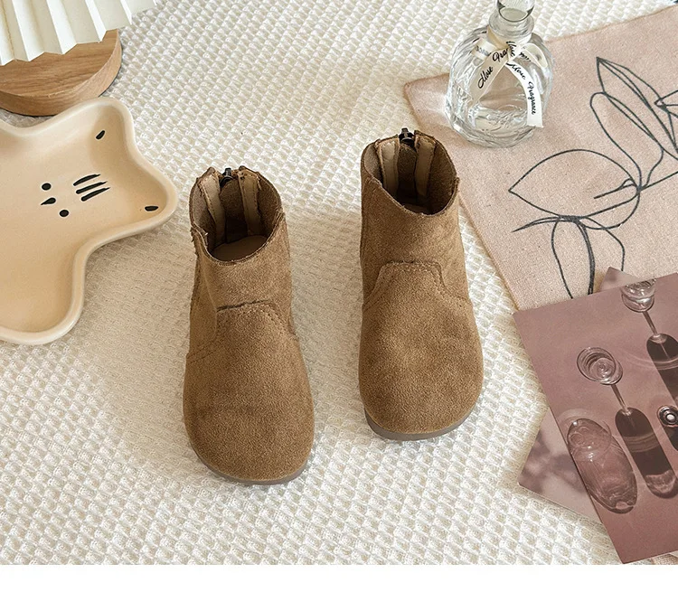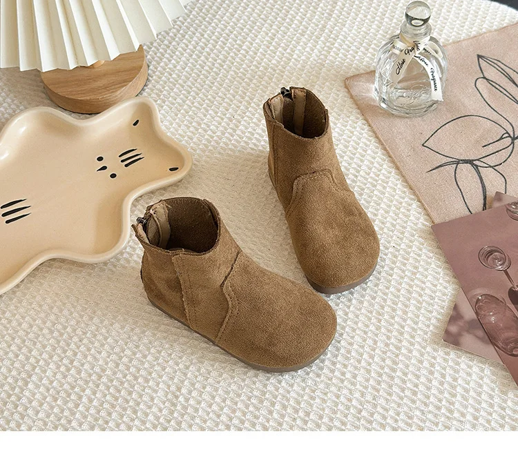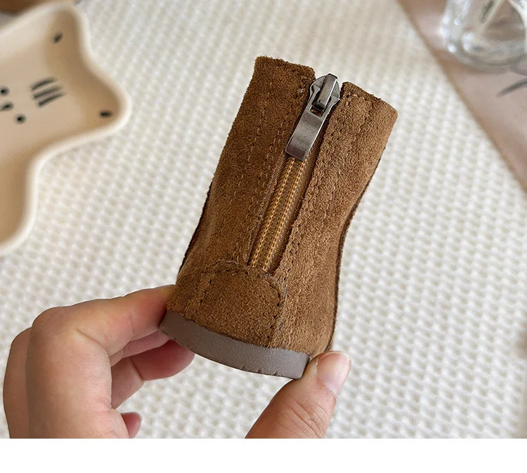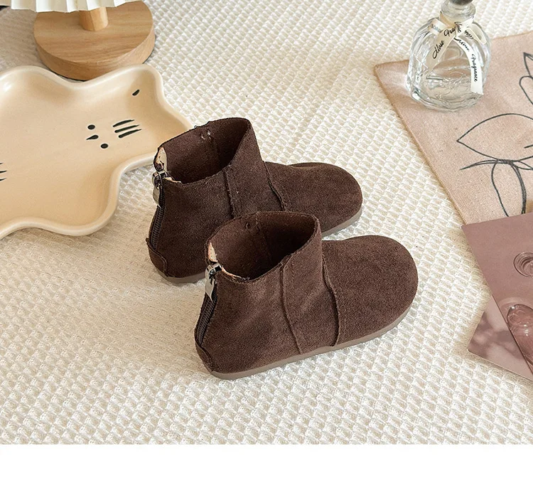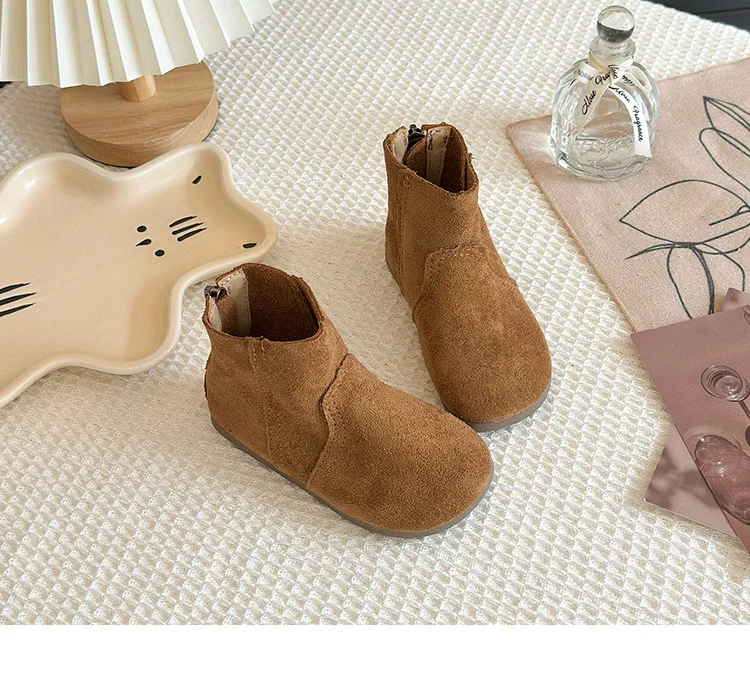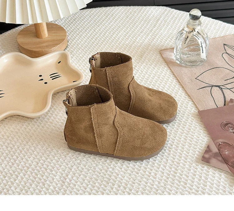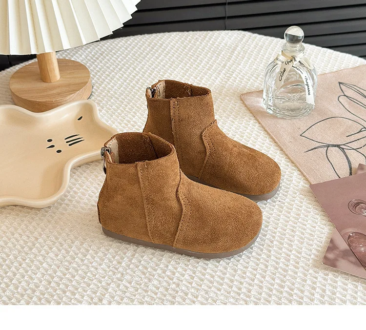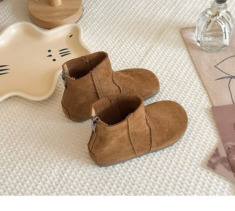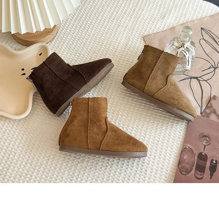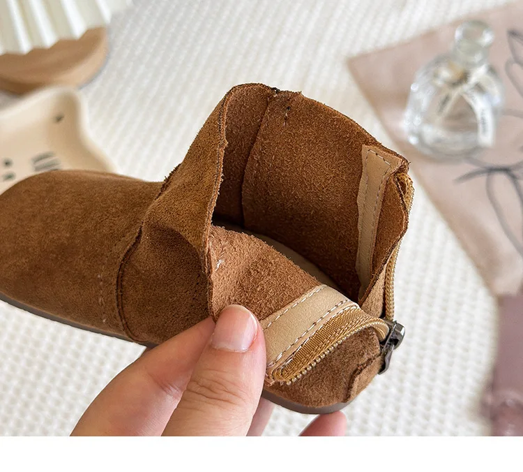 2025 Otoño Invierno botas para bebés y niñas zapatos casuales de gamuza Oxford para niños zapatos infantiles antideslizantes para exteriores botines de felpa para niños