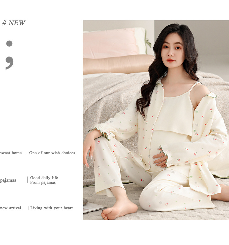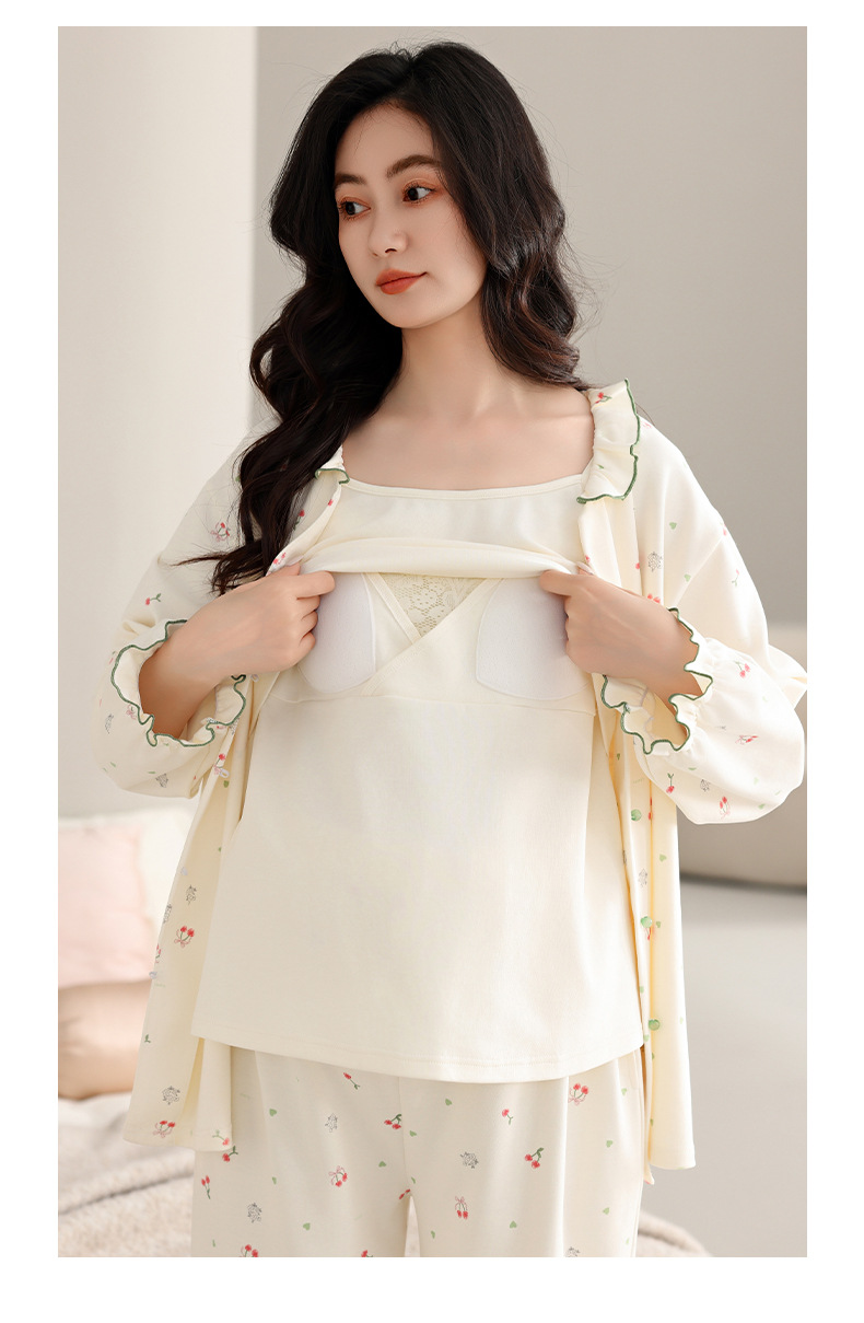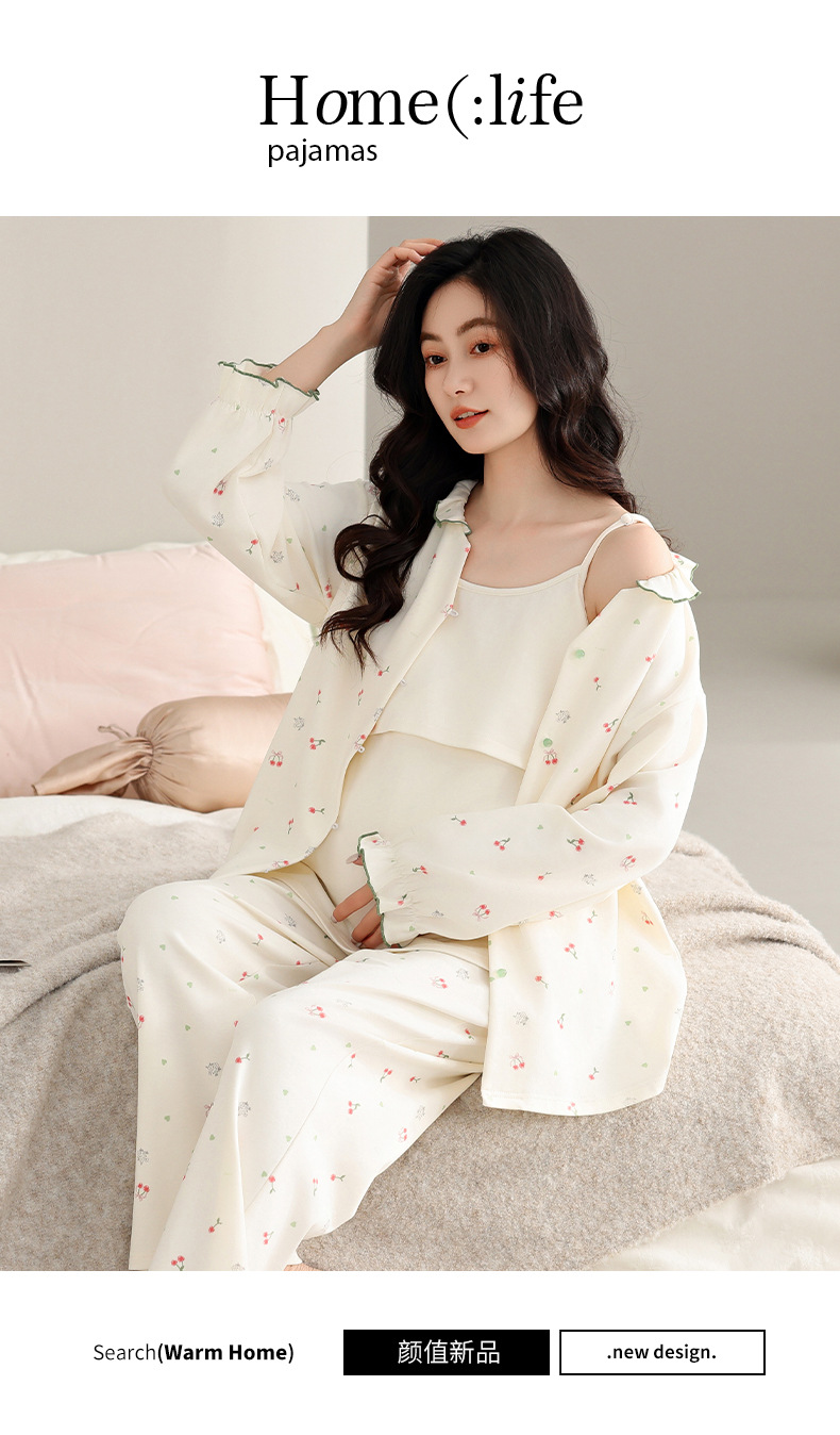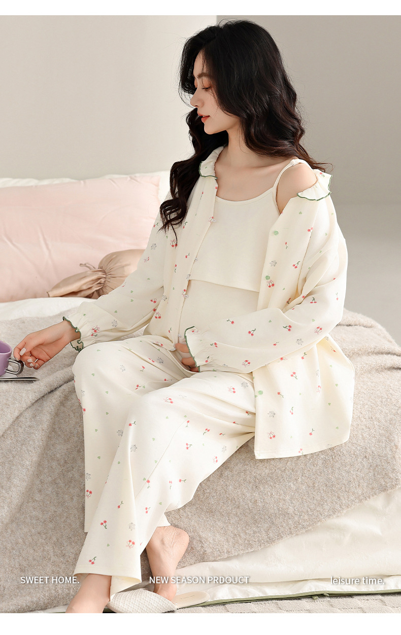 2025 Otoño Invierno pijamas de lactancia algodón coreano Sexy 3 unids/set ropa de dormir de maternidad posparto lactancia embarazo ropa de dormir