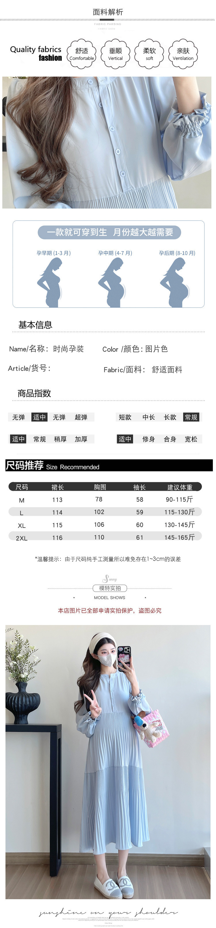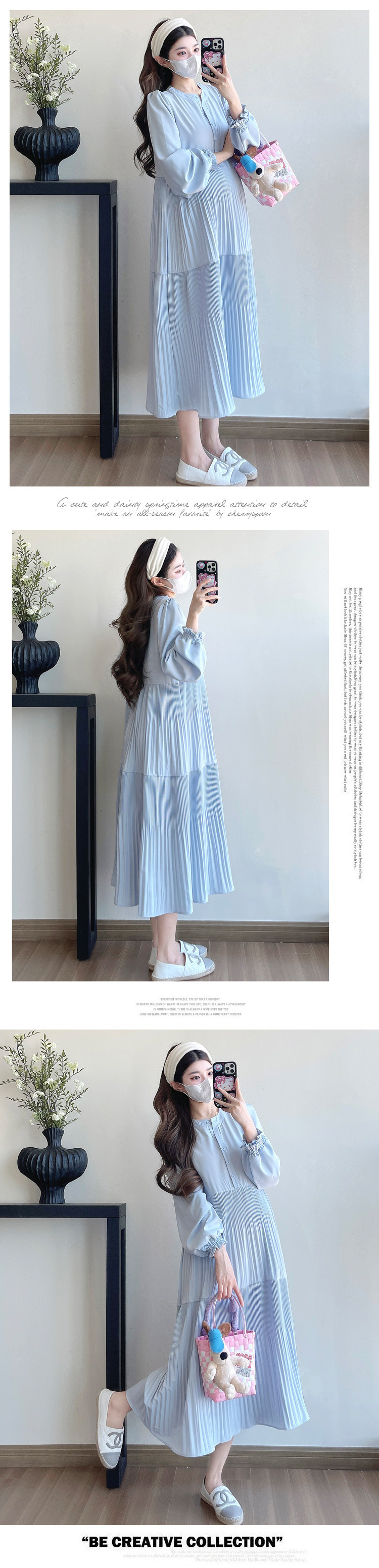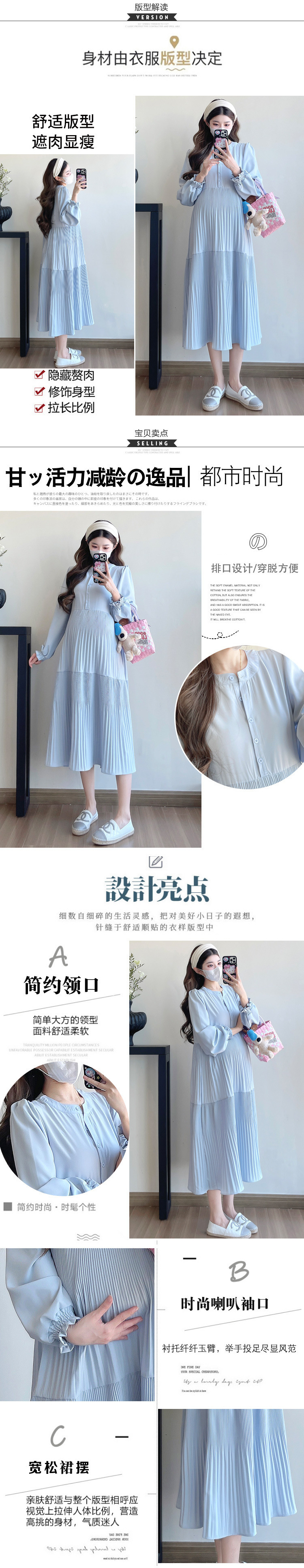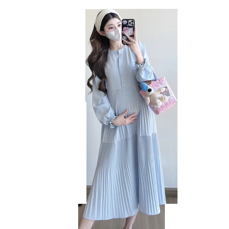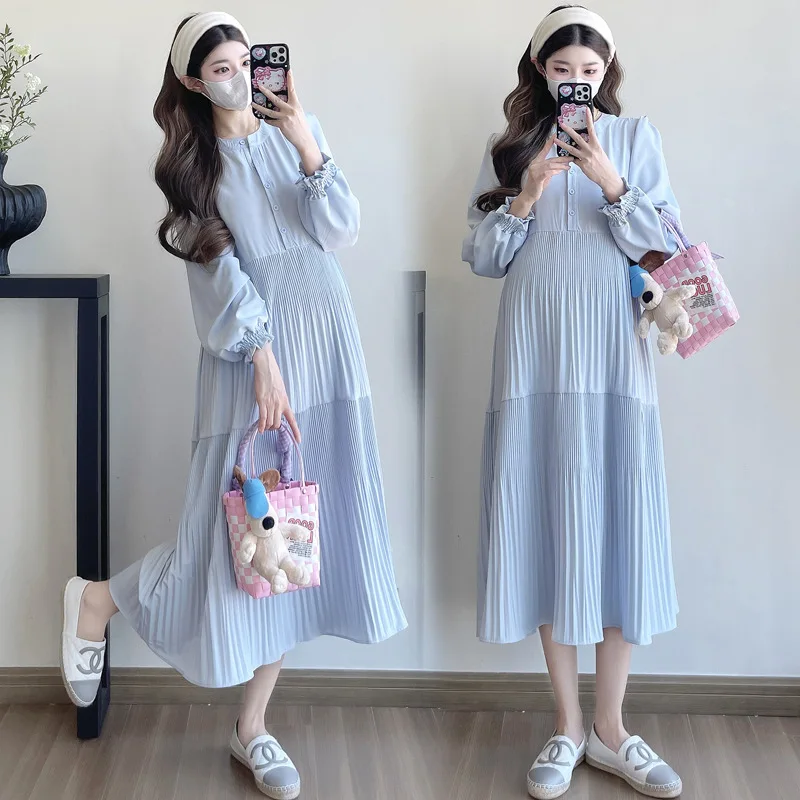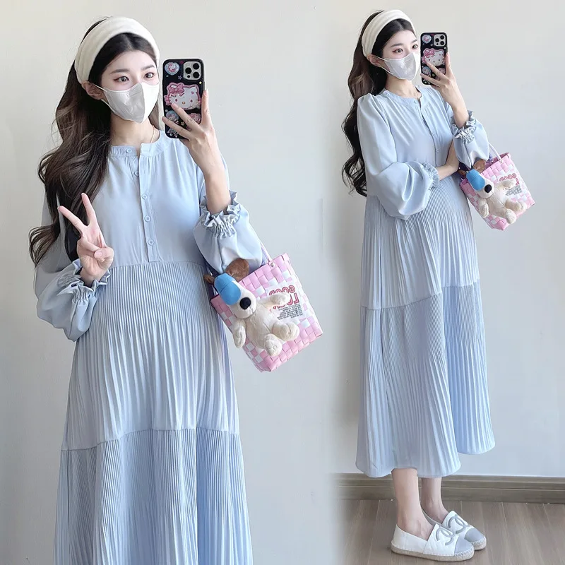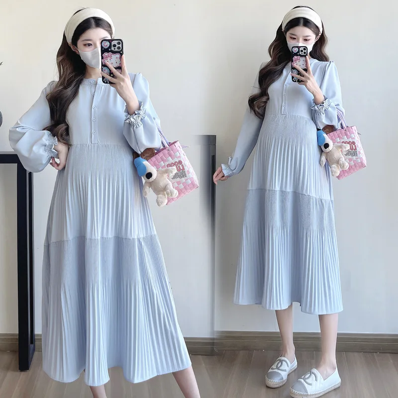 Comprar 2025 otoño moda coreana estilo callejero francés vestido largo de maternidad cuello en V ropa suelta para mujeres embarazadas embarazo Casual