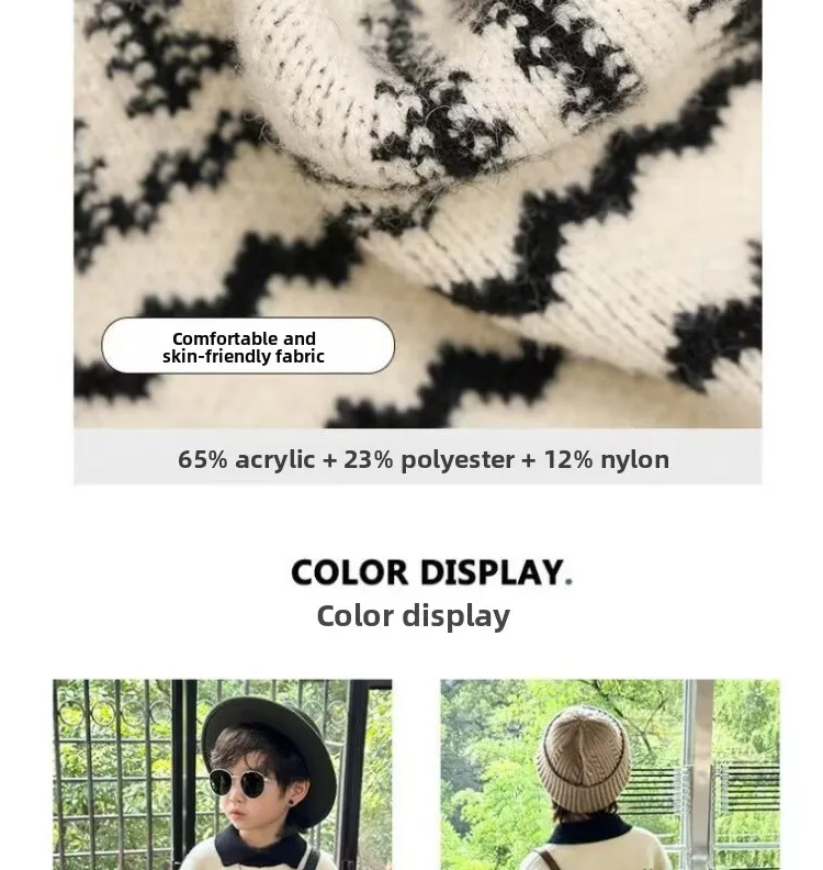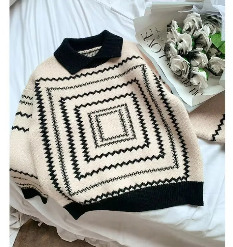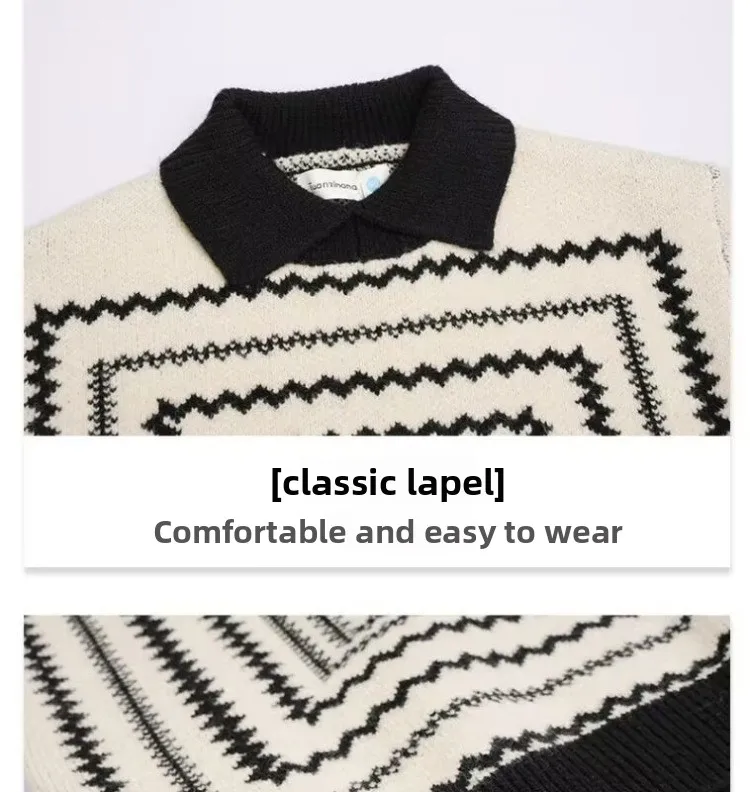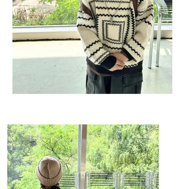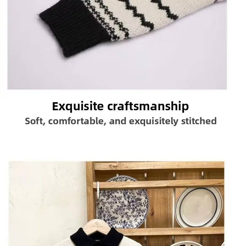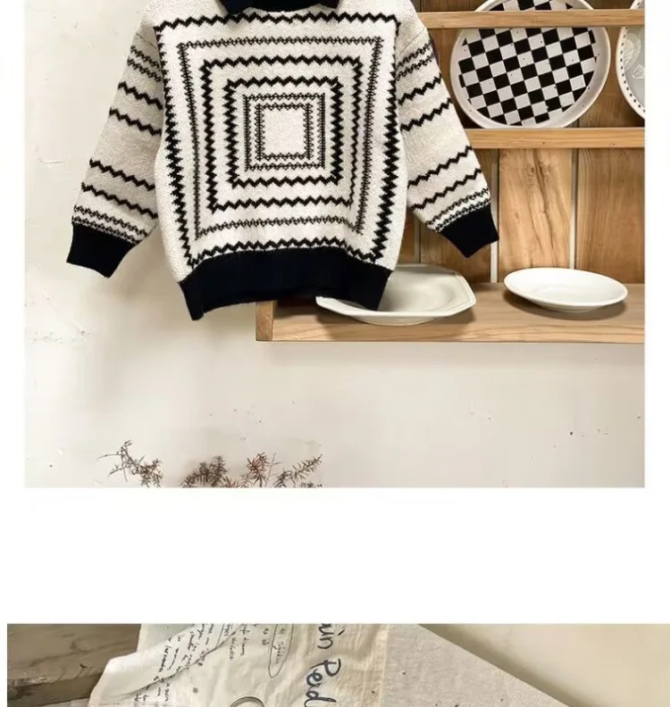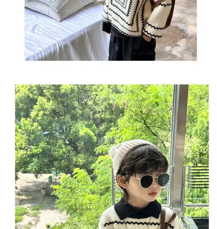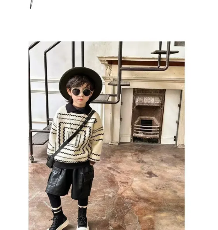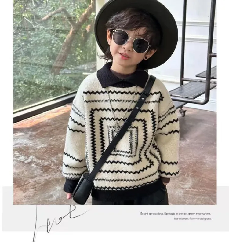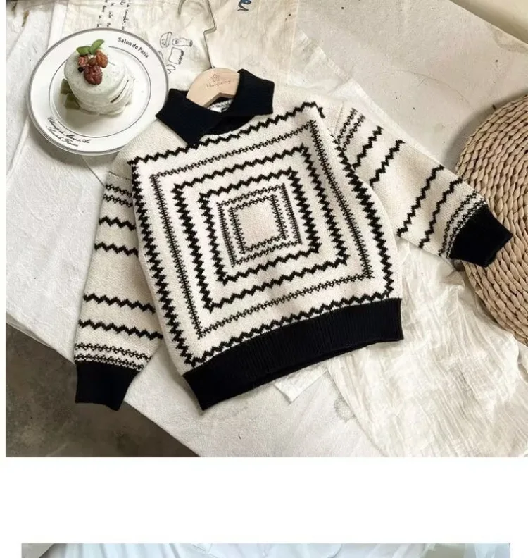 2025 otoño nuevo suéter de estilo coreano para niños: polo retro suelto de manga larga, top con cuello de punto de moda para niños.