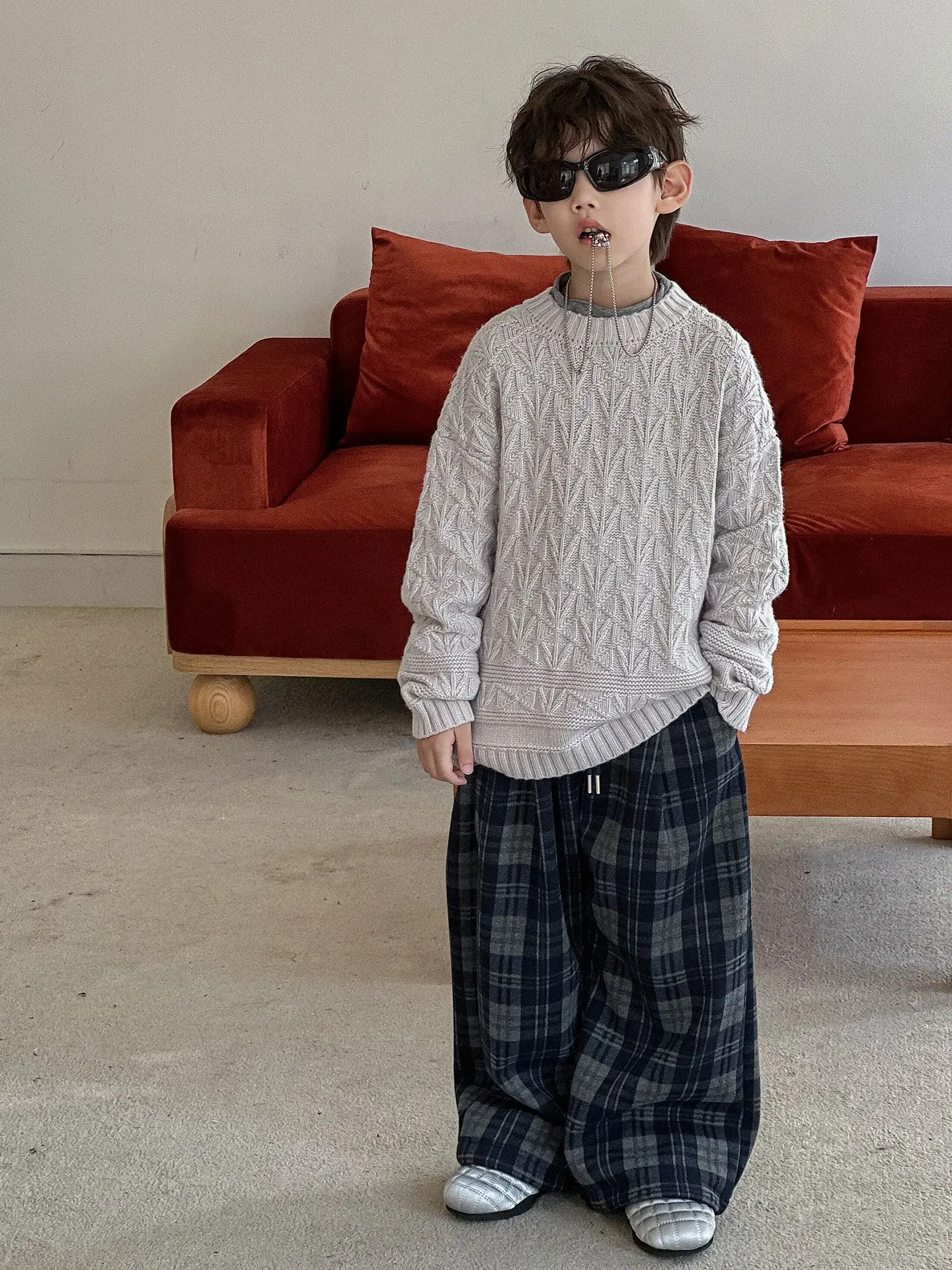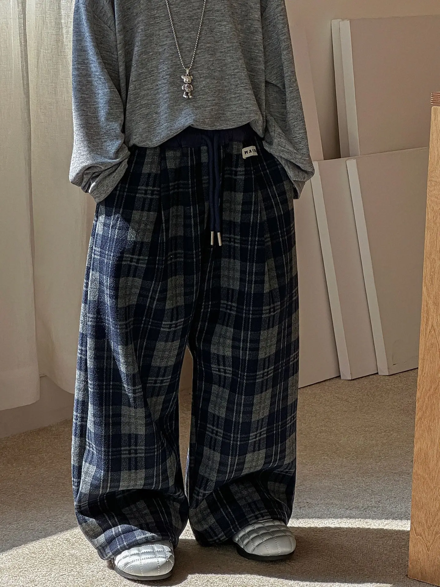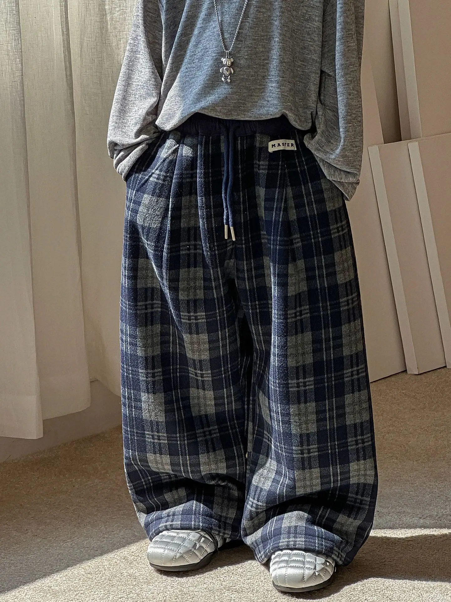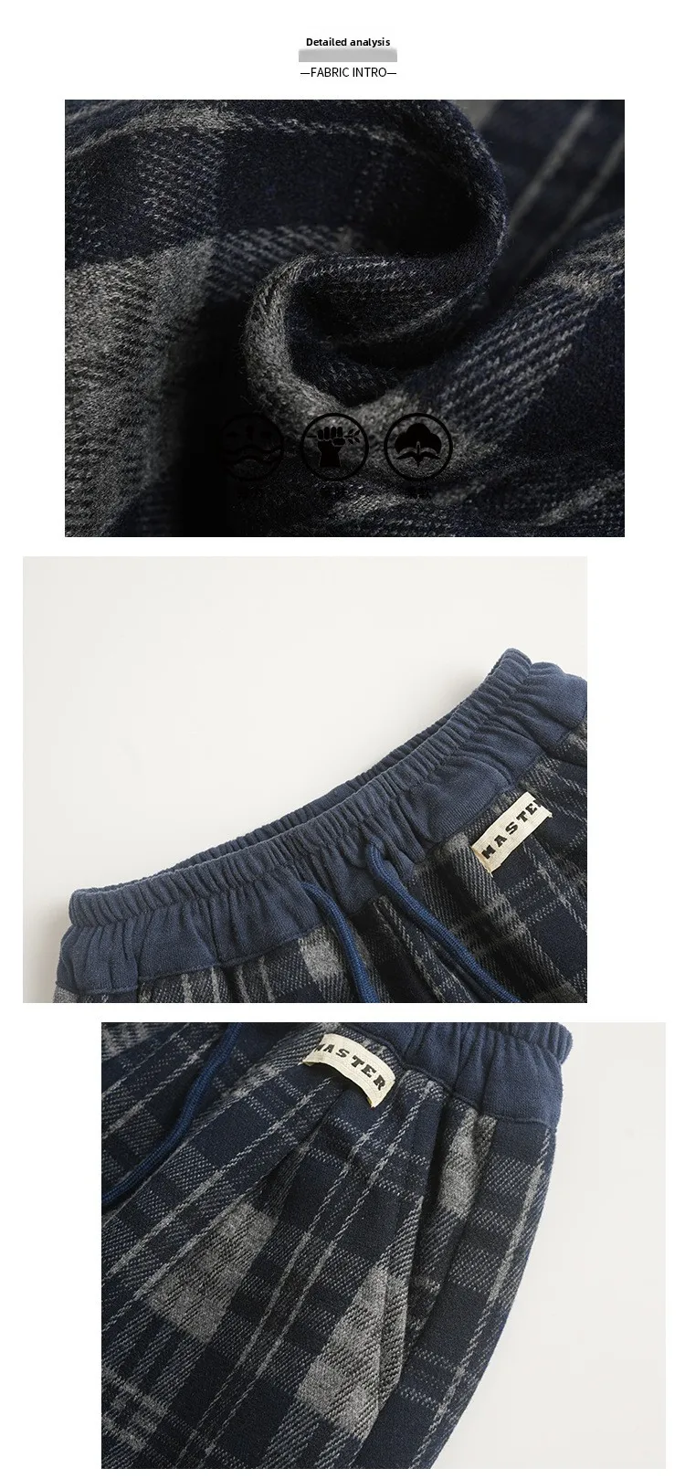2025 Pantalones a cuadros de estilo coreano para niños: pantalones sueltos con forro polar de invierno, pantalones para niños de moda retro y agradables para la piel