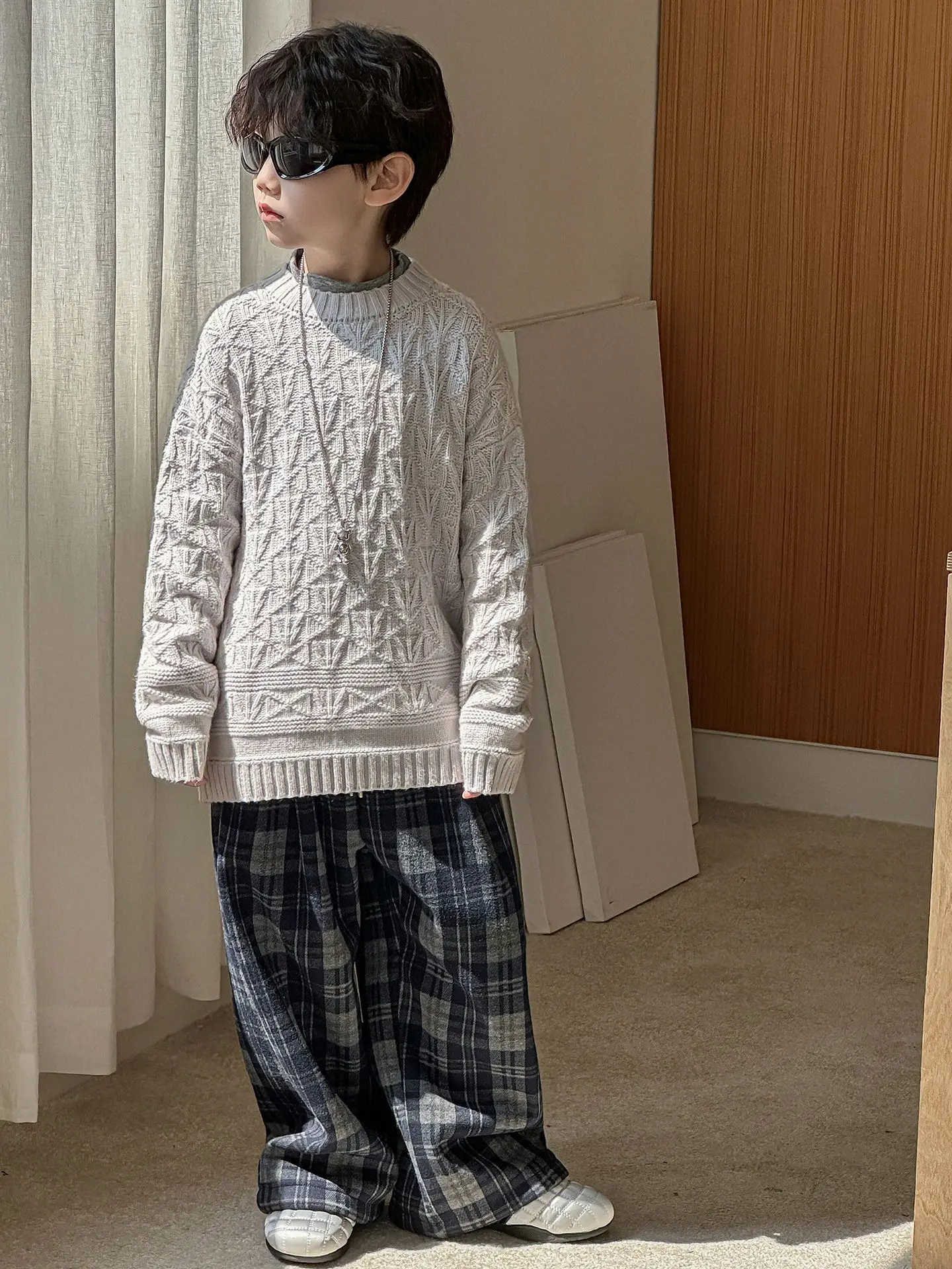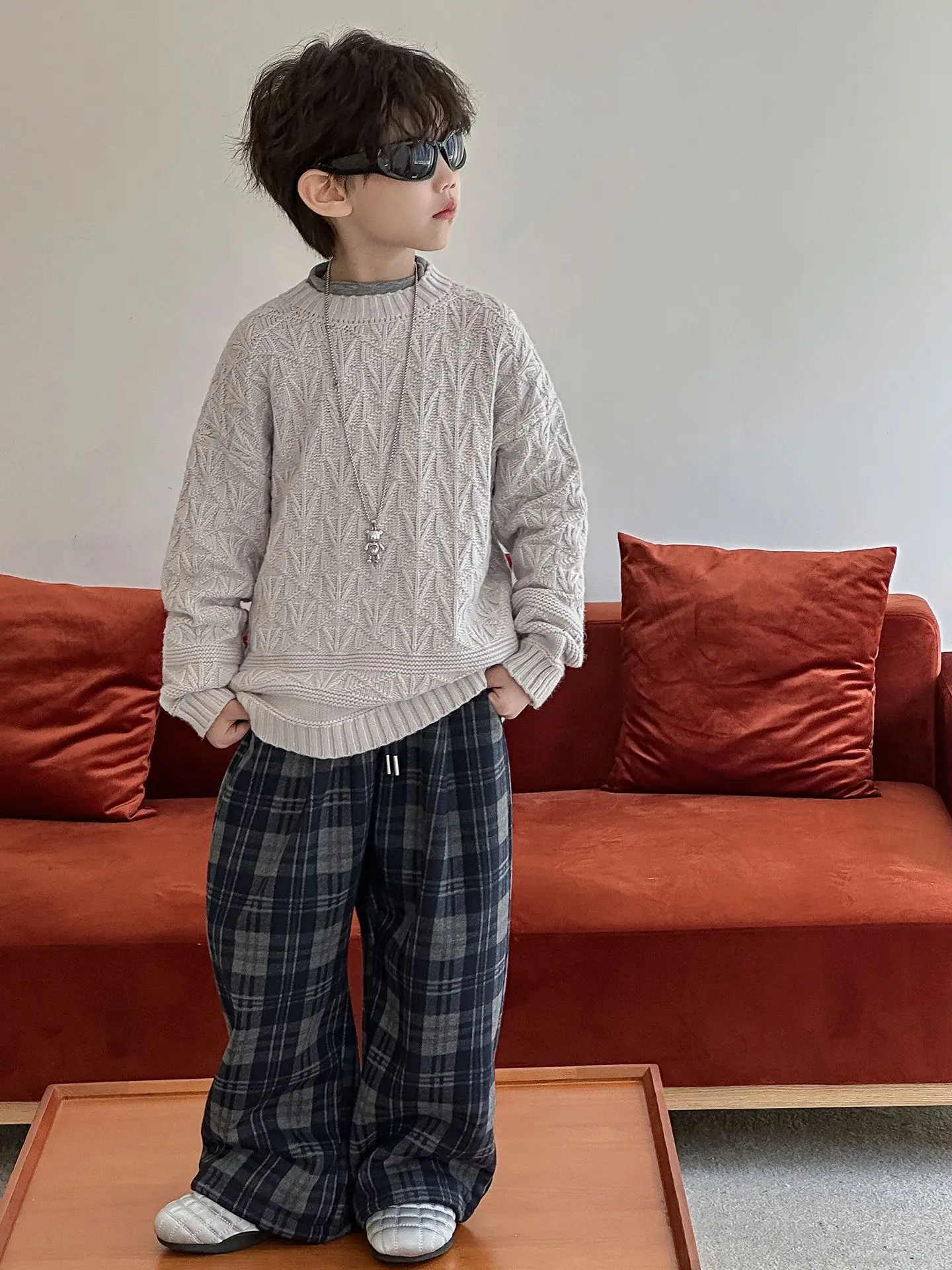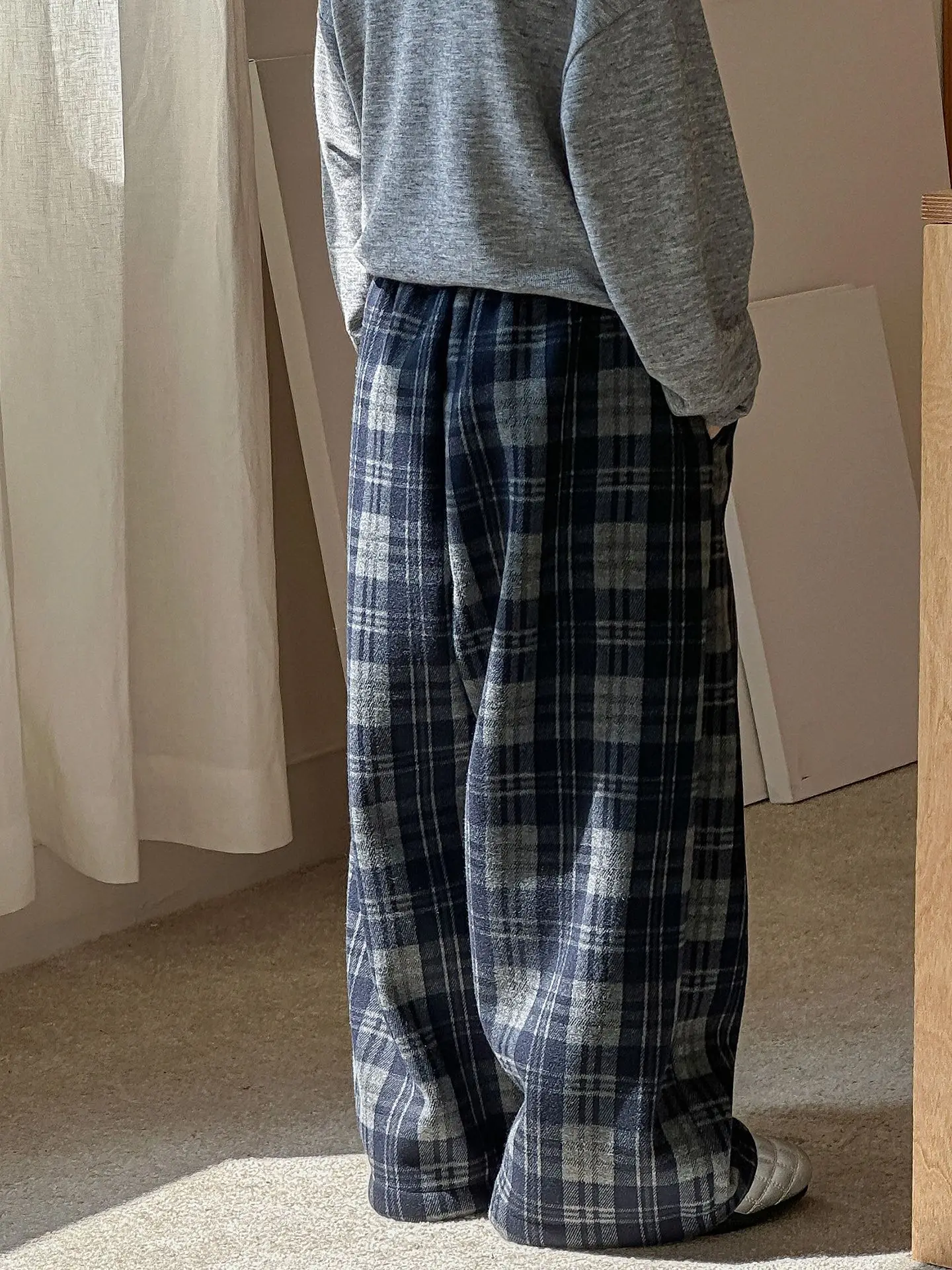 2025 Pantalones a cuadros de estilo coreano para niños: pantalones sueltos con forro polar de invierno, pantalones para niños de moda retro y agradables para la piel