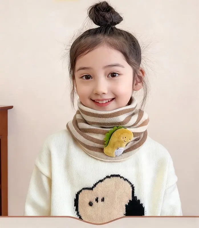 2025 Polaina para el cuello para niños Otoño/Invierno: forro polar grueso a prueba de viento, trabillas para las orejas, diseño de dibujos animados, bufanda cálida y versátil.