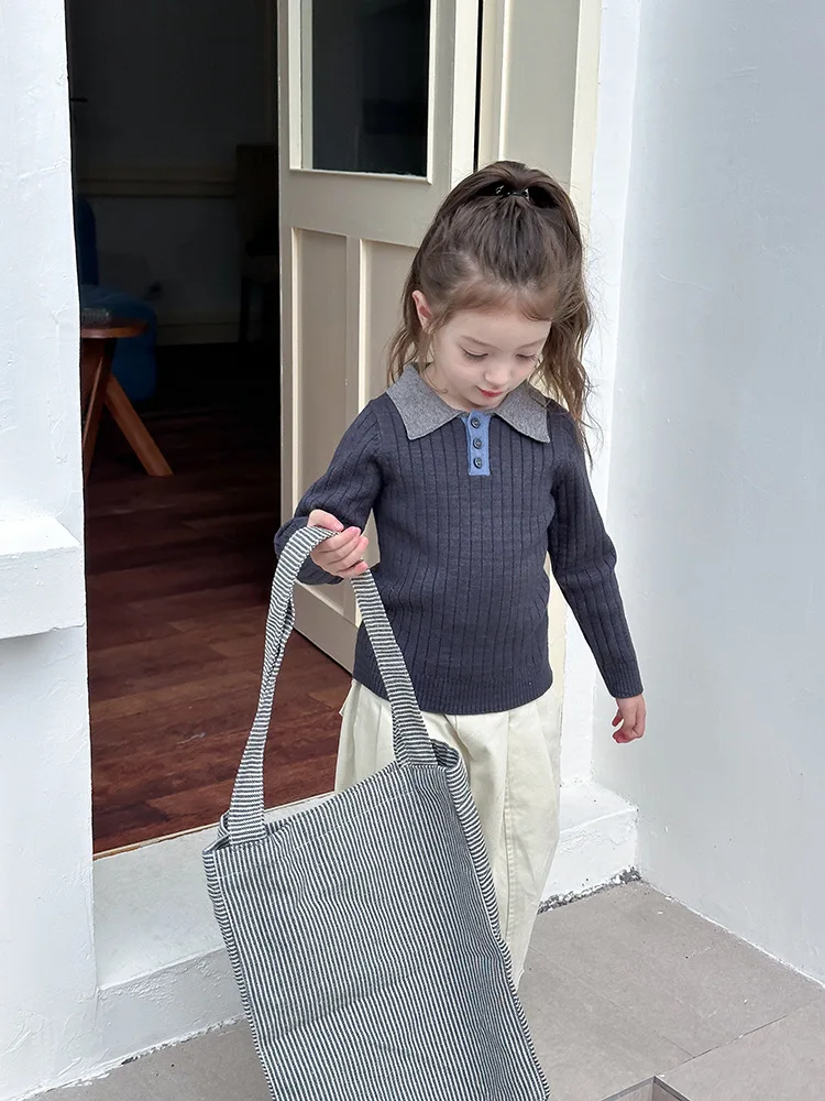 Comprar 2025 primavera coreana Slim Fit tejido contrastante niños pequeños niñas POLO suéter camisa grande adolescente blusa de punto camisas