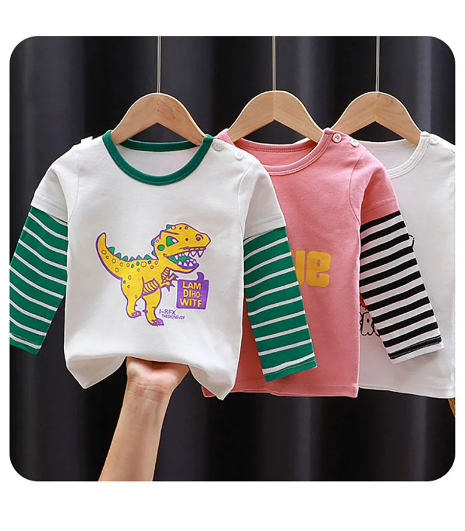 Nombre: 2025, camisetas de manga larga para primavera y otoño para niños, camisetas de dinosaurios lindas y cómodas de dibujos animados, camisa base para bebés, niños y niñas