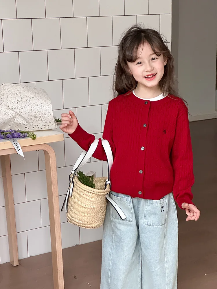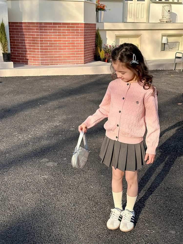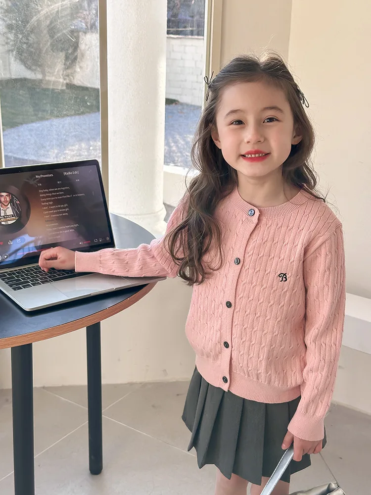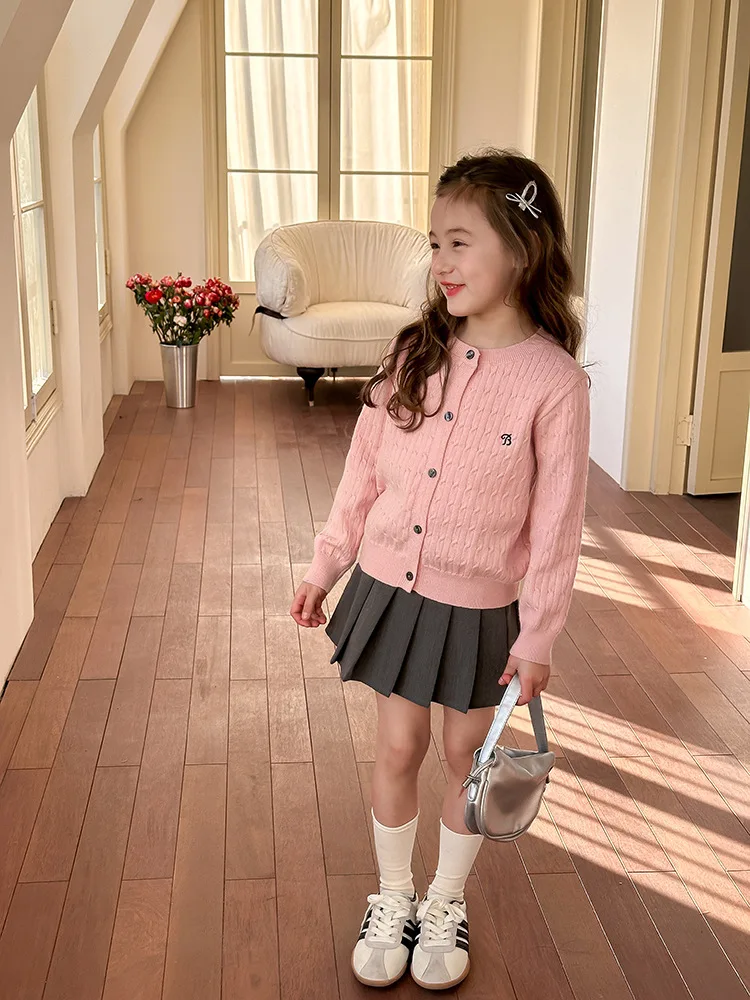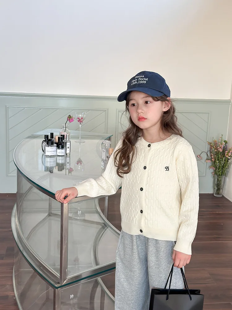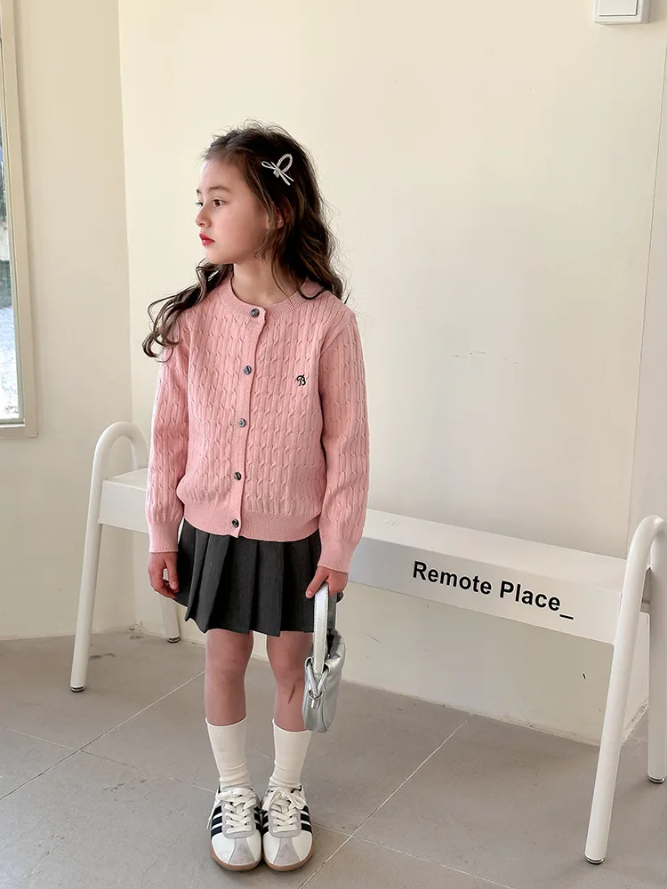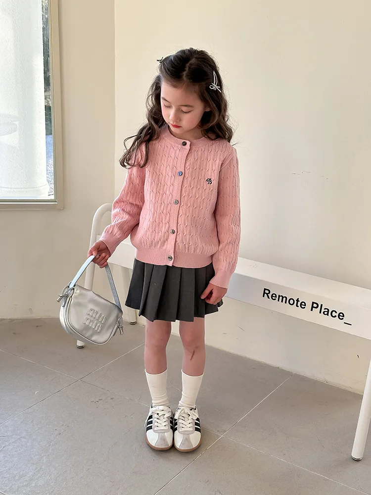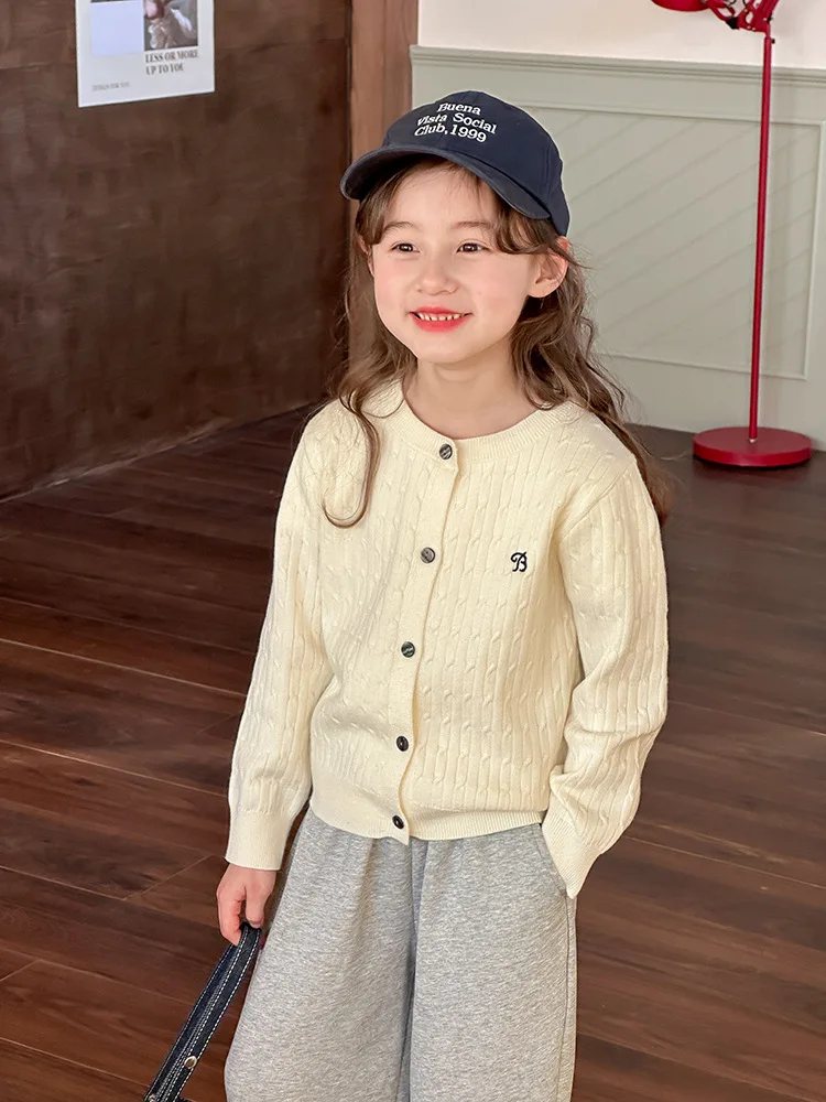 2025 principios de primavera niñas versión coreana Casual suéter retorcido extranjero bordado Chaqueta de punto suéter estilo coreano
