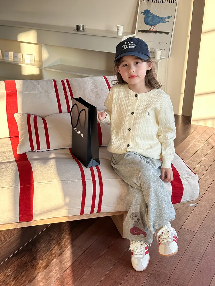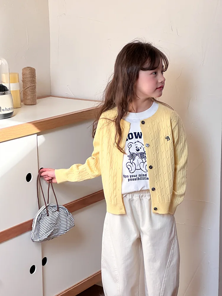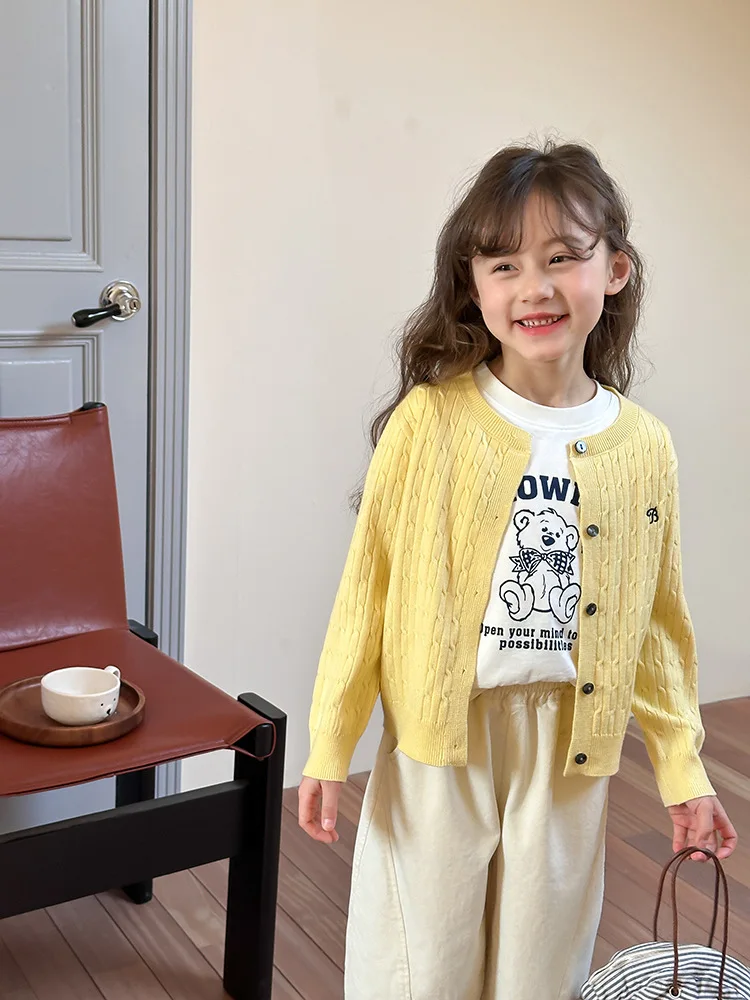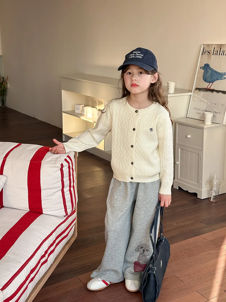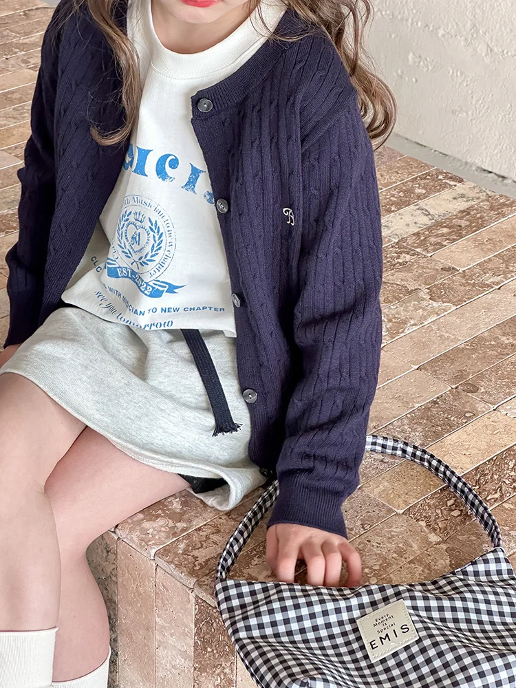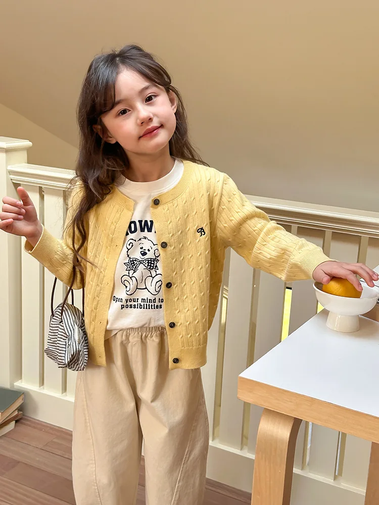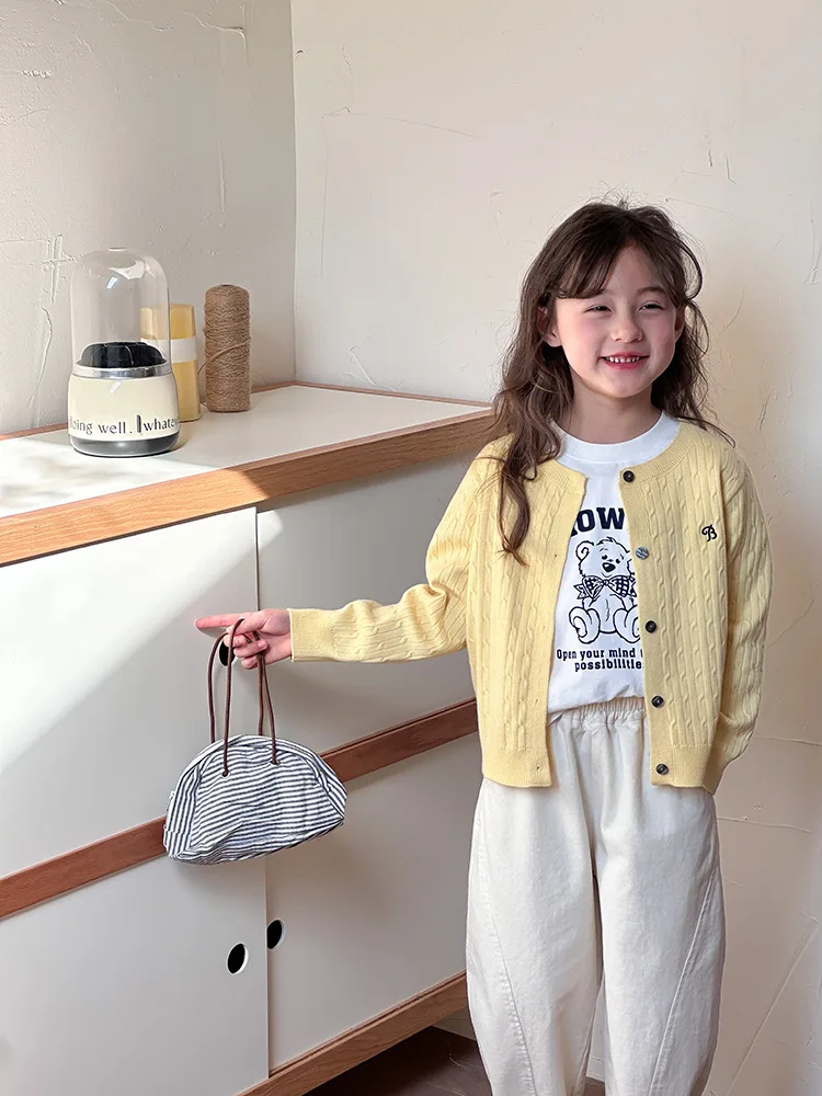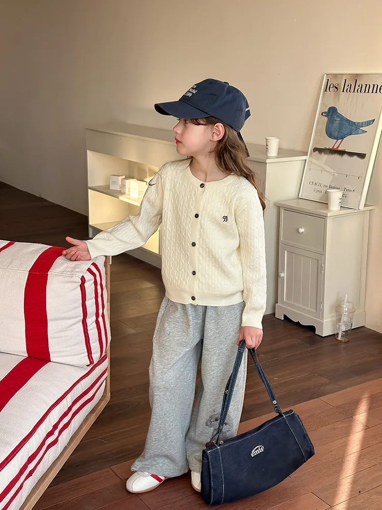 2025 principios de primavera niñas versión coreana Casual suéter retorcido extranjero bordado Chaqueta de punto suéter estilo coreano