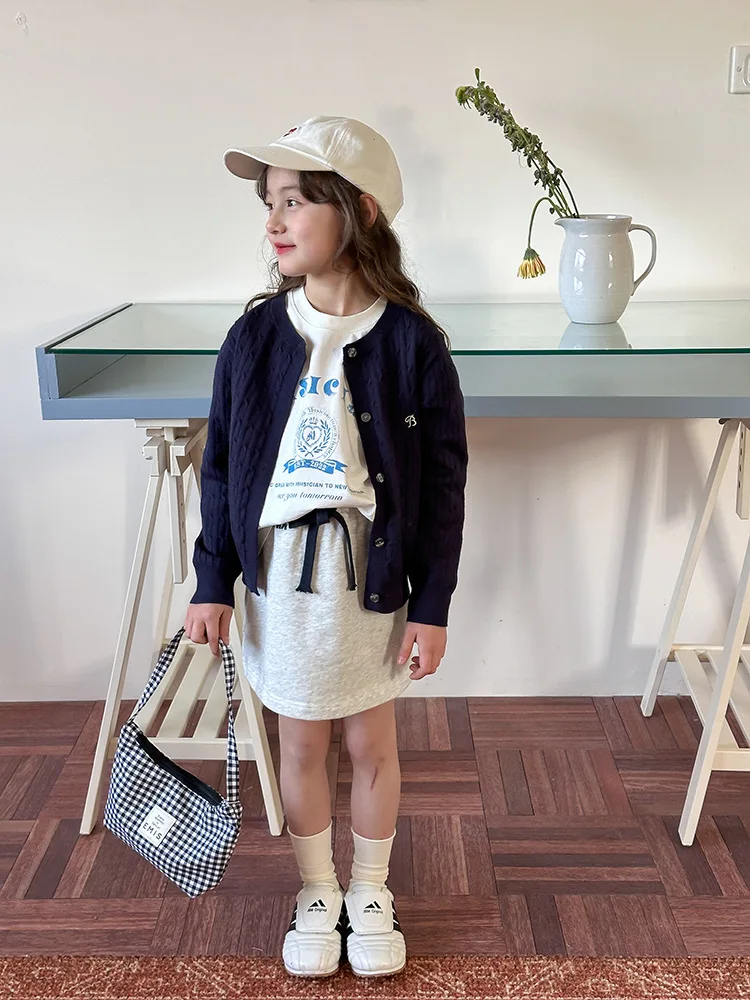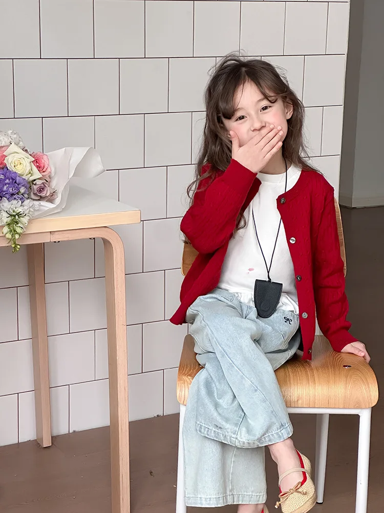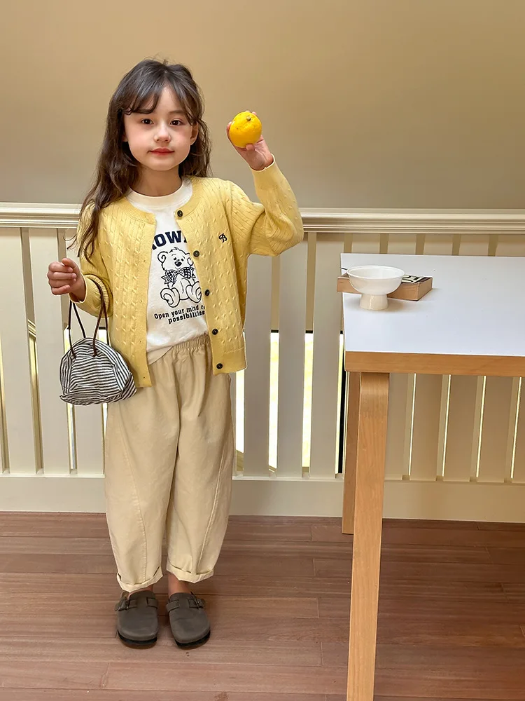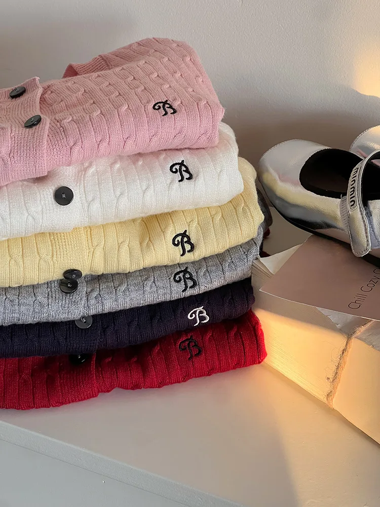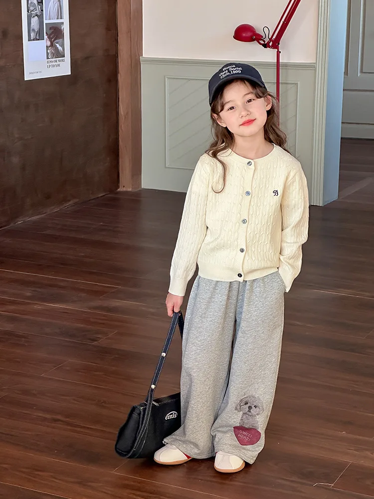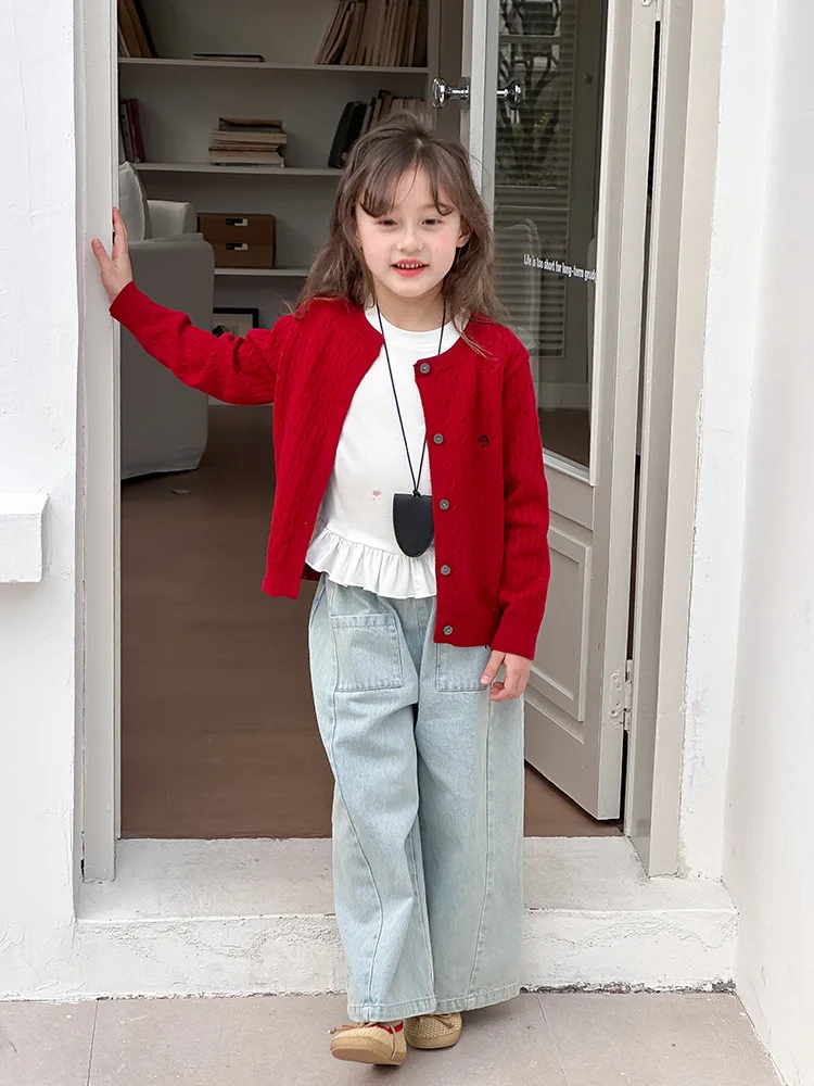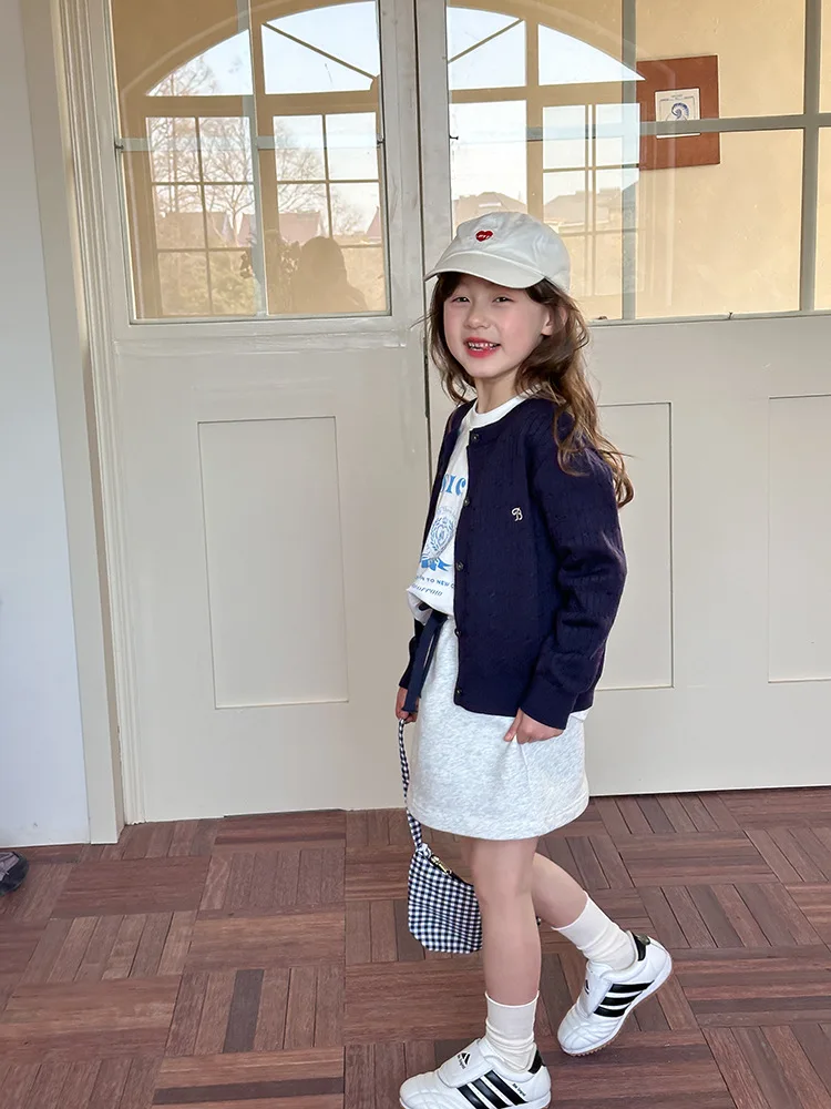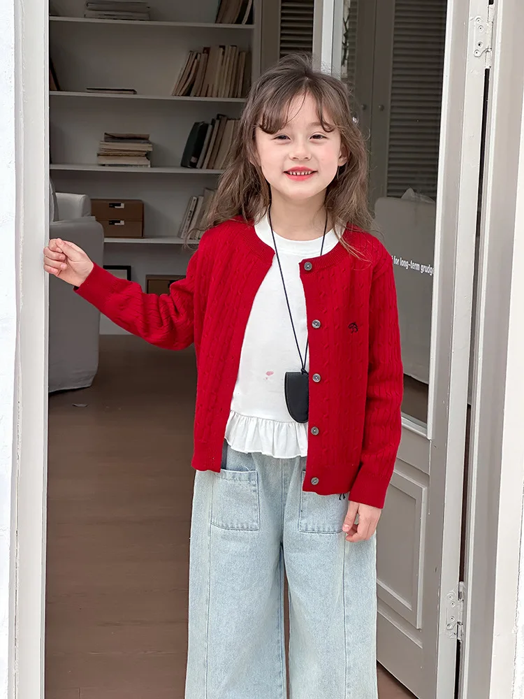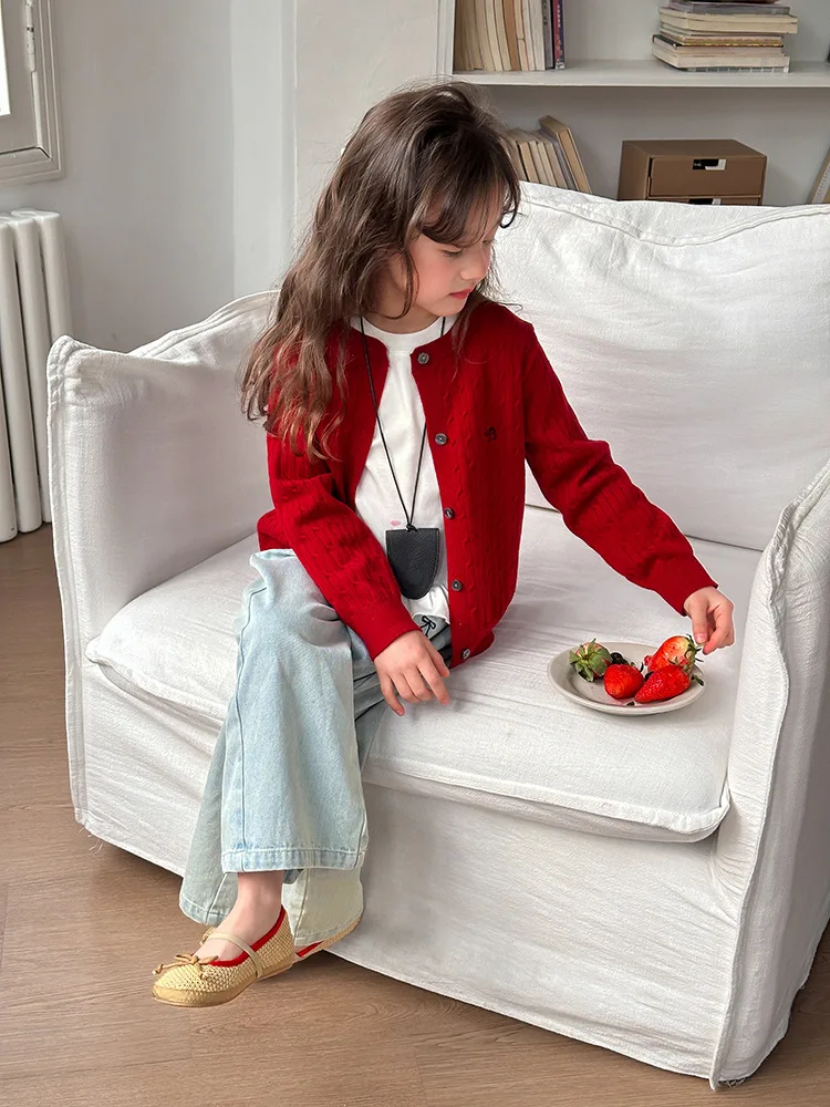 2025 principios de primavera niñas versión coreana Casual suéter retorcido extranjero bordado Chaqueta de punto suéter estilo coreano