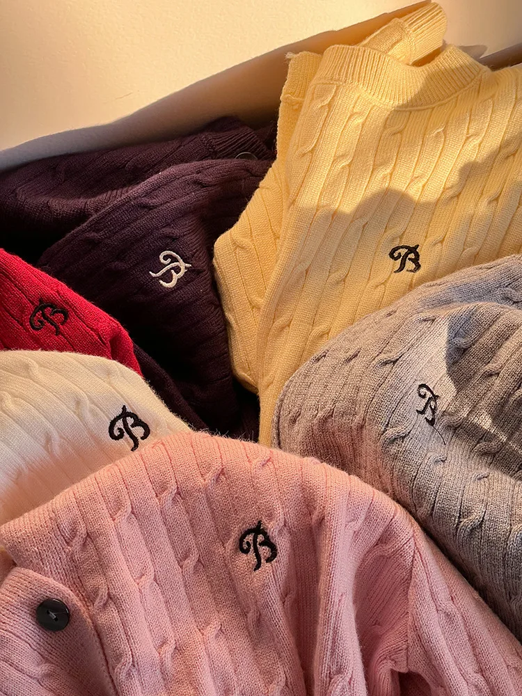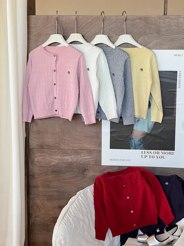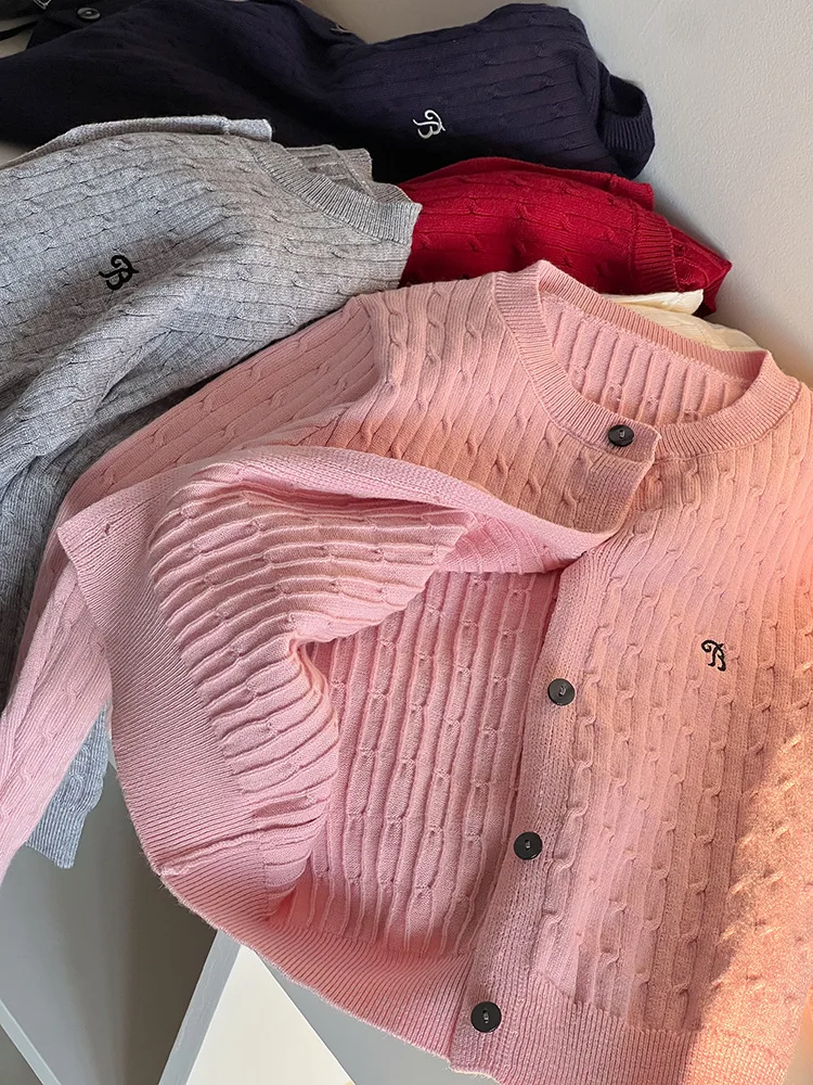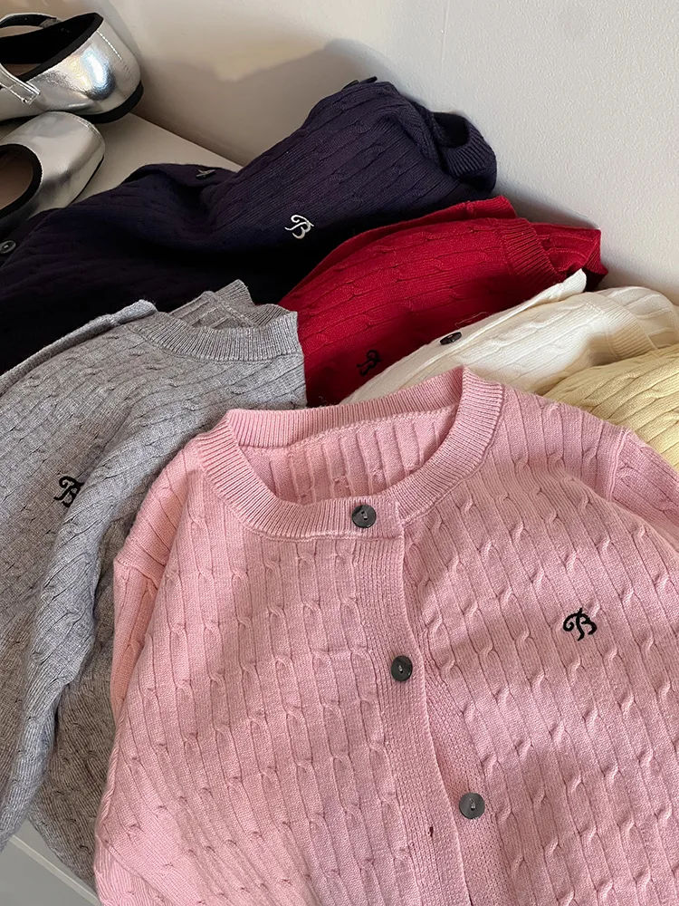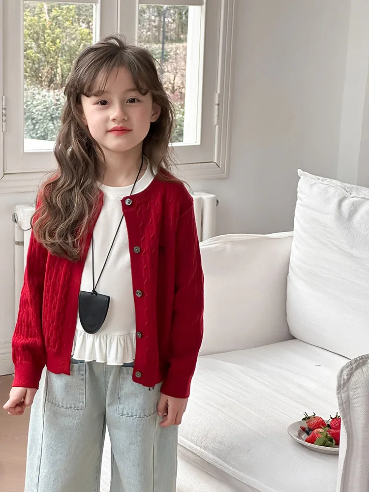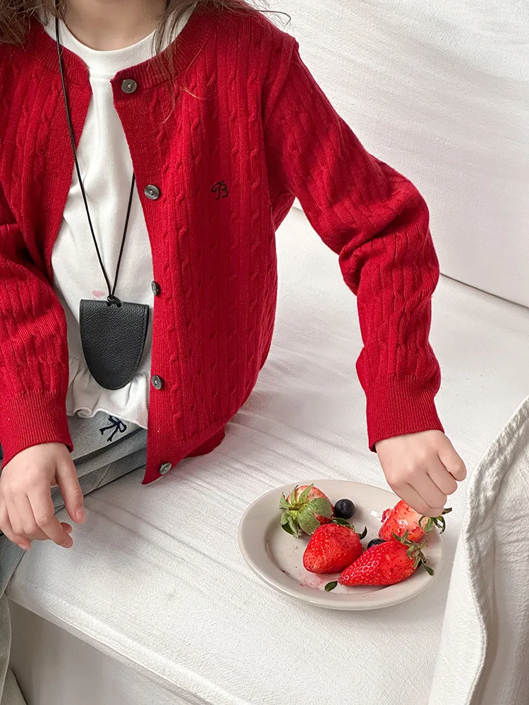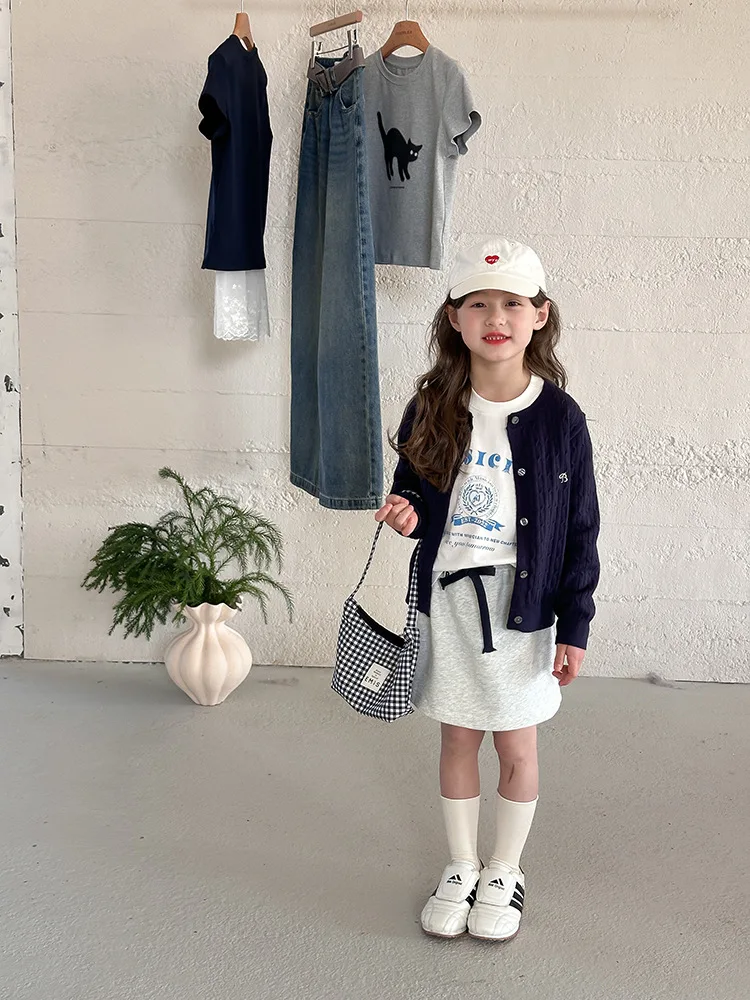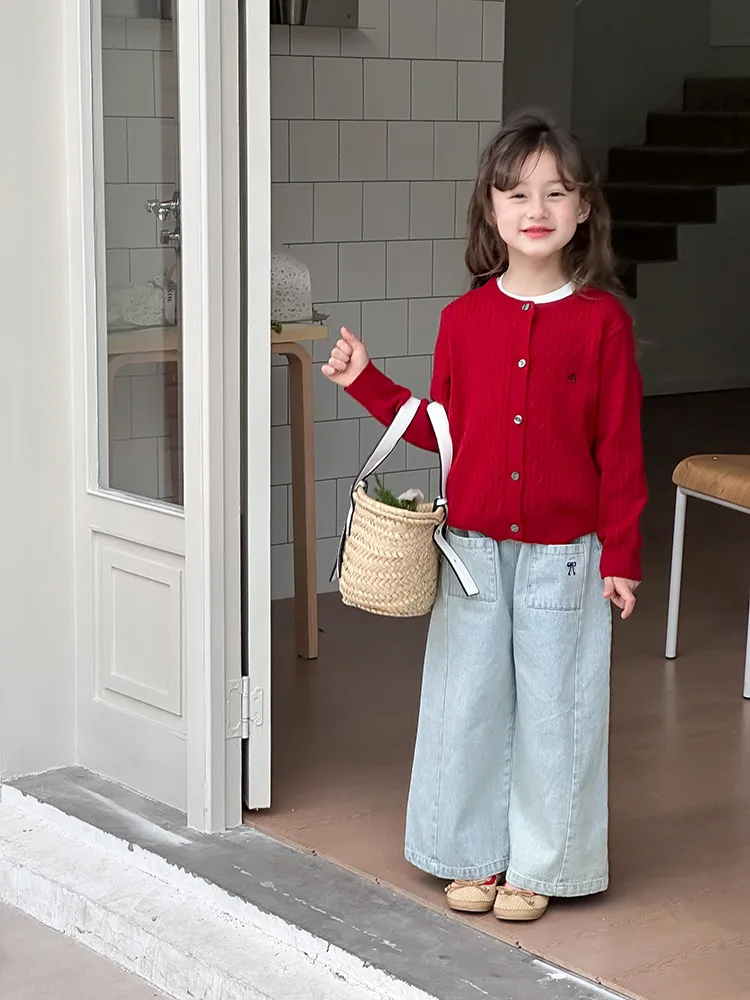 2025 principios de primavera niñas versión coreana Casual suéter retorcido extranjero bordado Chaqueta de punto suéter estilo coreano