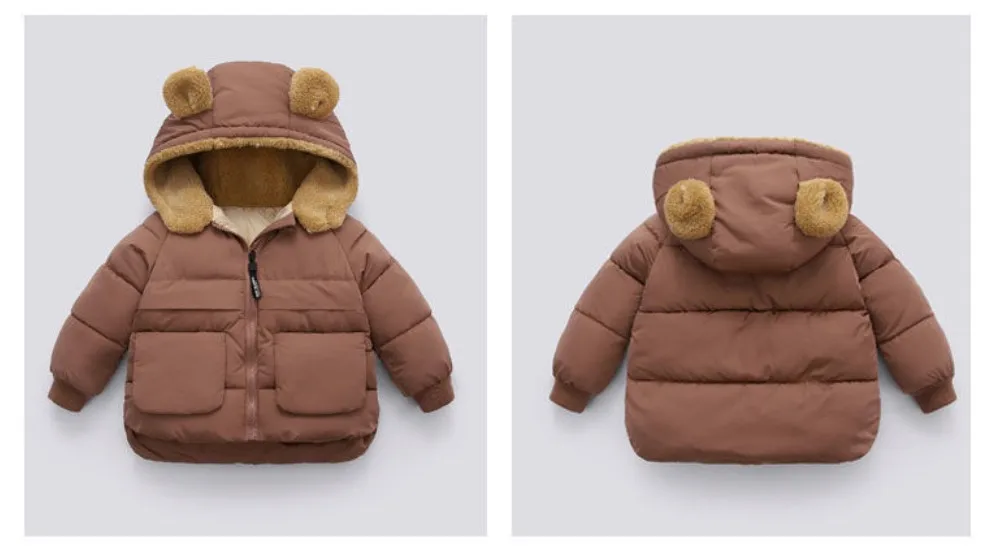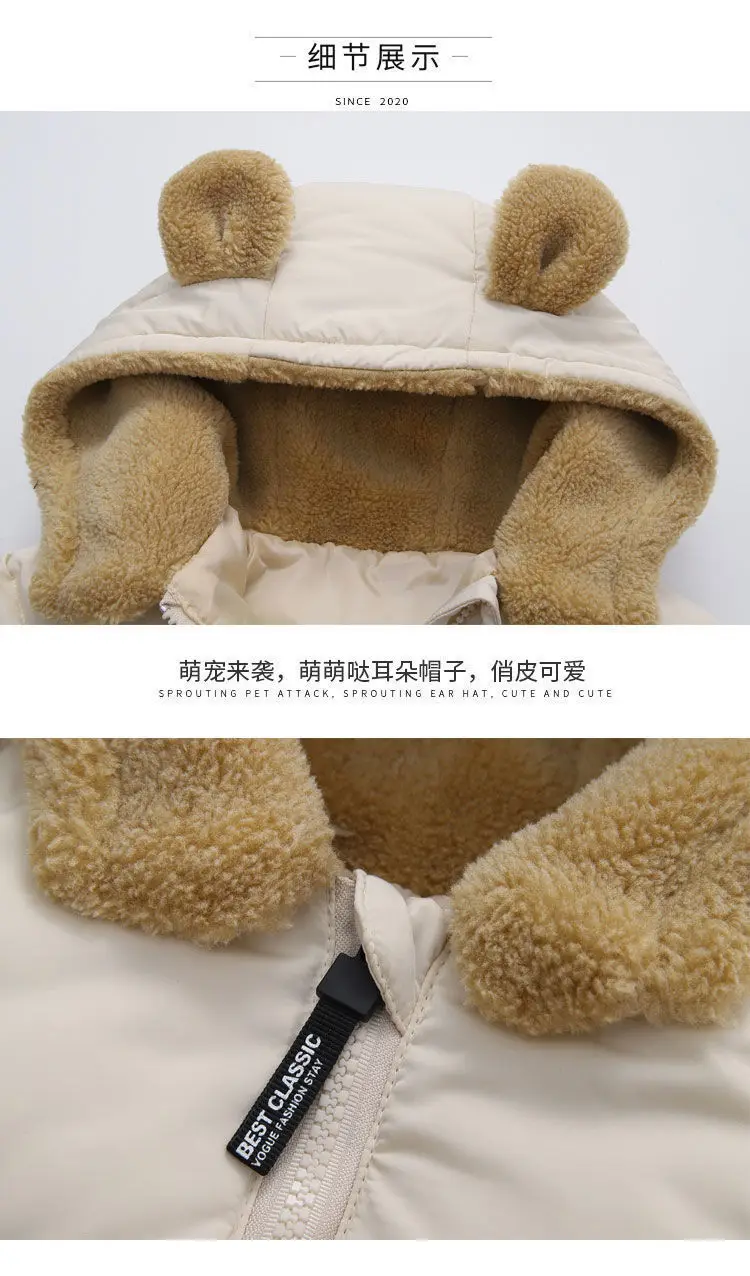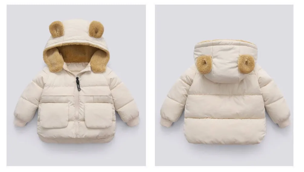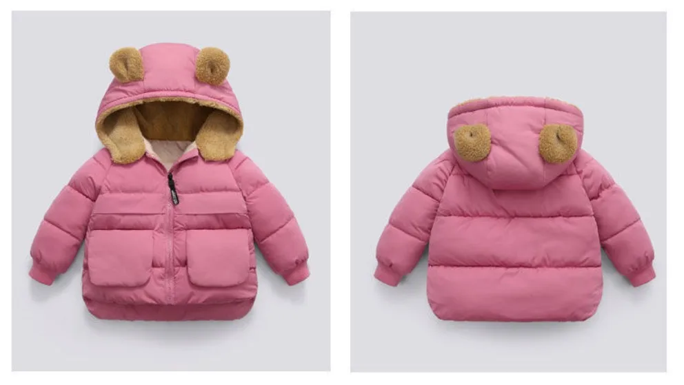 Comprar 2025 ropa de invierno para niños pequeños, chaquetas para niños, moda coreana, informal, lindo forro polar, cálido, grueso, prendas de vestir exteriores con capucha, abrigos para niñas B184