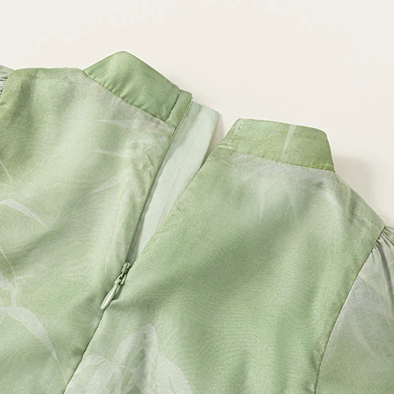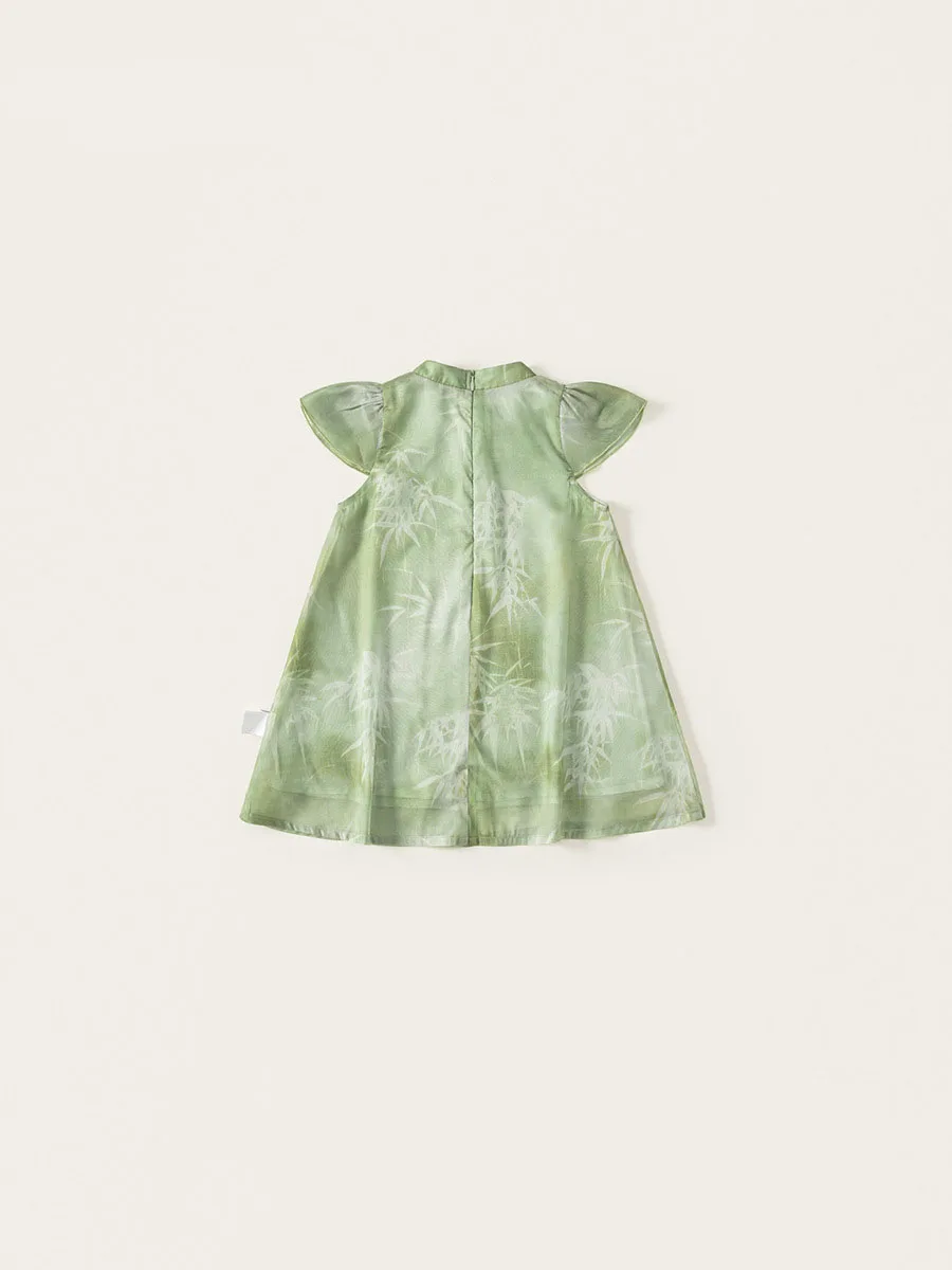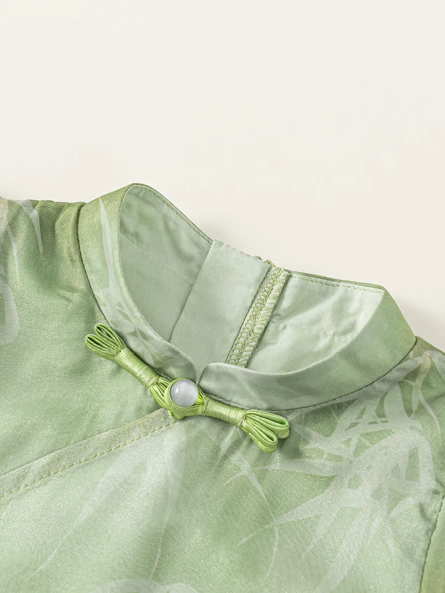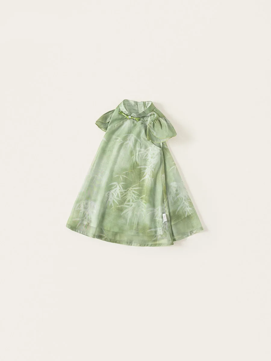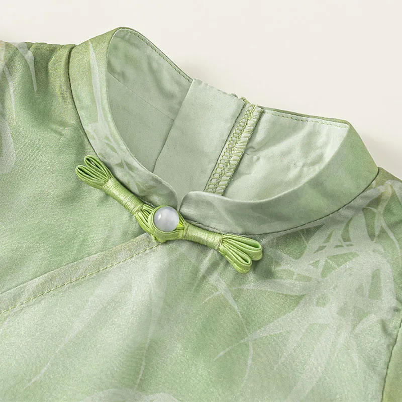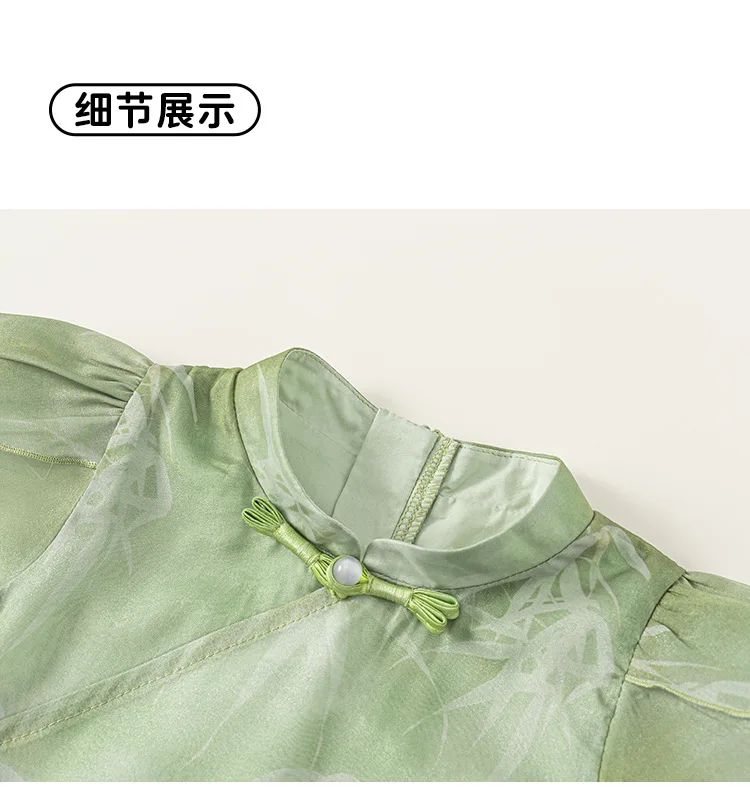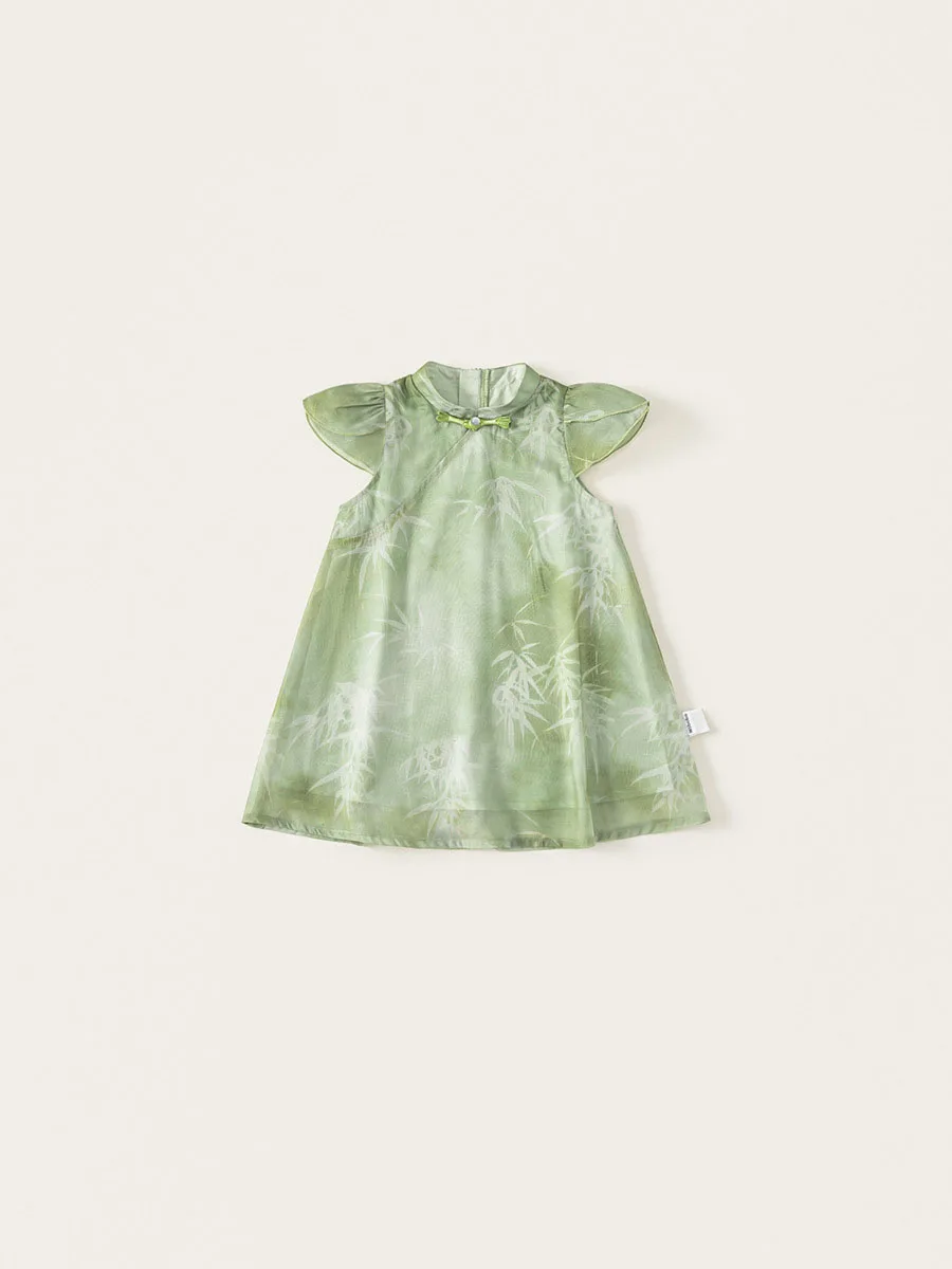 2025 ropa de verano para niñas, vestidos de bebé de estilo chino, Cheongsam verde, moda con estampado bonito, vestido de princesa de malla sin mangas B172
