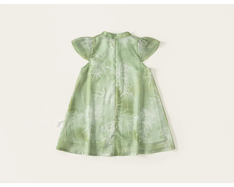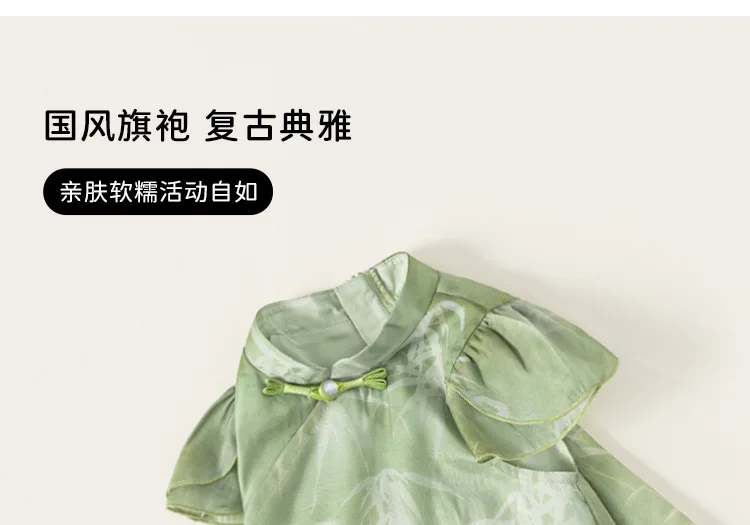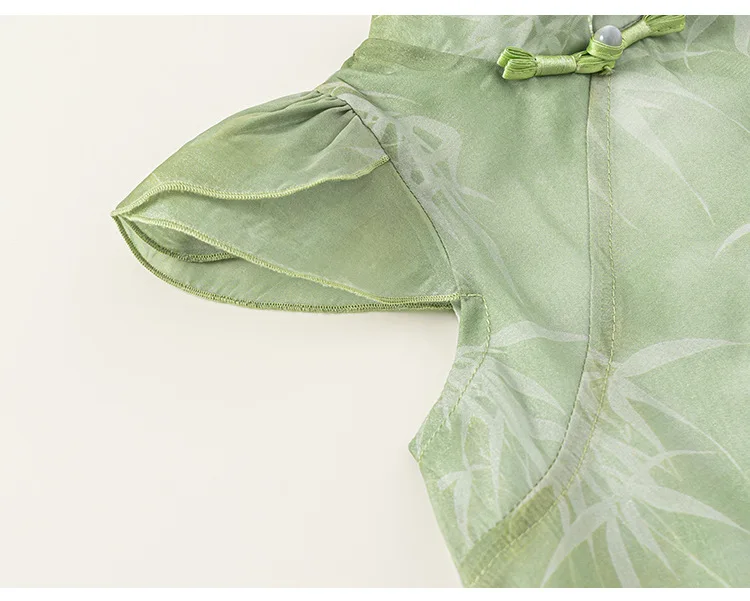 Comprar 2025 ropa de verano para niñas, vestidos de bebé de estilo chino, Cheongsam verde, moda con estampado bonito, vestido de princesa de malla sin mangas B172